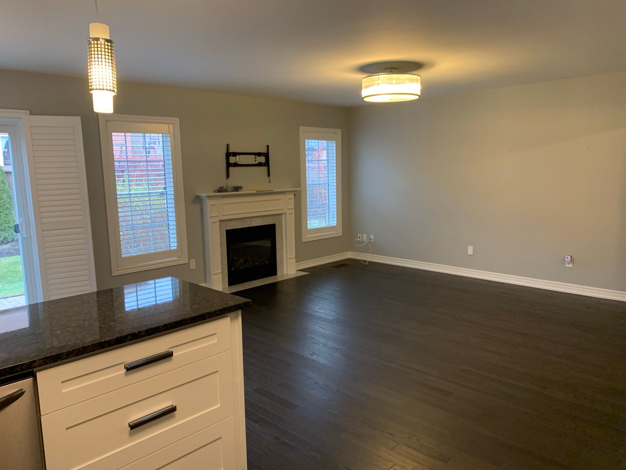 • Cozy family room includes a gas fireplace and hardwood flooring.