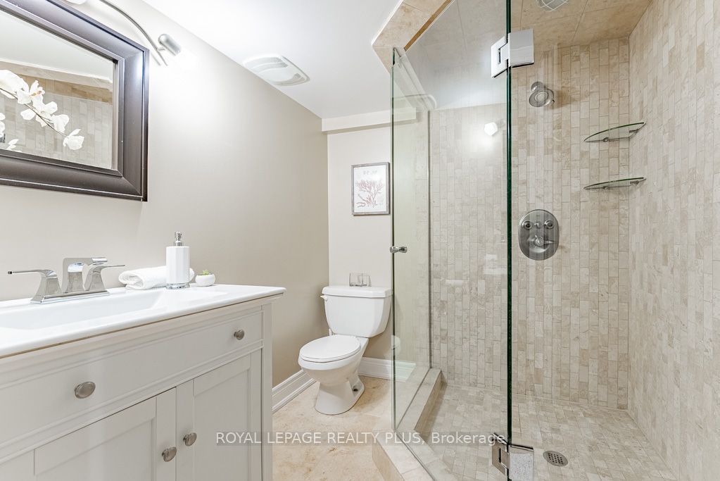 • Spacious finished basement with gas fireplace and large windows.