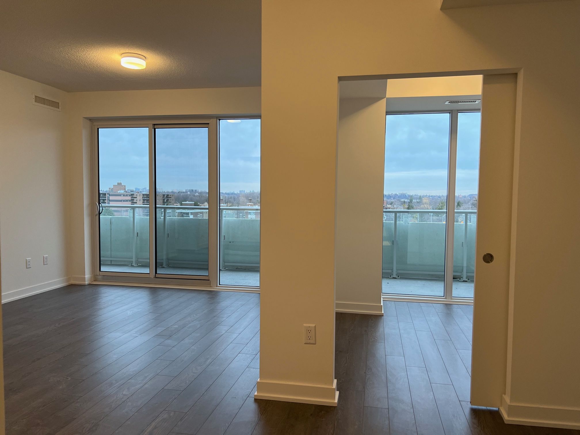 Approx 875 sqft (as per builder) large & bright 2 bedroom + den & 2 bathrooms w/ large balcony and east view @ rodeo drive 2 located at don mills & lawrence. 1 underground parking & locker included. 2 spacious bedrooms and separate enclosed den perfect for home office use. Building amenities include: 24 hrs concierge, fitness centre, outdoor terrace, indoor/outdoor pools, party/meeting room & more! Nearby amenities including: restaurants & parks at doorstep, shops, community centre, schools & transit steps away.