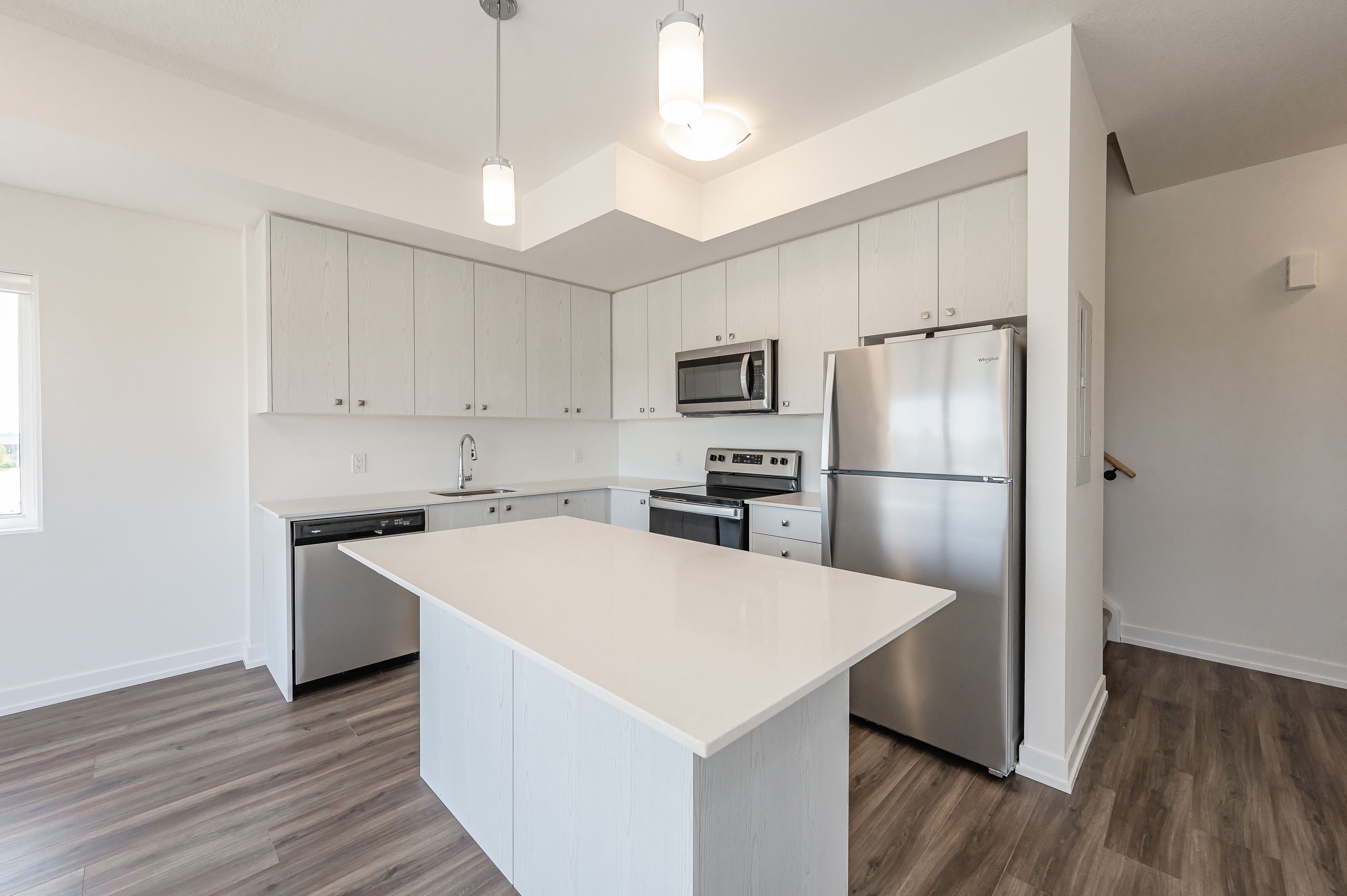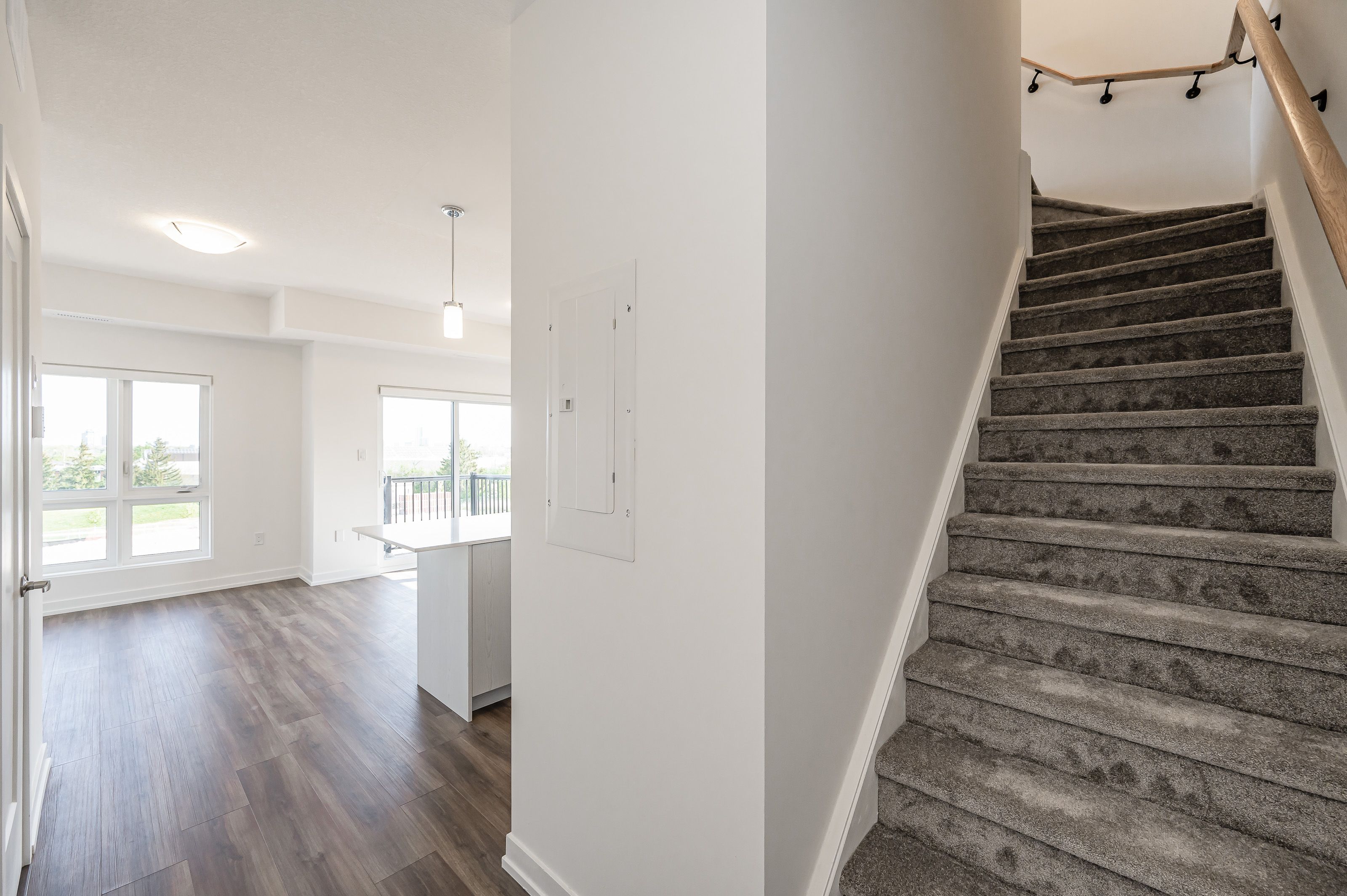 Bright and modern 2-bedroom, 1. 5-bath end-unit stacked townhome offering over 1,100 sq. Ft. Of living space plus two private balconies and one parking spot. The main floor features open-concept living, dining, and kitchen with quartz countertops, stainless steel appliances, and a convenient powder room. Upstairs offers two spacious bedrooms, a full bath, and in-suite laundry. As an end unit, enjoy extra windows and plenty of natural light on both levels. Ideally located close to shopping, transit, mclennan park, and quick highway access. Utilities extra. Photos from before tenants moved in.