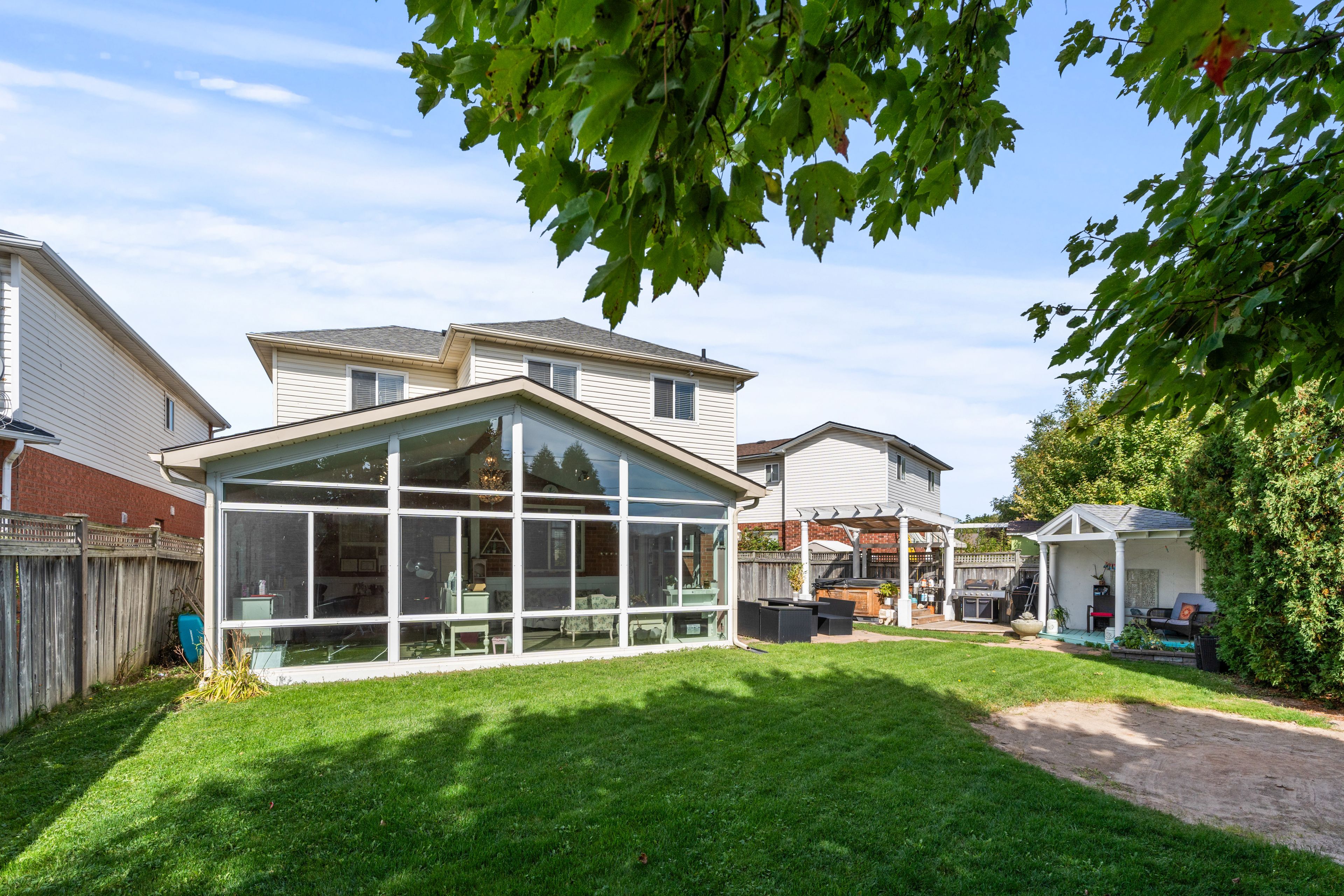 Opportunity knocks! Work from home in your own private space/sunroom addition with separate entrance and entry to main house! This amazing family 3+1 bedroom home is complete with a fully finished basement, hot tub, and large pie-shaped yard! Main floor features a living room/dining room combination, family room with electric fireplace(currently used as a dining room), laundry/mud room, and a large eat-in white kitchen with walk-out to large, gorgeous, private sunroom/workspace/second family room, with heated floors, overlooking the beautiful backyard, complete with hot tub, shed, and gazebo! Upper level features 3 large bedrooms, master ensuite, walk-in closet, and additional4-piece bath. Bamboo flooring on main and second level. Basement features family room, home theatre/gym area, and separate bedroom with 2-piece bathroom. Double garage, cozy front porch, fenced yard, and great neighbours - what more could you ask for?! Located on a great family street in one of waterdown's most desirable areas, and close to schools, parks, transit, shopping and highways, don't miss your opportunity to call this your new home!