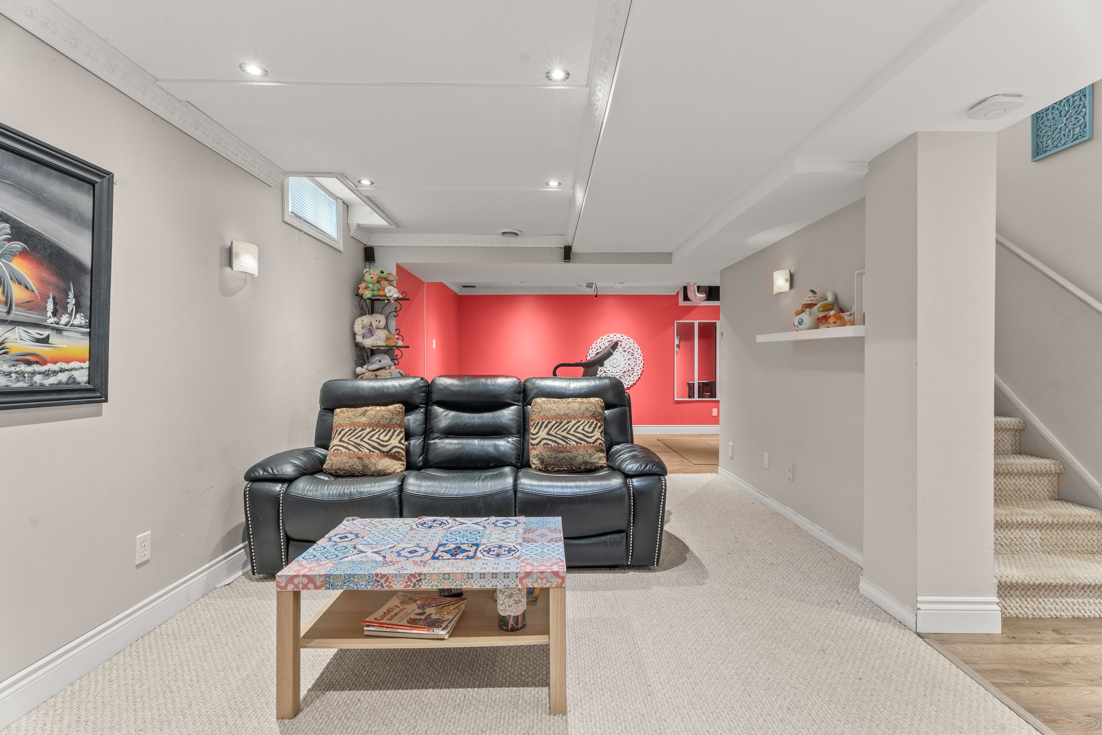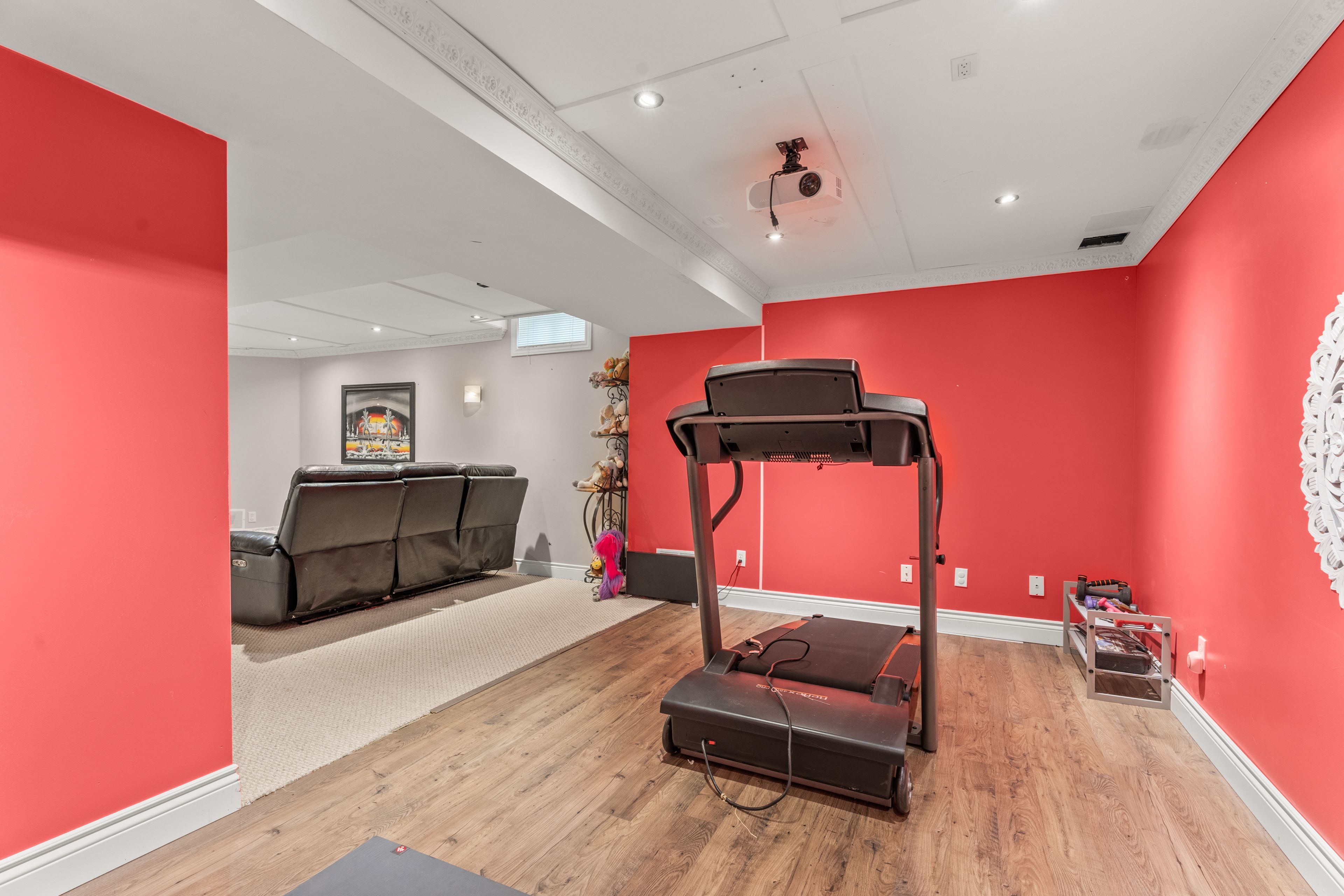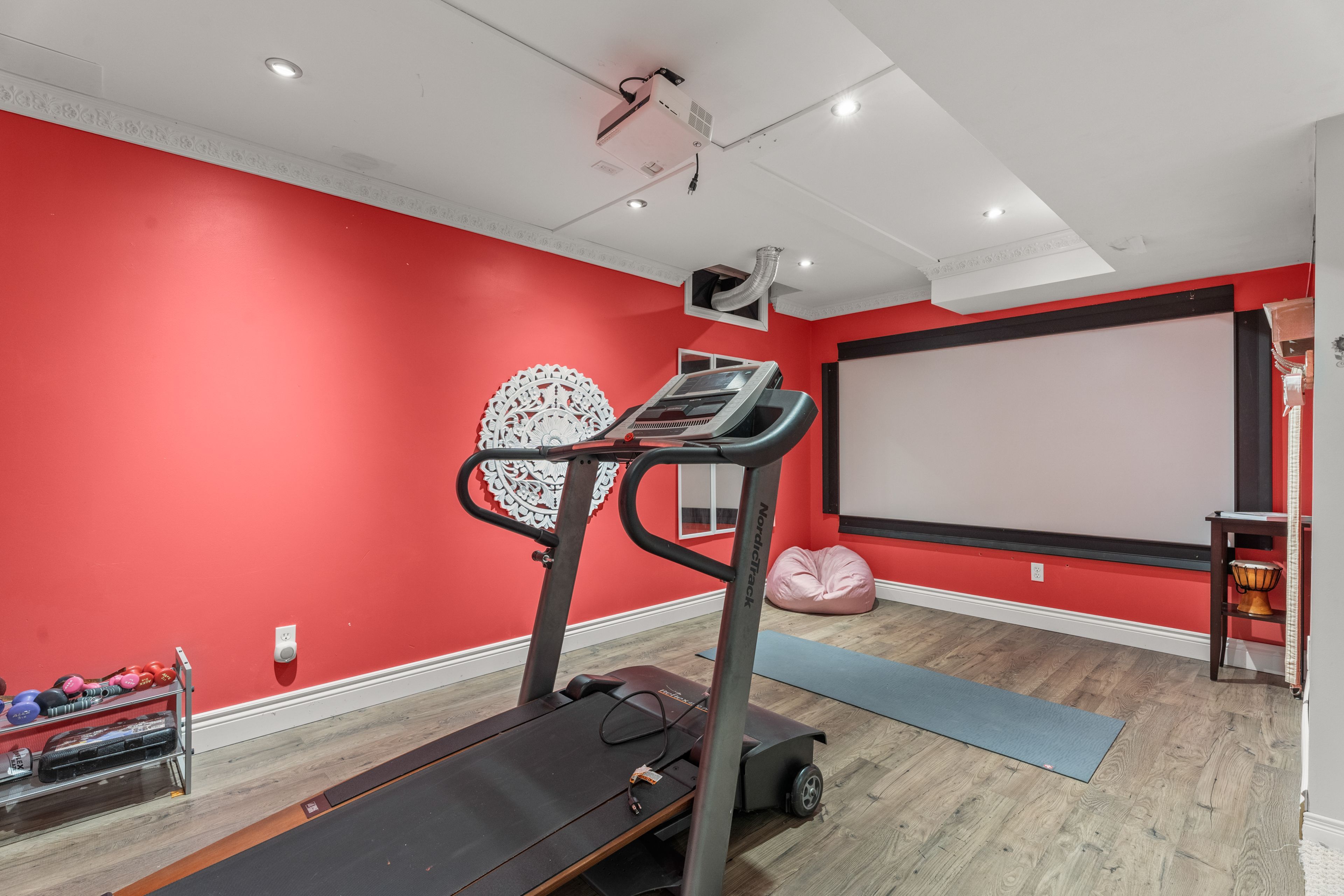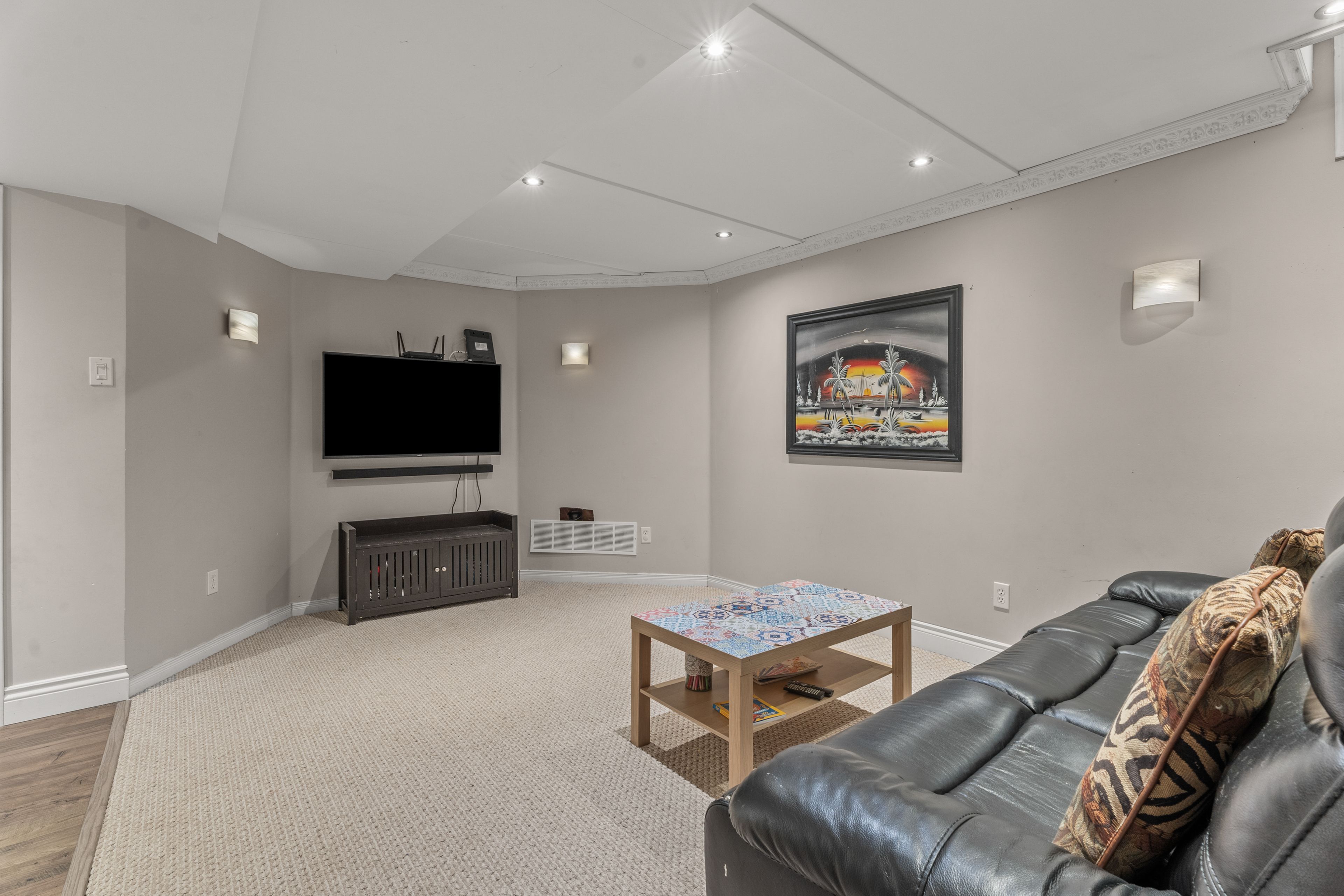 • Fully finished basement with family room, home theater, and extra bedroom.