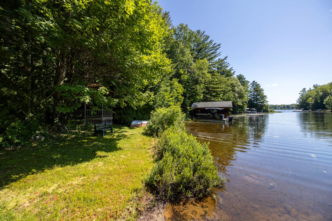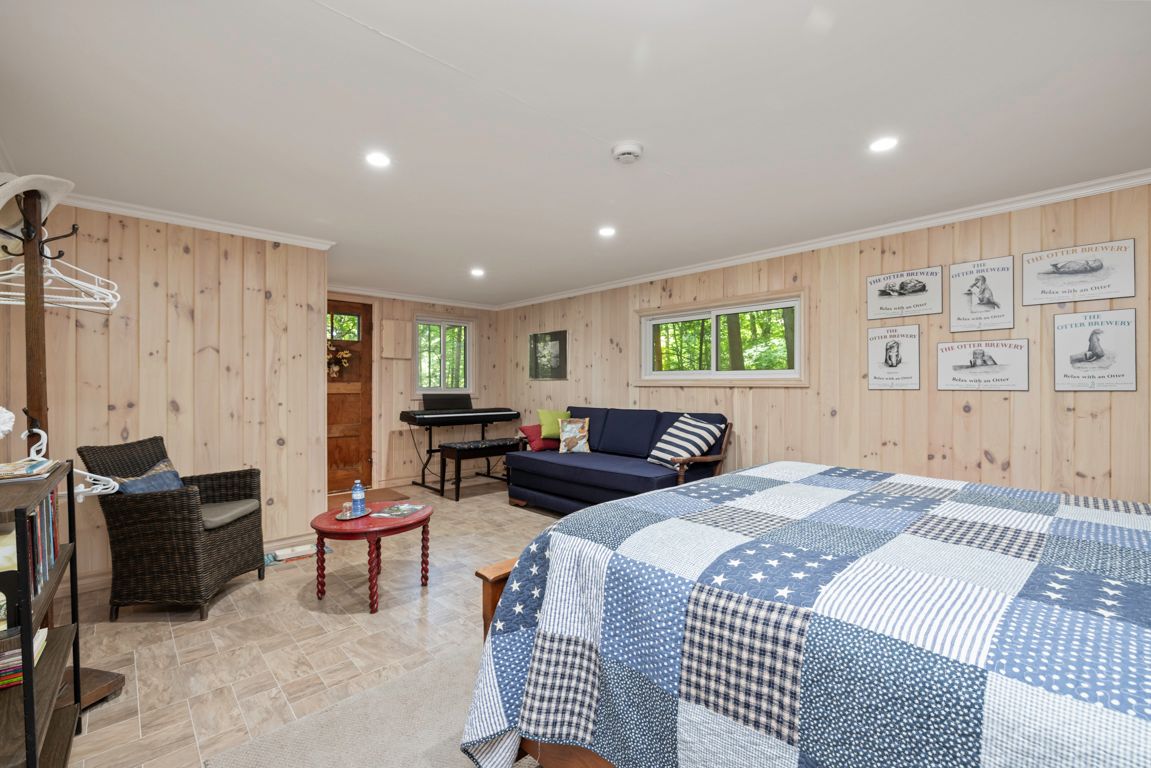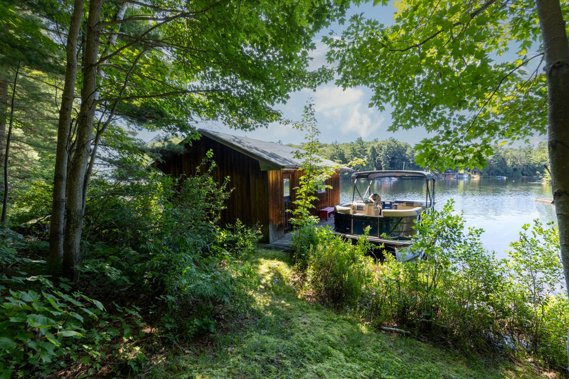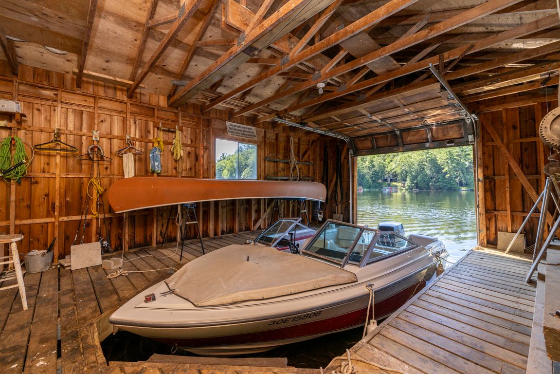 Outstanding waterfront cottage retreat on spring fed otter lake! 6. 3 acres of privacy! 340 ft of private shoreline, natural sand beach entry, rare wet boathouse, lovingly cared for 3 bedroom, 2 bath cottage, walkout to 2 desirable screened-in sunrooms nestled amongst the pines, cedar enhanced great room featuring vaulted ceilings & captivating floor to ceiling stone fireplace, cottage bungalow boasts 3 bedrooms, 2 baths (2nd bath just redone by northern kitchen, living & bath), delightful updated bunkie with private guest room & 2 pc bath, full block perimeter foundation makes this a solid lake house, potential to be wonderful year-round retreat by installing a 4 season water system, cottage is heated and insulated to extend spring and fall enjoyment, private road that is kept open year-round for a shared fee, detached garage with hydro, convenient circular drive. Rare wet boat house includes doral ski boat, this is truly a classic turnkey cottage nestled amongst the pines, quiet cove, private paradise on desirable otter lake!