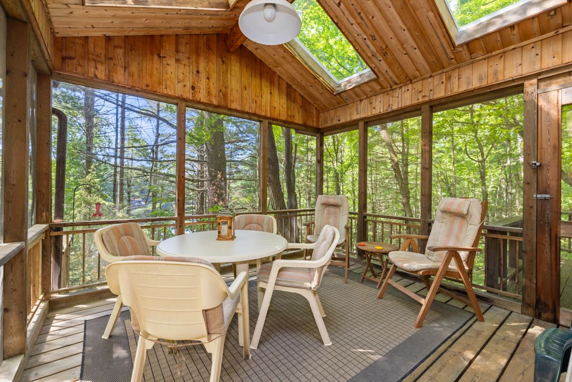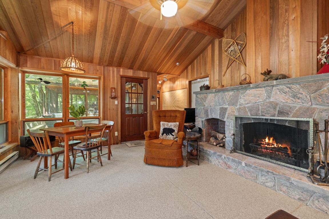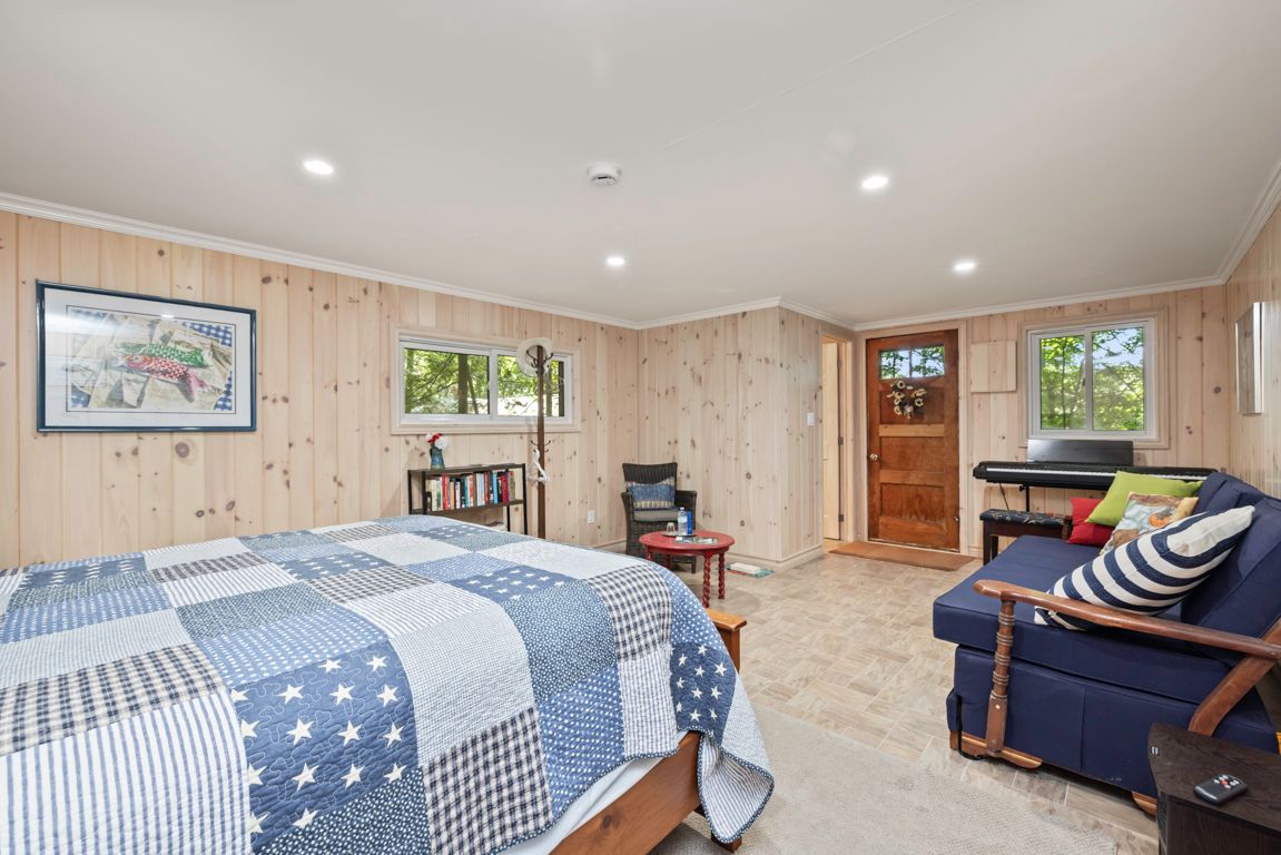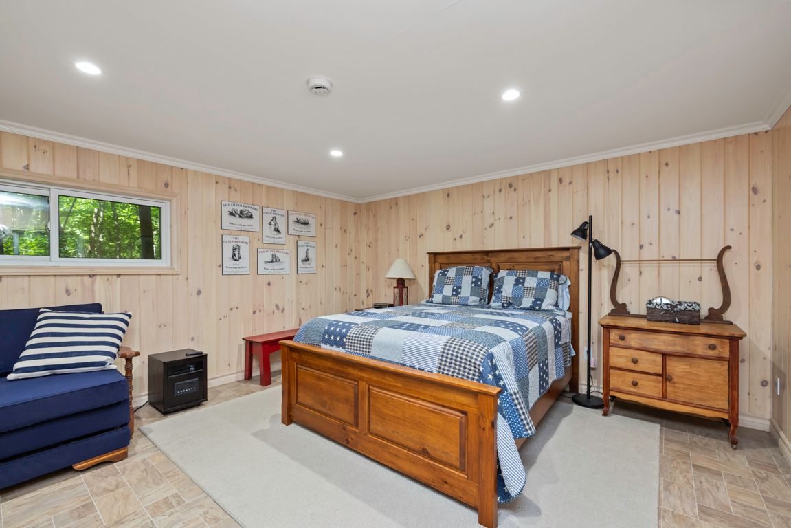 Outstanding waterfront cottage retreat on spring fed otter lake! 6. 3 acres of privacy! 340 ft of private shoreline, natural sand beach entry, rare wet boathouse, lovingly cared for 3 bedroom, 2 bath cottage, walkout to 2 desirable screened-in sunrooms nestled amongst the pines, cedar enhanced great room featuring vaulted ceilings & captivating floor to ceiling stone fireplace, cottage bungalow boasts 3 bedrooms, 2 baths (2nd bath just redone by northern kitchen, living & bath), delightful updated bunkie with private guest room & 2 pc bath, full block perimeter foundation makes this a solid lake house, potential to be wonderful year-round retreat by installing a 4 season water system, cottage is heated and insulated to extend spring and fall enjoyment, private road that is kept open year-round for a shared fee, detached garage with hydro, convenient circular drive. Rare wet boat house includes doral ski boat, this is truly a classic turnkey cottage nestled amongst the pines, quiet cove, private paradise on desirable otter lake!