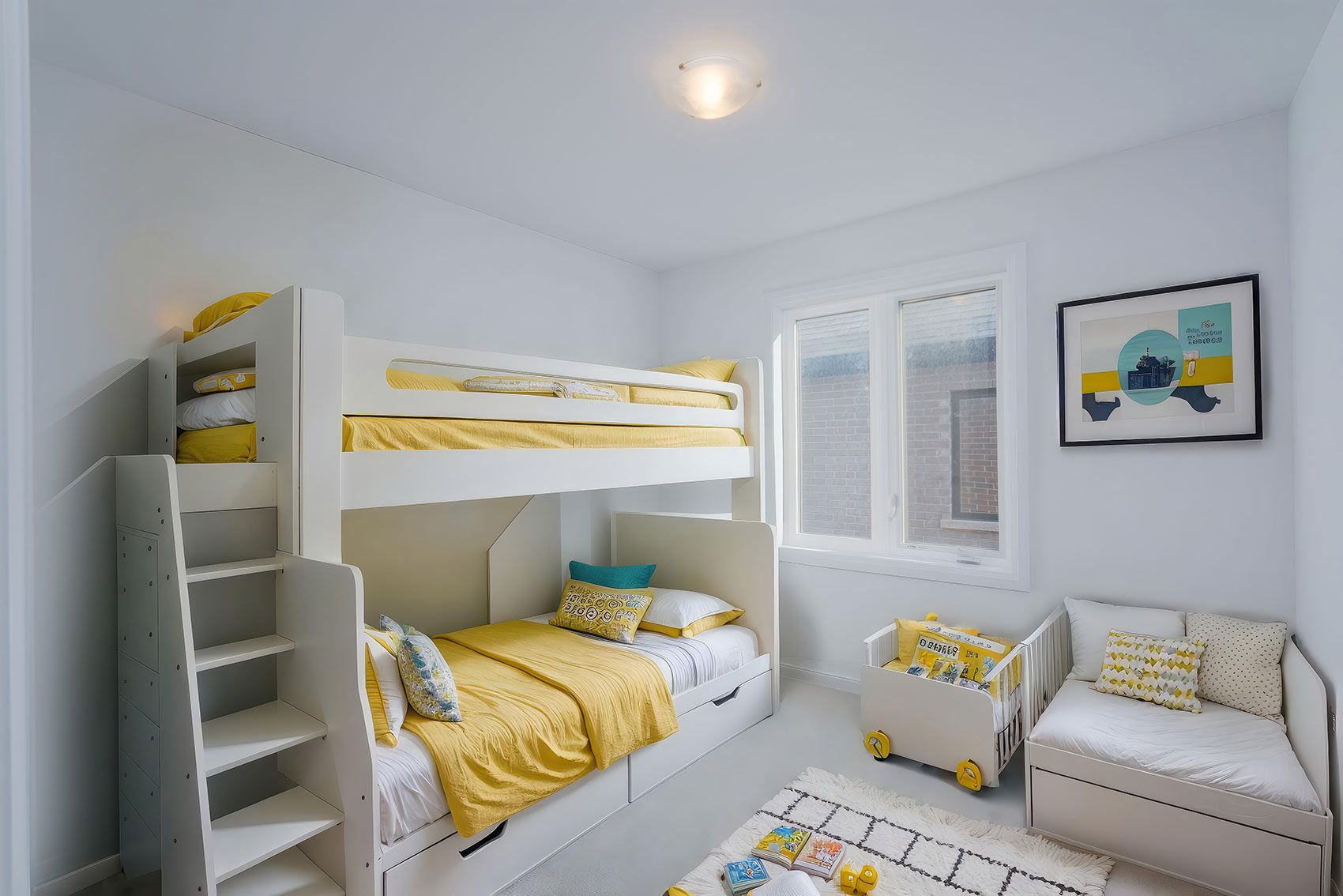 • Four spacious bedrooms with three full bathrooms upstairs.