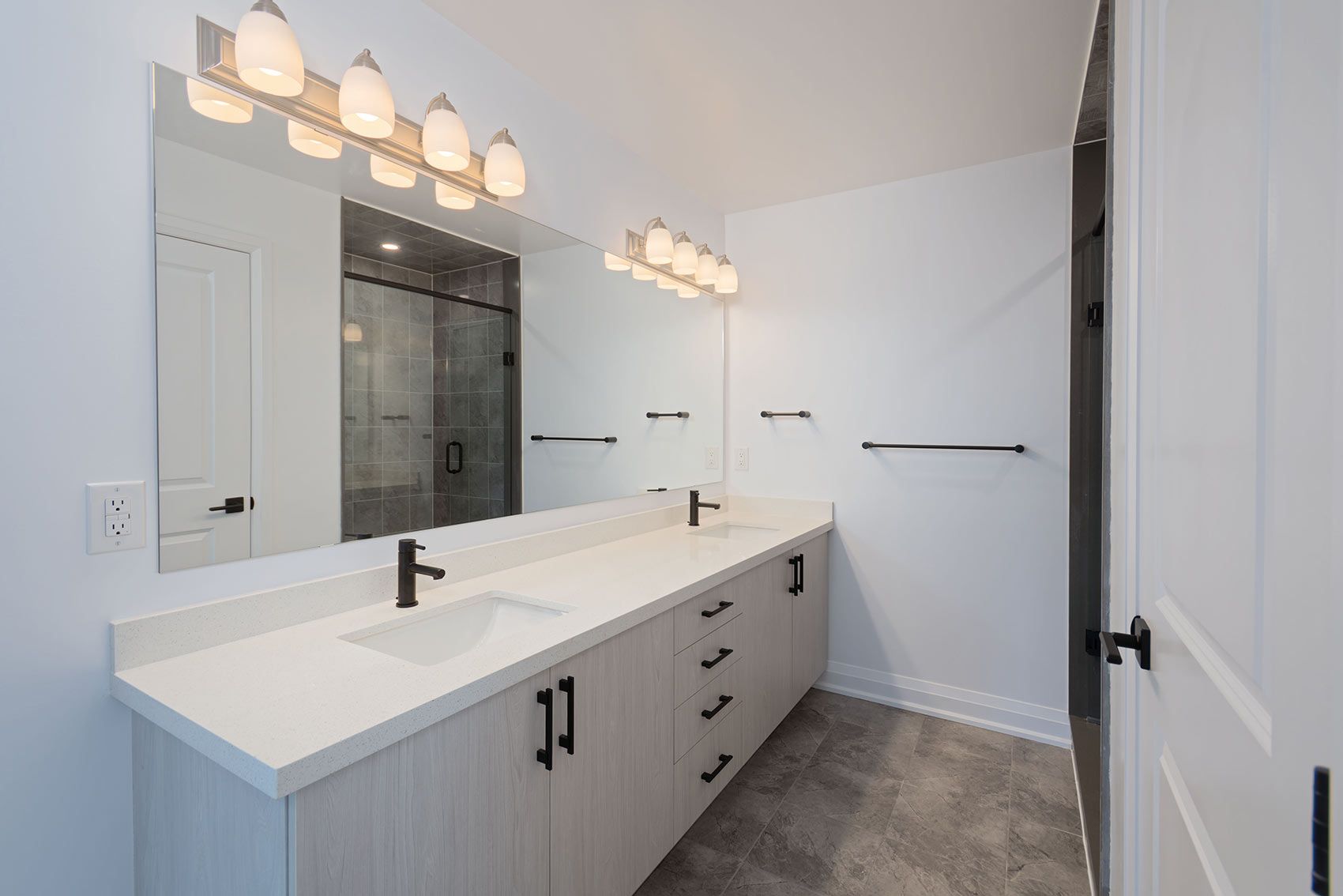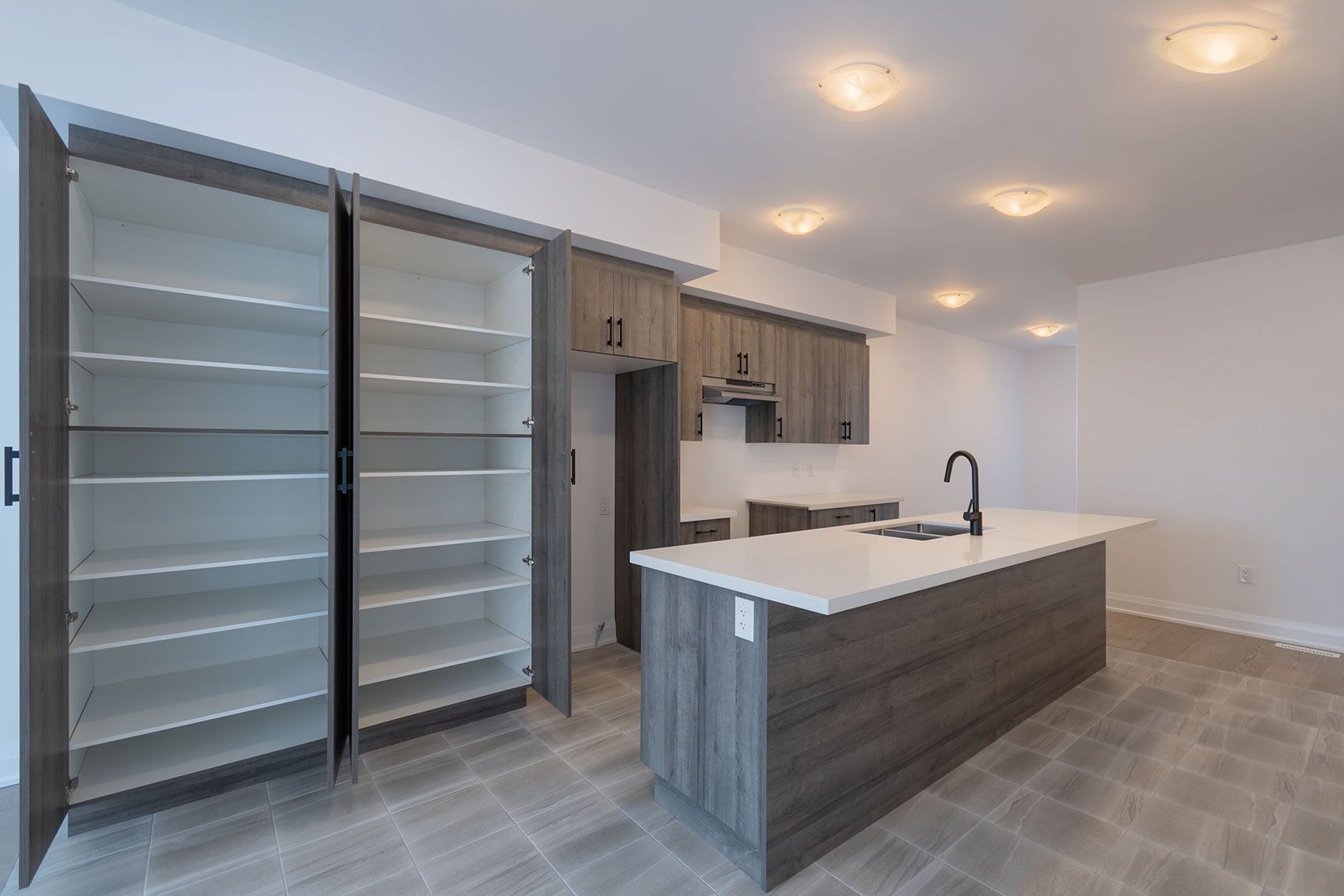 • Open-concept main floor with a modern kitchen and quartz countertops.