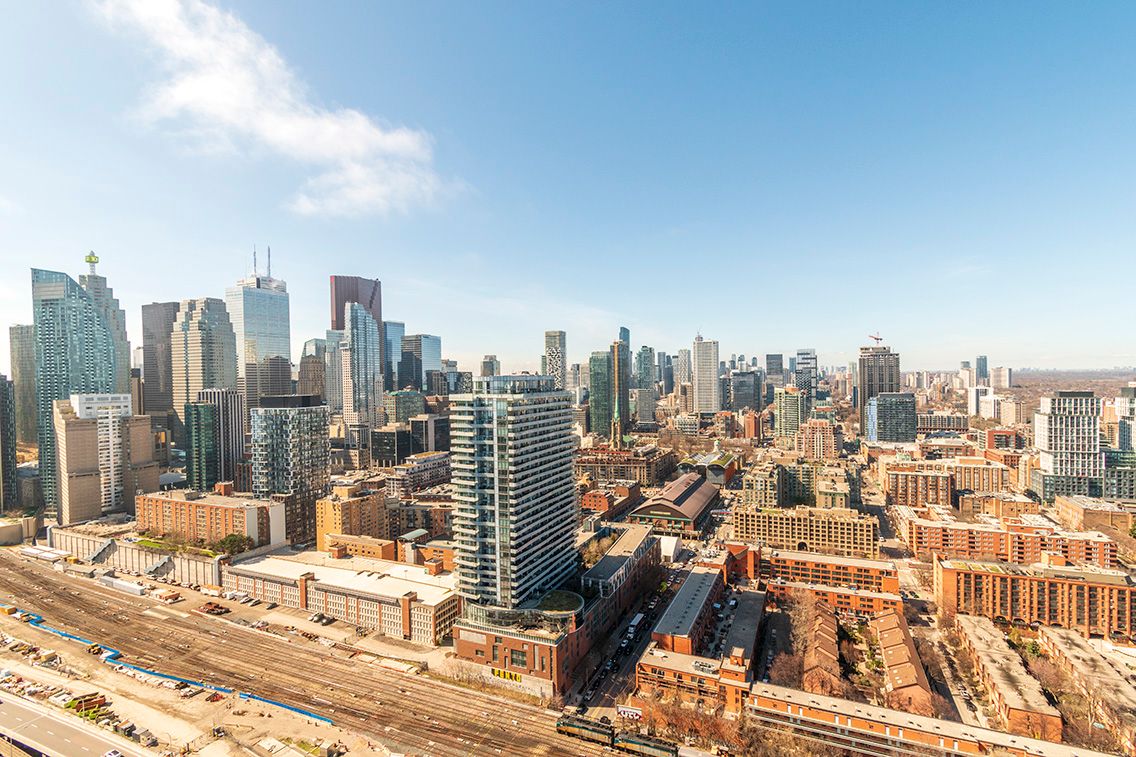 Downtown waterfront's prime lighthouse tower by daniels. Great traffic accessibility: union station, gardiner expy / dvp. Convenient access to: entertainment district & financial district, st lawrence market, distillery district, harbourfront & sugar beach, loblaws, farmboy, george brown college. Well-maintained full facilities: fitness centre, movie theater, outdoor basketball / tennis court, party room, lounge, etc. A spacious functional layout with unobstructed panoramic city view and partial lake view. Fine interior finish: 9-ft ceiling, granite counter, stainless steel appliances, laminate flooring throughout. Tastefully customized: smooth ceiling/ backsplash / luxury roll type window covering [ move-in: early july ]