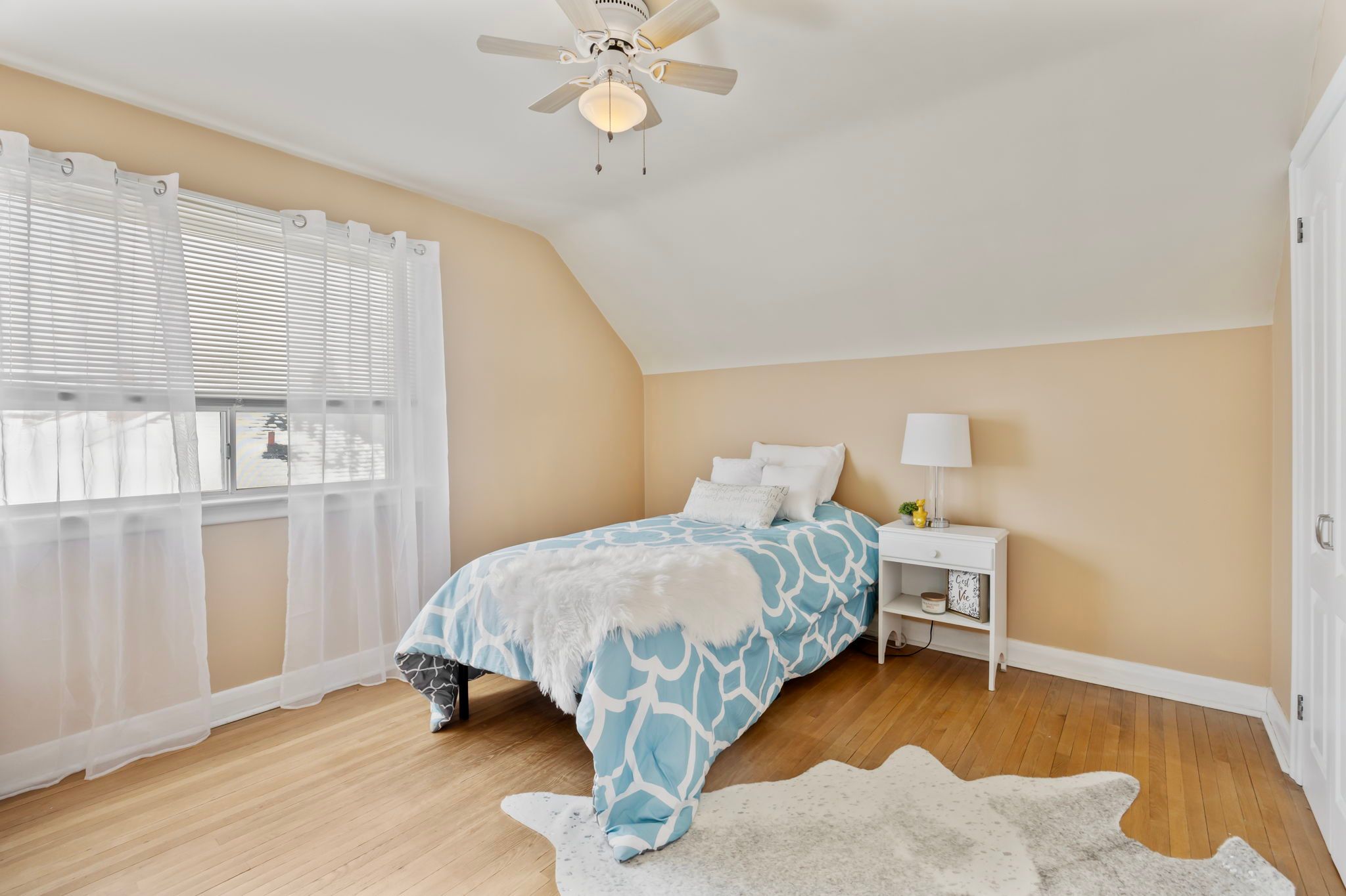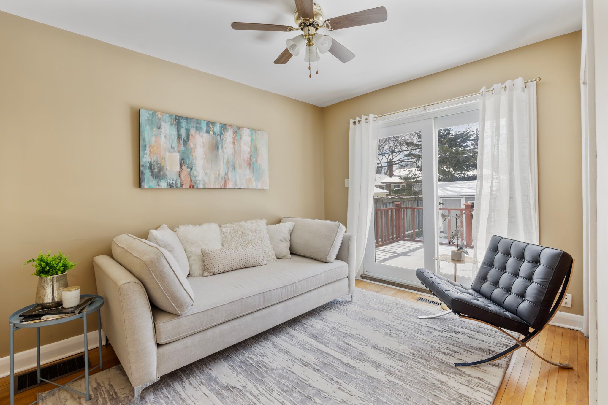 • Bright living room with bay window providing natural light.