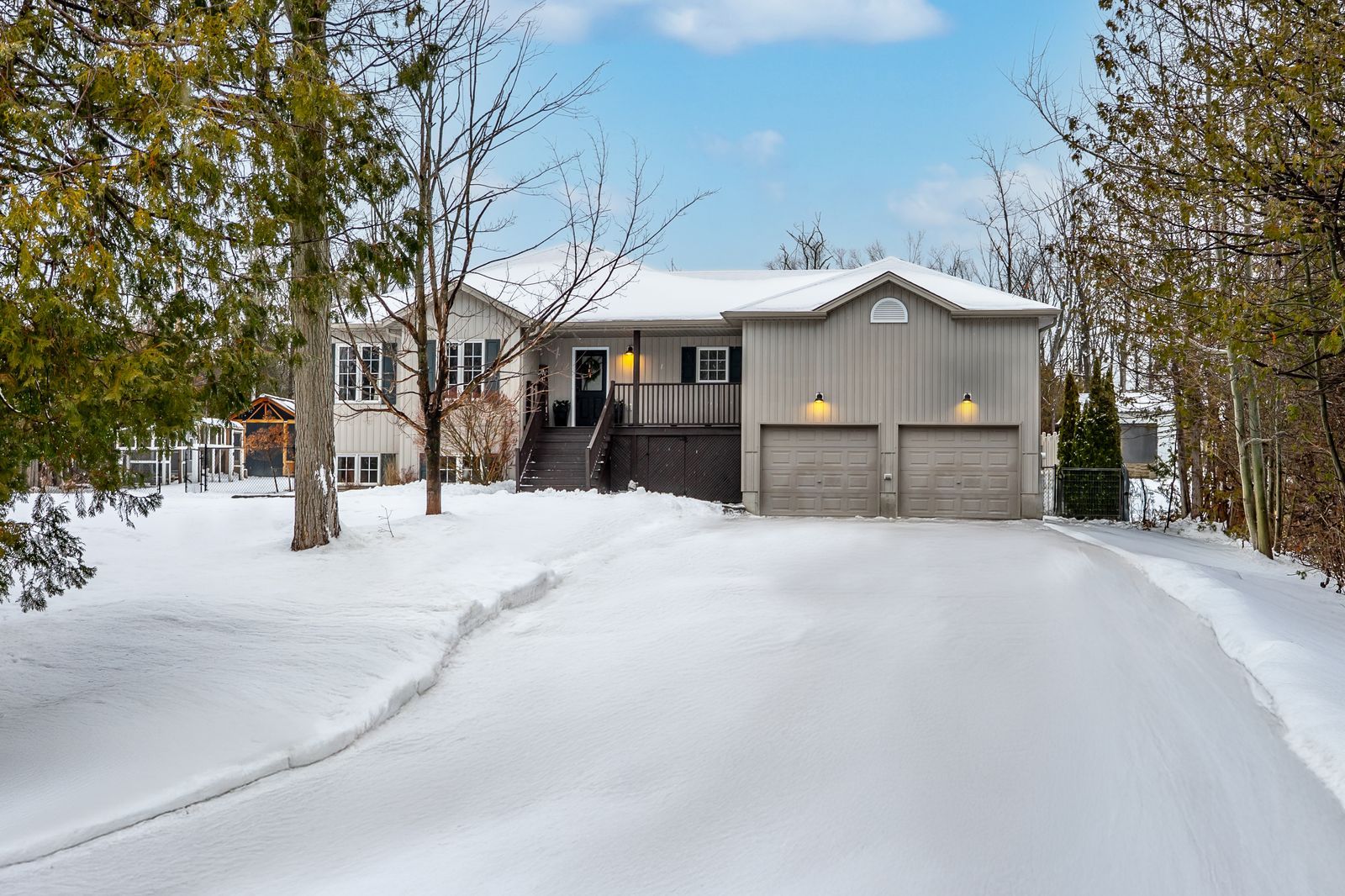 Raised bungalow with in-law potential on nearly half an acre with attached garage & a loft! Nestled in a peaceful hawkestone setting near lake simcoe, this charming raised bungalow captures the best of small-town living with quick access to highway 11 and is approximately 15 minutes to both barrie and orillia. Spend your days by the water at the nearby hawkestone dock, pavilion, boat launch, and oro beach, or explore scenic trails only a short walk away. The nearly half-acre lot offers ample outdoor enjoyment with a large deck, two sheds, a fire pit, a chicken coop, and a kids' playset. The front of the home showcases great curb appeal, featuring an interlock walkway and a welcoming covered porch. The open-concept main level features hardwood and tile flooring, timeless finishes, and a bright kitchen with wood cabinetry, a breakfast bar, pantry, and some stainless steel appliances, including a gas stove, with clear sightlines into the living and dining areas. A walkout from the dining room opens to the back deck, where mornings start with coffee in the fresh air and evenings end surrounded by the sounds of nature. The primary bedroom includes a 3-piece ensuite and two double closets, while the main floor laundry with a sink adds everyday practicality. The fully finished basement, featuring a separate entrance, offers in-law potential and includes a cozy rec room with a gas fireplace, built-in bookshelves, a fourth bedroom, and a full bathroom. The attached two-car garage includes a loft area that provides additional storage, and the home is equipped with an 11 kw generac generator. A truly inviting #hometostay in a setting that's easy to fall in love with.