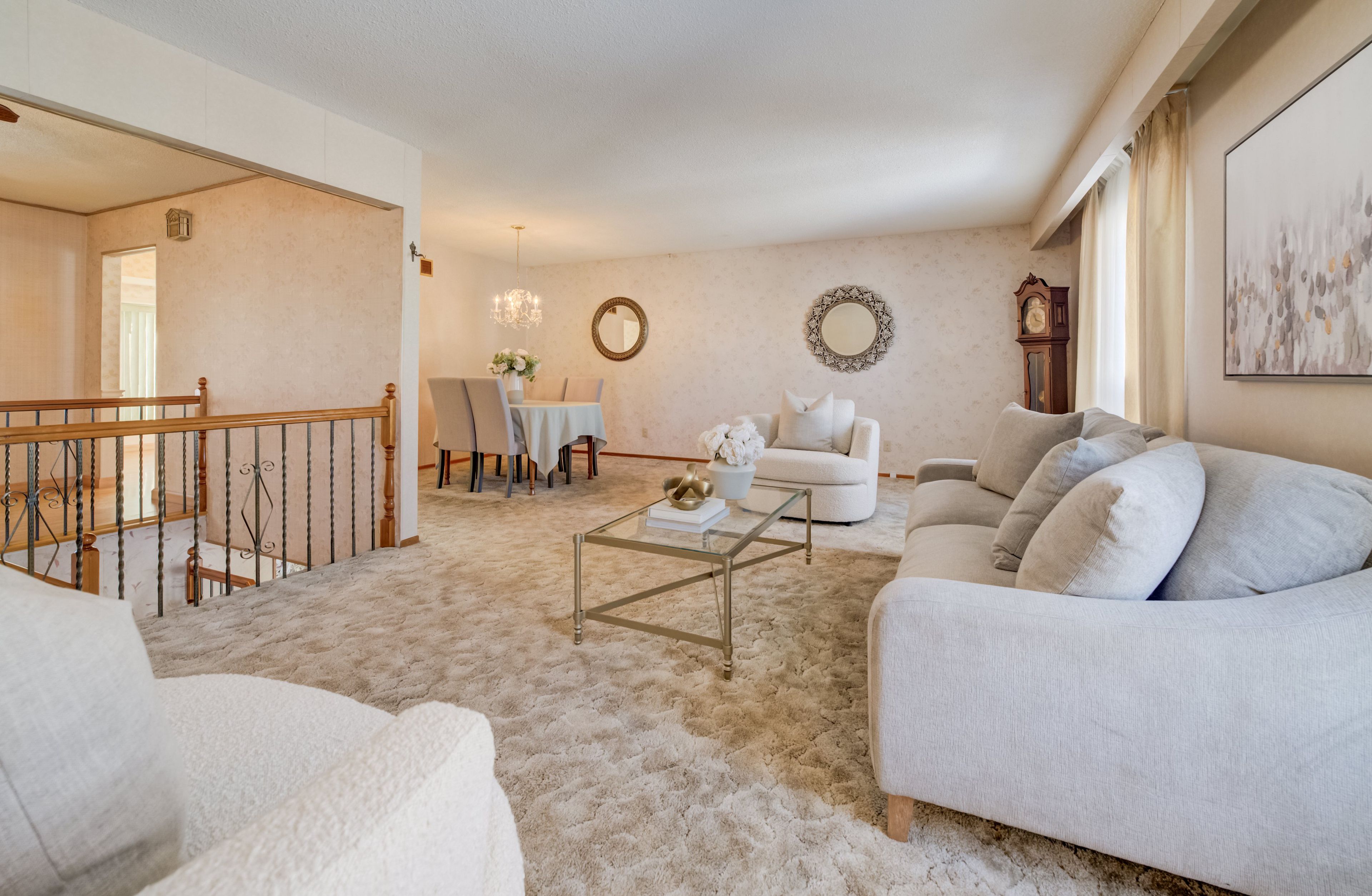 • Main floor features sun filled living room, eat-in kitchen, and dining area.