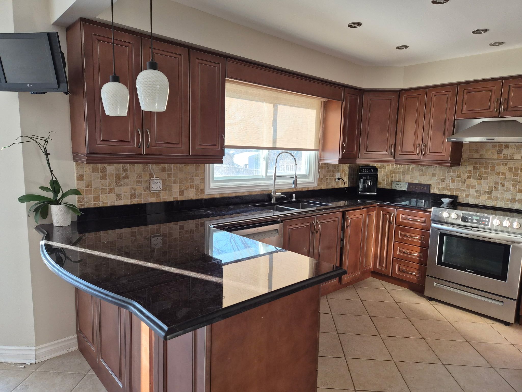 • Upgraded kitchen with quartz countertop and ample cooking space.