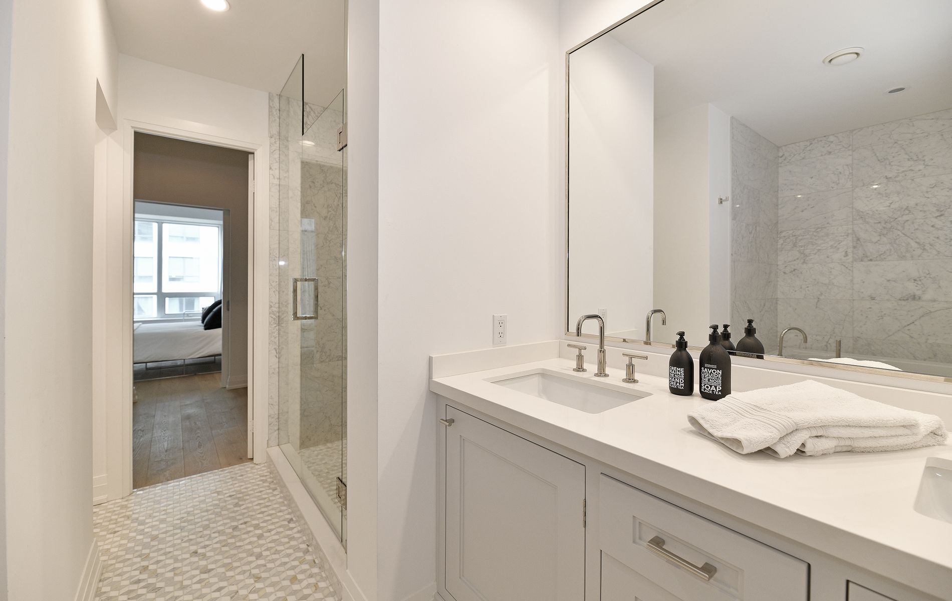 • Modern kitchen features stainless steel appliances and Quartz countertops.