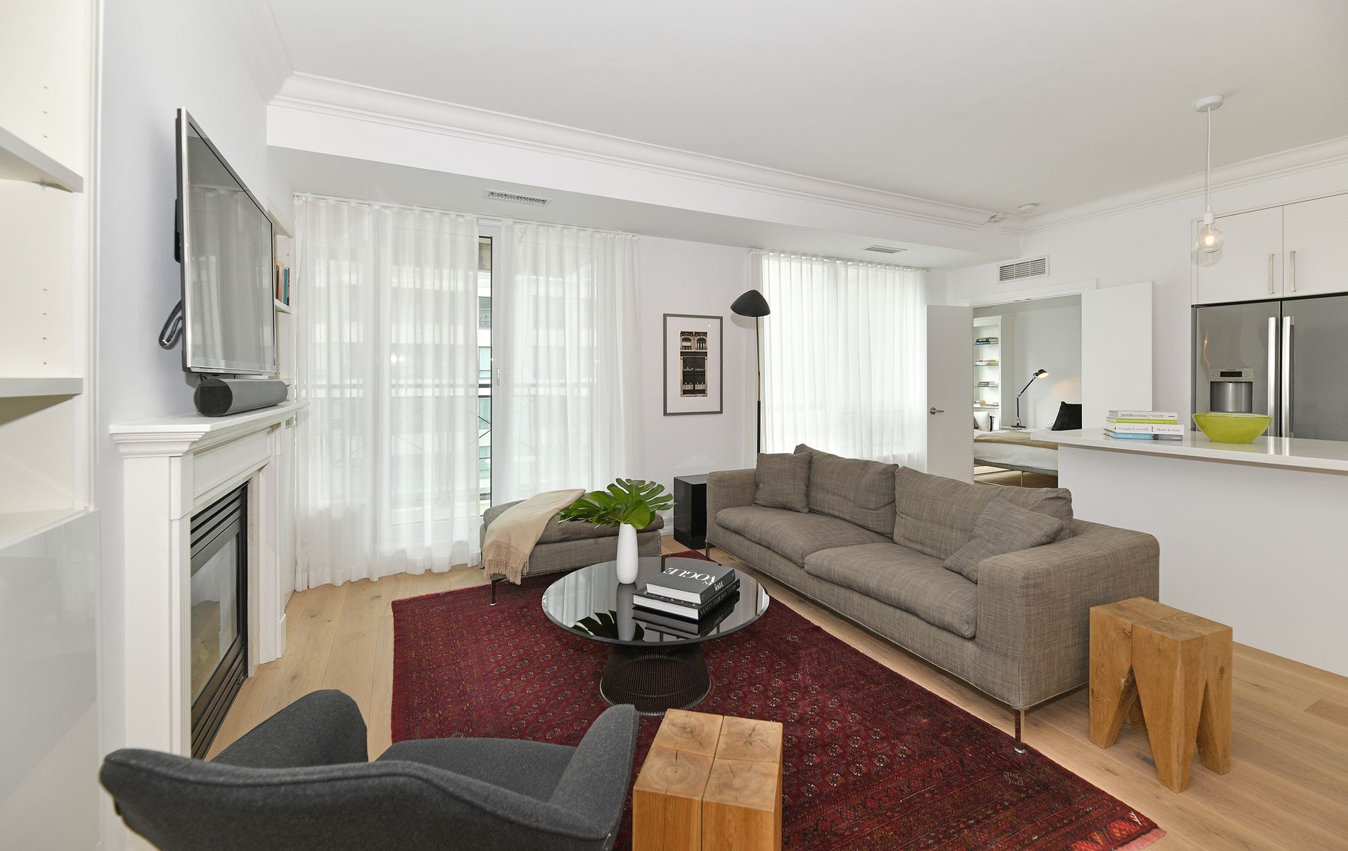 Exquisitely renovated with luxurious detailing in the prestigious thornwood building in rosedale. Live in this stunning and bright 1105 sqft 2-bedroom, south-facing condo. Renovated kitchen with built-in stainless steel appliances, large centre island with quartz countertops, open concept living and dining room with new white oak hardwood floors, gas fireplace, and a walkout to south-facing balcony. Principal bedroom with a walk-through closet leading to a brand new 5-piece en-suite. Live close to yonge street shops, restaurants, parks, and subway. March 1st occupancy