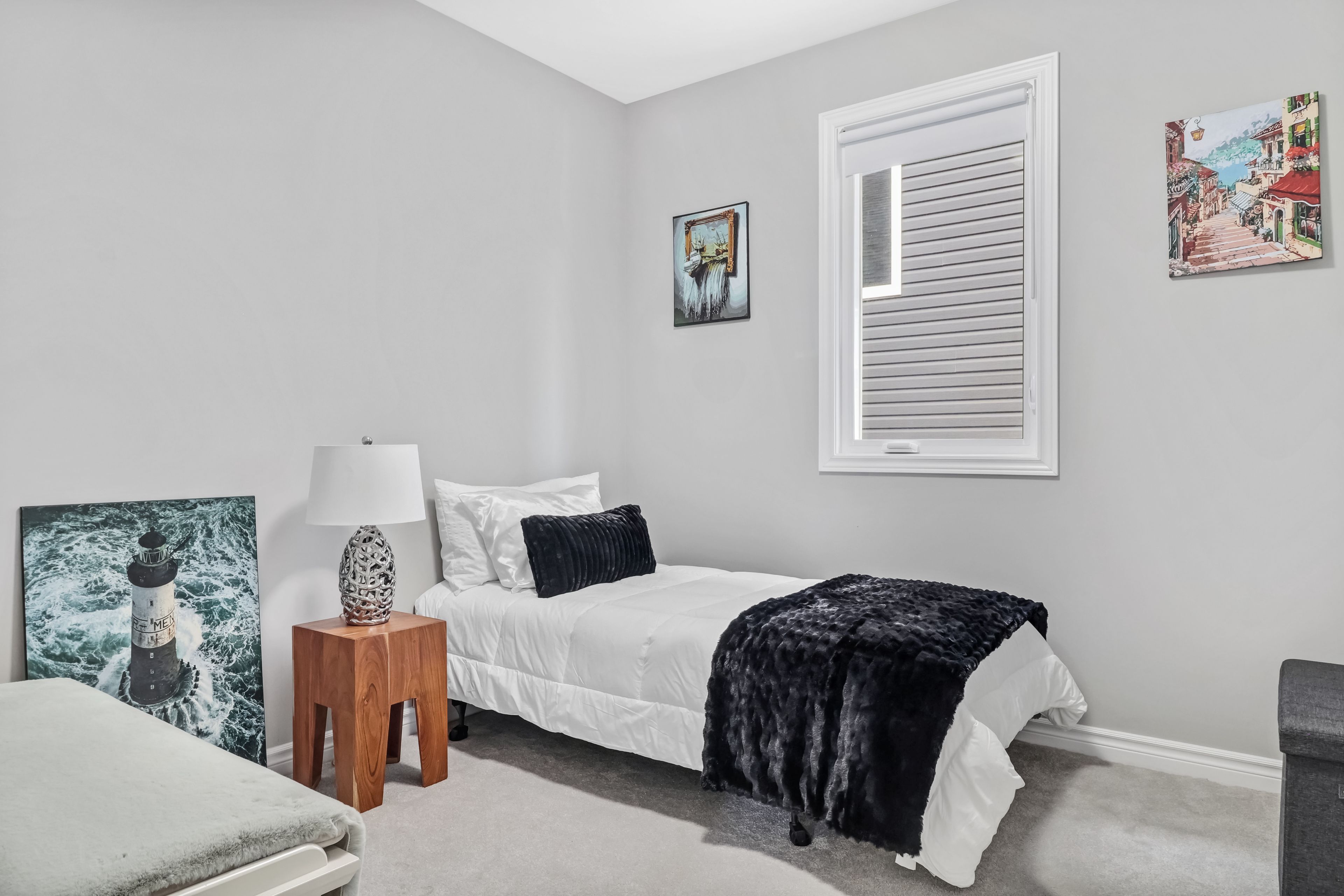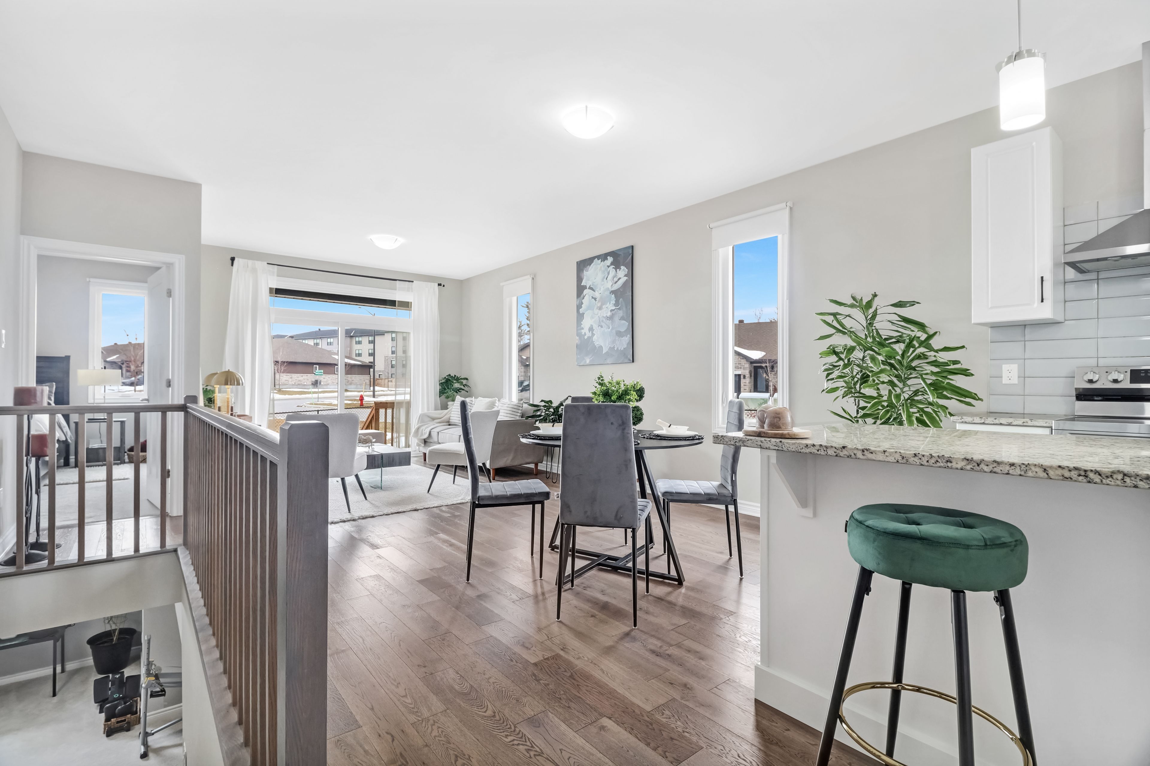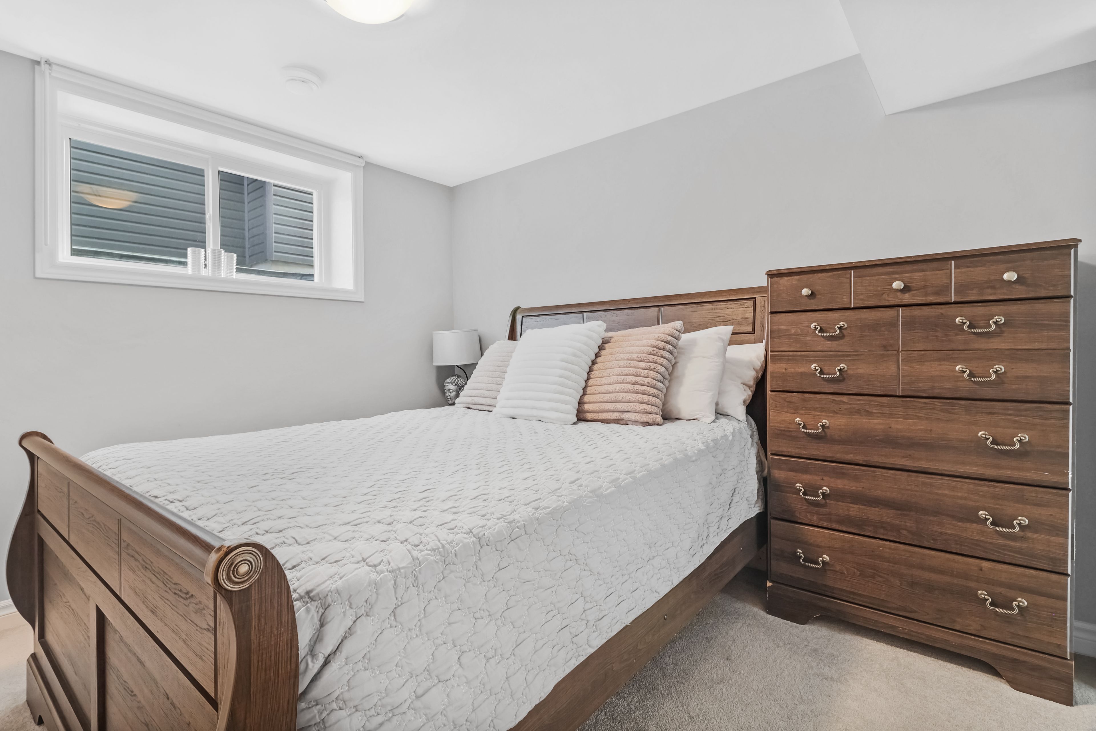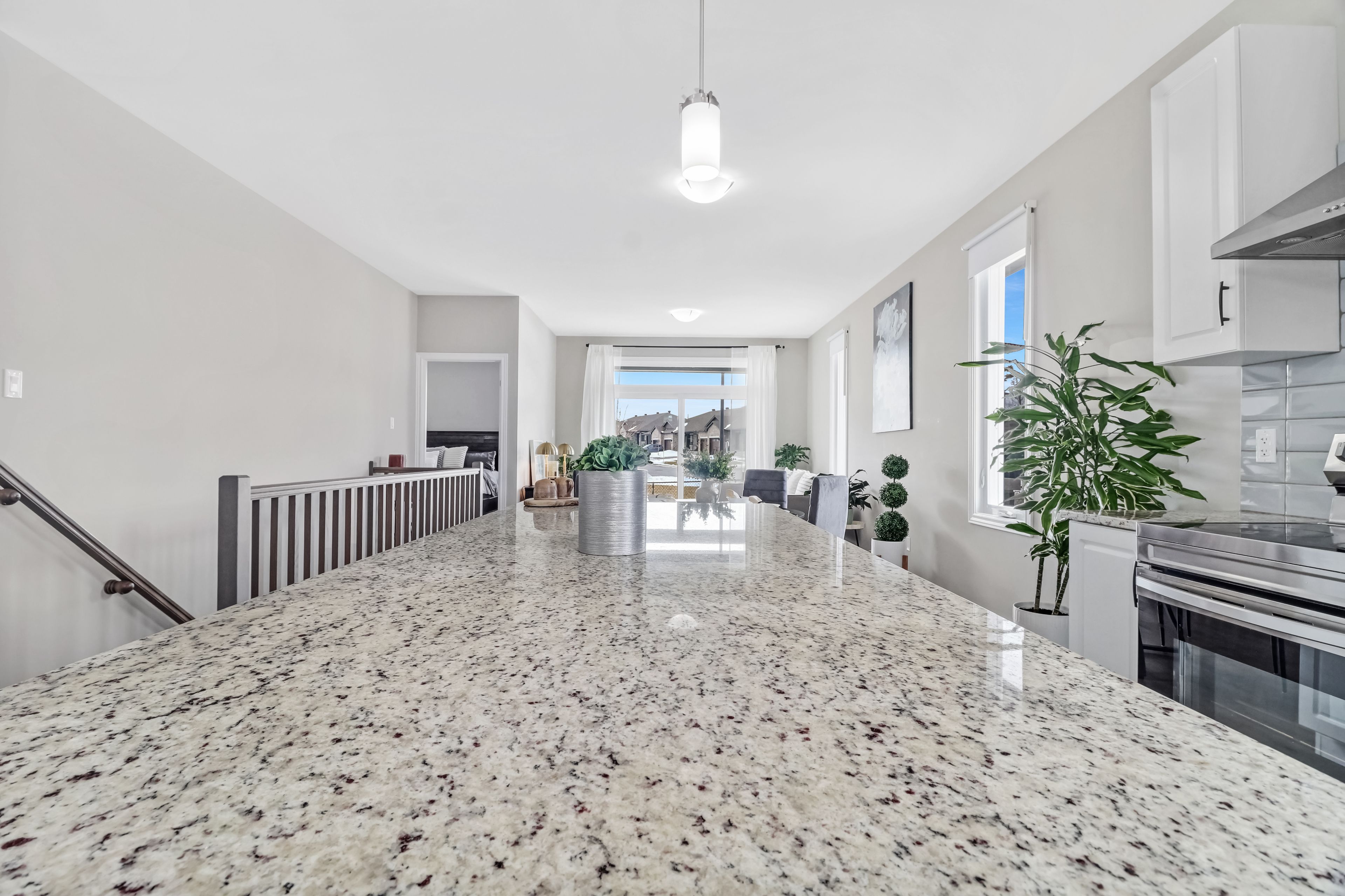 Discover this exquisite 4-bedroom + den, 3-full-bathroom detached bungalow with a 2-car garage, perfectly situated on a massive corner lot. Flooded with natural light, this home welcomes you with a grand foyer and a versatile den, currently serving as a formal dining space but easily suitable as an office or other flexible area. The main floor unveils a gourmet kitchen that flows effortlessly into a bright, open living area. Featuring granite countertops, a tiled backsplash, a spacious center island, abundant cabinetry, and a charming chimney, the kitchen exudes both style and warmth. Sliding doors from the living area open to a stunning backyard deck, ideal for serene outdoor relaxation. The expansive primary suite offers a generous walk-in closet and a private ensuite with a convenient walk-in shower, joined by two additional well-sized bedrooms and a second full bathroom on the main level. The fully finished lower level, equally bathed in natural light, impresses with a fourth bedroom, a full bathroom, a vast recreation room, and ample storage to accommodate all your needs. Nestled on a prime corner lot that maximizes brightness, this bungalow blends modern upgrades with thoughtful design, creating an inviting and functional sanctuary. Its unbeatable location places you just minutes from the highway, surrounded by all existing amenities, and within walking distance to exciting upcoming retail, making this home a perfect harmony of convenience and contemporary living. Don't miss this extraordinary opportunity, schedule your tour today to experience this captivating residence for yourself!