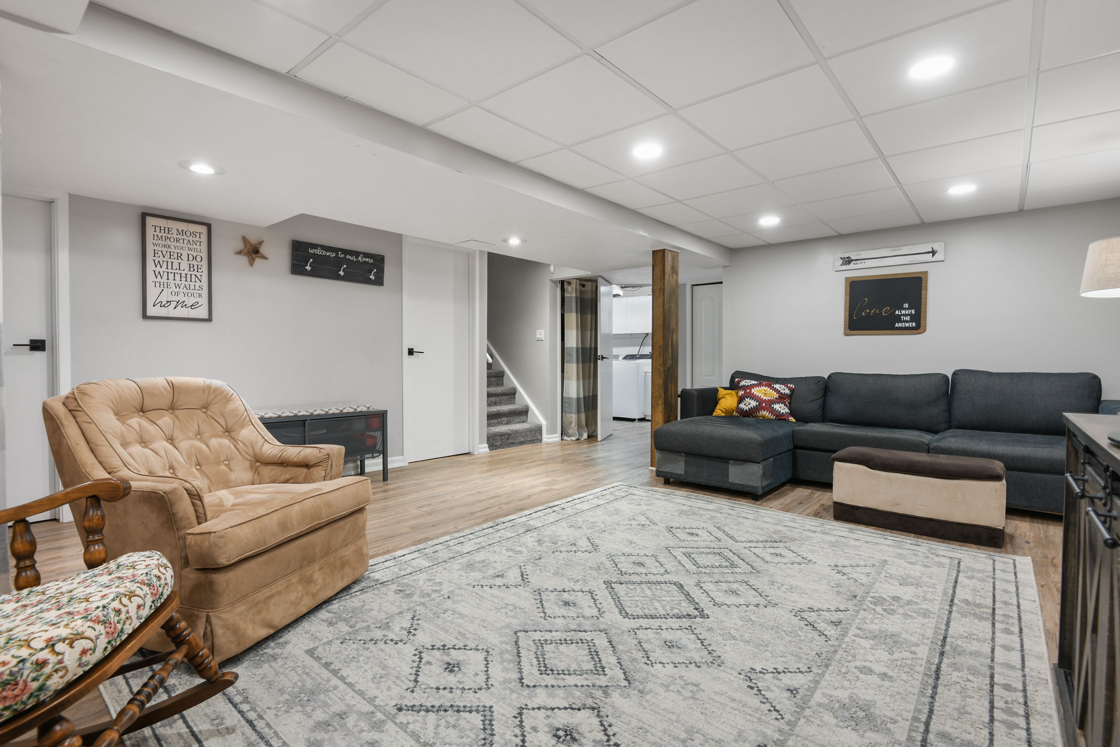 • Fully finished basement with a rec room and extra bathroom for convenience.