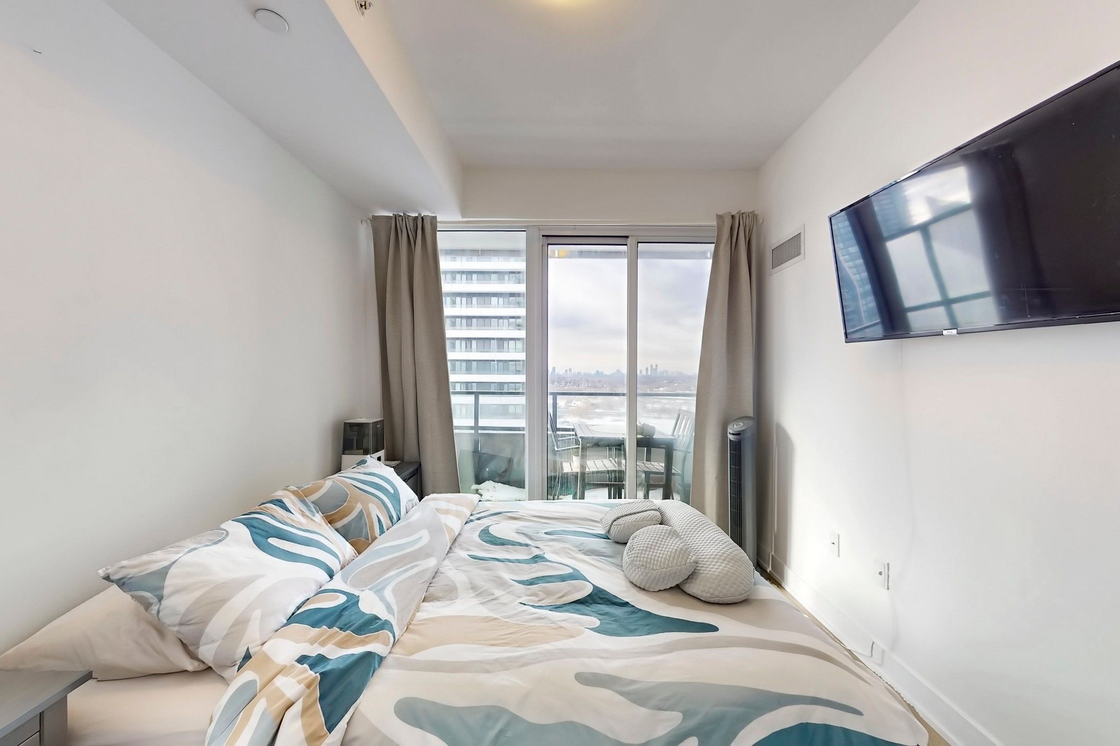 Located in one of the most sought-after pockets by lakeshore, this bright and beautifully designed 1+1 suite offers 538 sq ft of functional living space and a spacious balcony with stunning city and lake views. Thoughtfully upgraded with ceiling-height cabinetry, engineered hardwood flooring, kitchenaid appliances, and an enhanced countertop. Bathroom features a converted walk-in shower and upgraded vanity. Enjoy resort-style amenities on the 6th and 7th floors including a games room, party room, indoor pool, lounge, fully equipped gym, yoga studio, theatre, and rooftop patio.