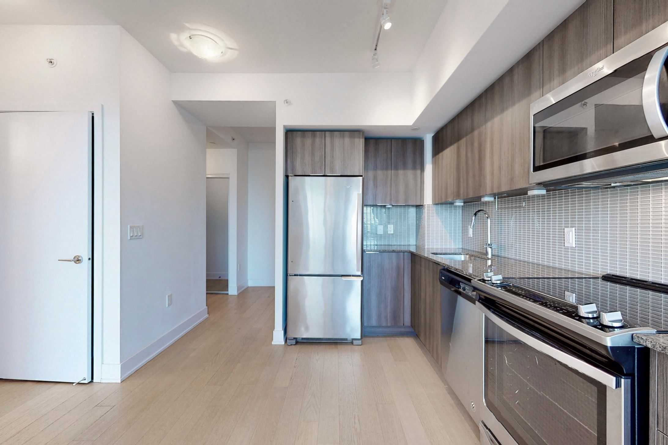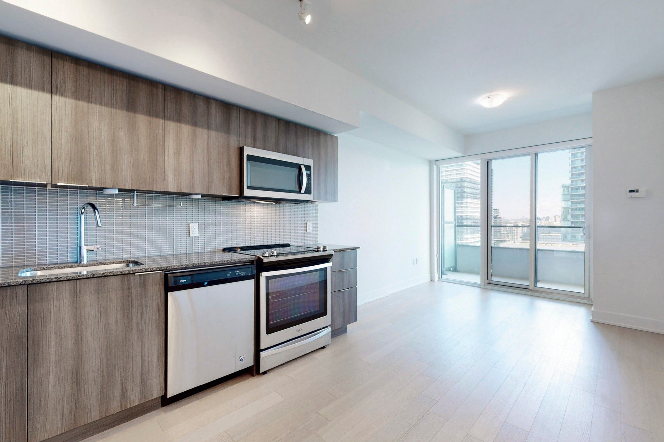Move in today and experience elevated waterfront living at suite #2006 in the highly sought-after eau du soleil condos - water tower! This freshly painted, impeccably clean 1 bedroom + den offers a bright and functional layout with breathtaking lake and toronto skyline views from the 20th floor. Enjoy premium neutral laminate flooring throughout (excluding the washroom) and a seamless open-concept living, dining, and kitchen space-perfect for everyday living and entertaining. The upgraded kitchen features granite countertops, stylish backsplash, and stainless steel appliances. The spacious primary bedroom includes a large closet and direct walkout to your private balcony, where you can take in stunning views day and night. The versatile den is ideal for a home office or guest space. Complete with a full 4-piece bathroom and convenient stacked washer & dryer. Includes 1 parking space and 1 locker. Enjoy resort-style amenities including concierge, indoor pool, gym, hot tub, yoga studio, party room, theatre, guest suites, and more. Located steps to humber bay park, waterfront trails, transit, and quick highway access-this is city living at its best!