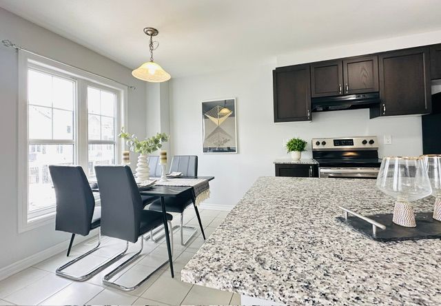 Nestled on a tranquil street within a highly desirable community, this stunning 3-story end-unit townhome offers the lifestyle you've been dreaming of. Enter the main level, where a spacious entrance and practical closet await, along with the convenience of in-unit laundry. Ascend to the second floor and discover a bright and airy open-concept living space, seamlessly blending a modern kitchen with a generous great room and formal dining room. Crave some outdoor relaxation? Step out onto the expansive balcony and enjoy fantastic views. The well-appointed kitchen is a chef's delight, boasting ample cabinetry, gleaming granite countertops, and sleek stainless steel appliances. On the top floor, retreat to the sun-drenched primary bedroom, complete with a walk-in closet and ensuite access. The second bedroom also enjoys abundant natural light. Enjoy unparalleled convenience with walmart, costco, major highways, diverse shops, public transit, and parks just minutes away. This is an exceptional opportunity you won't want to miss!