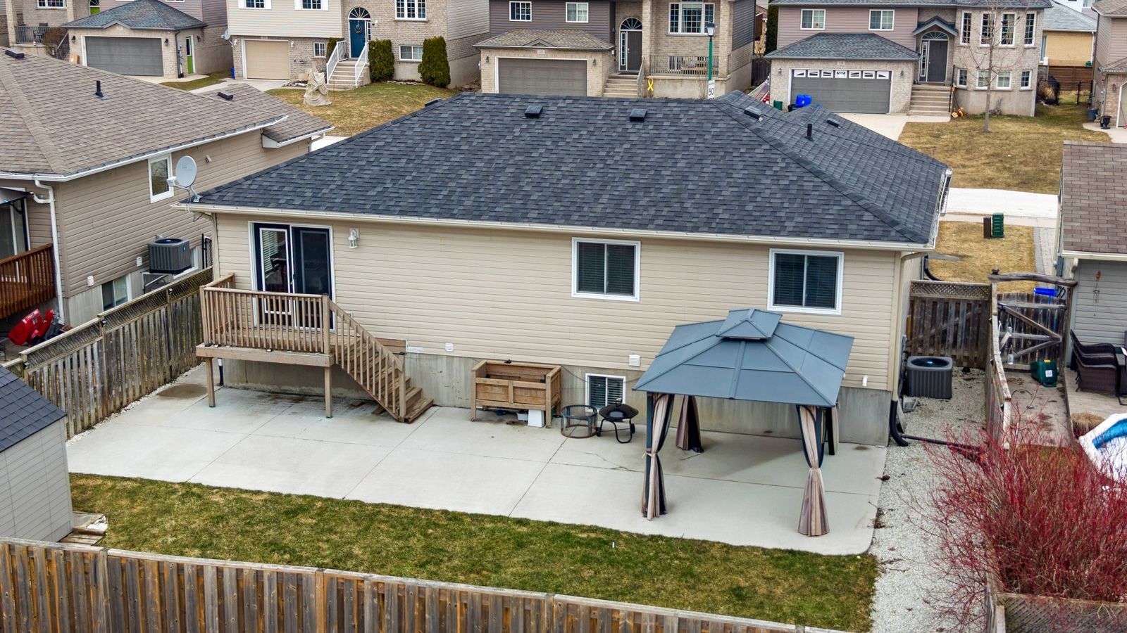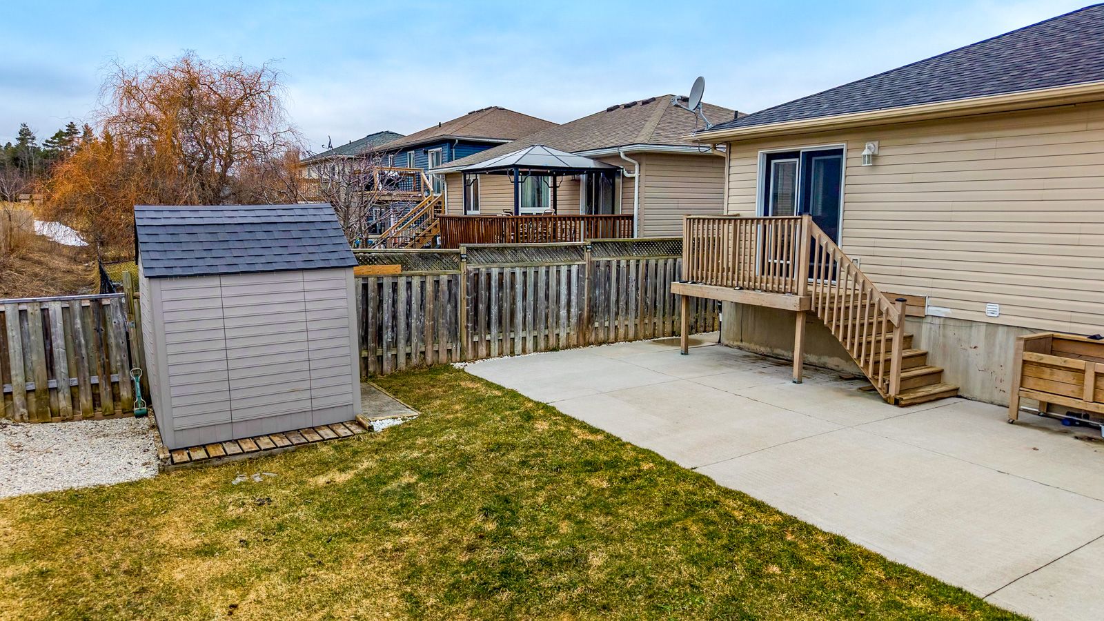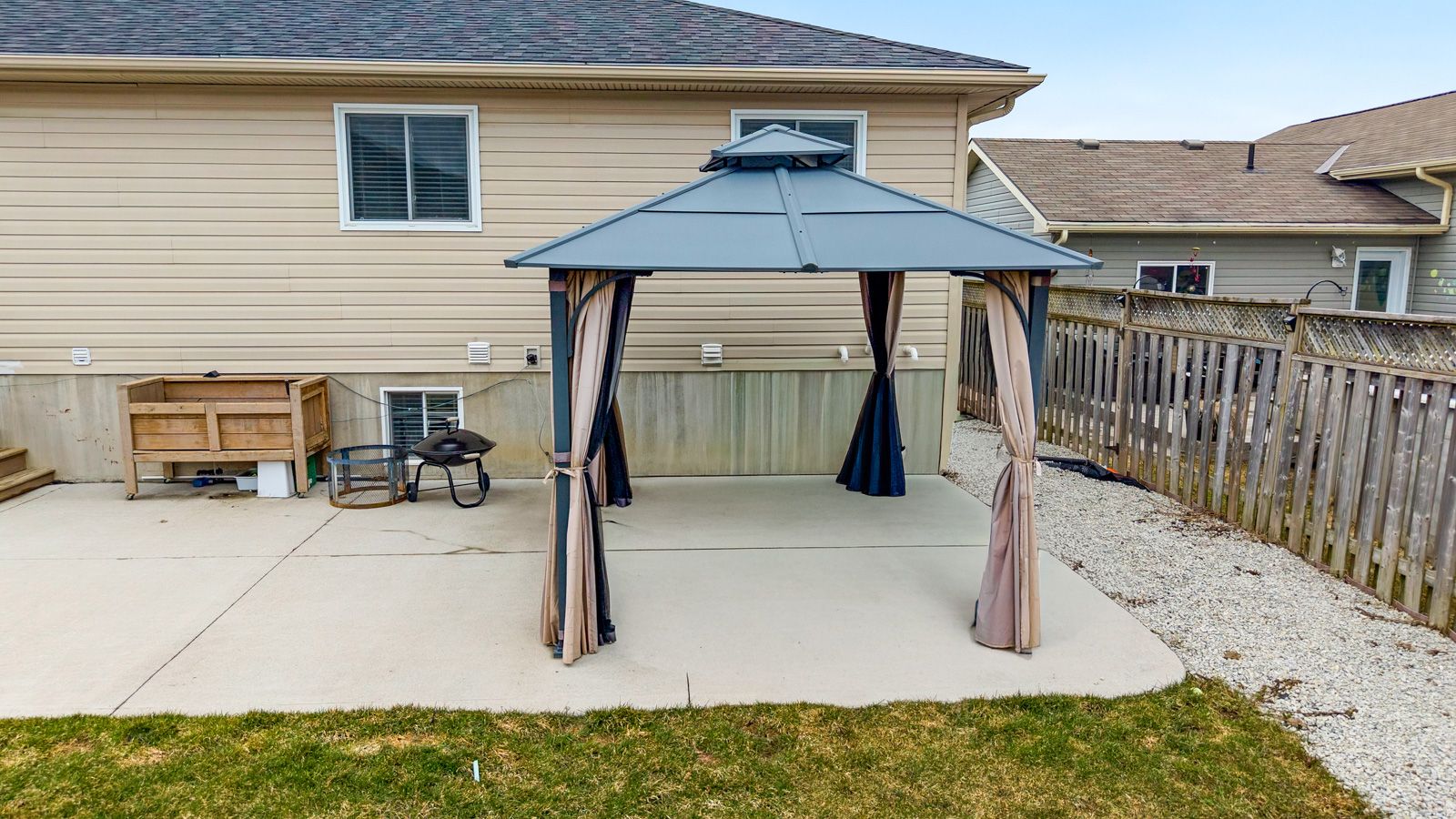 • Backyard features a new concrete patio for summer gatherings.