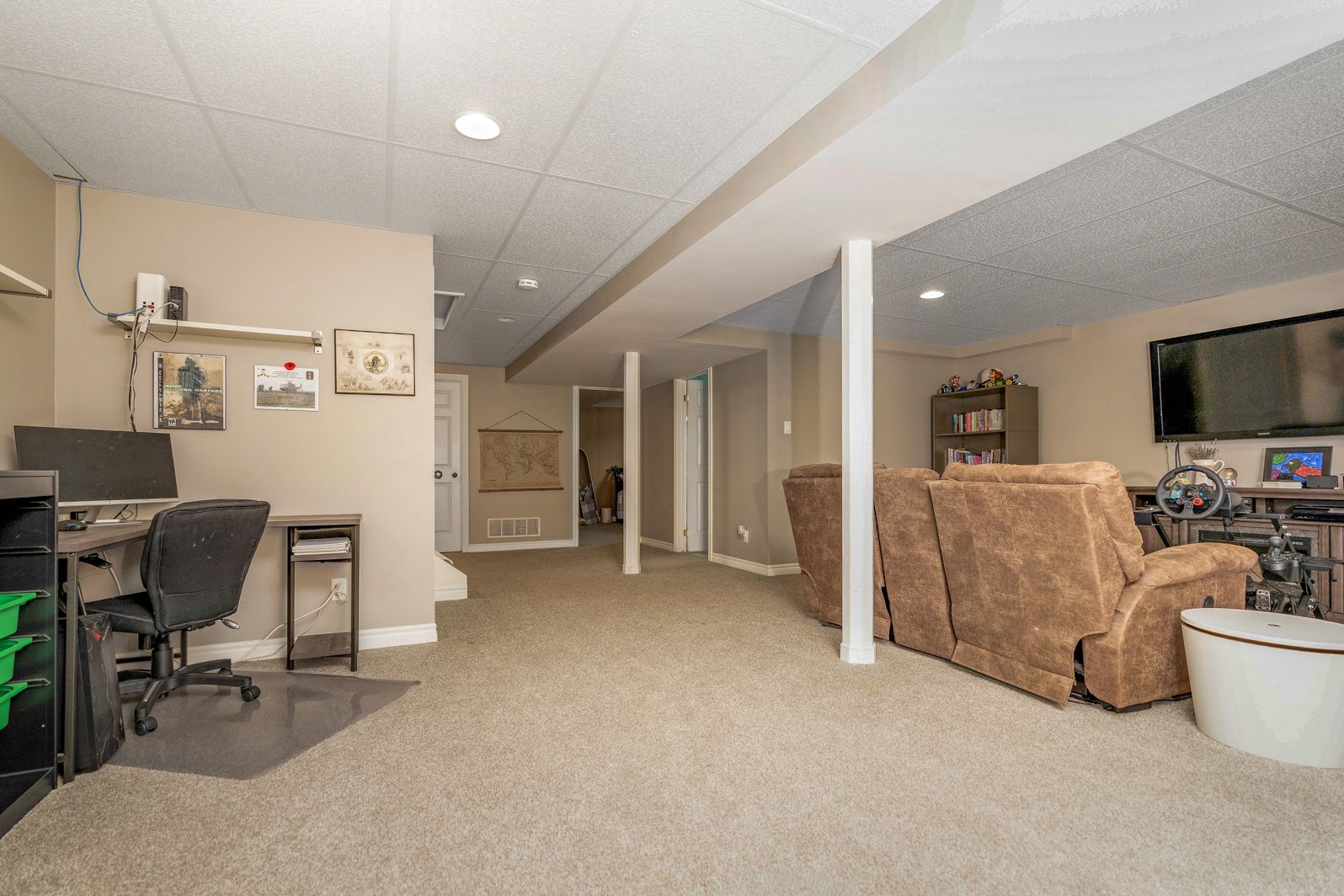 • Lower-level family room perfect for movie nights or relaxation.