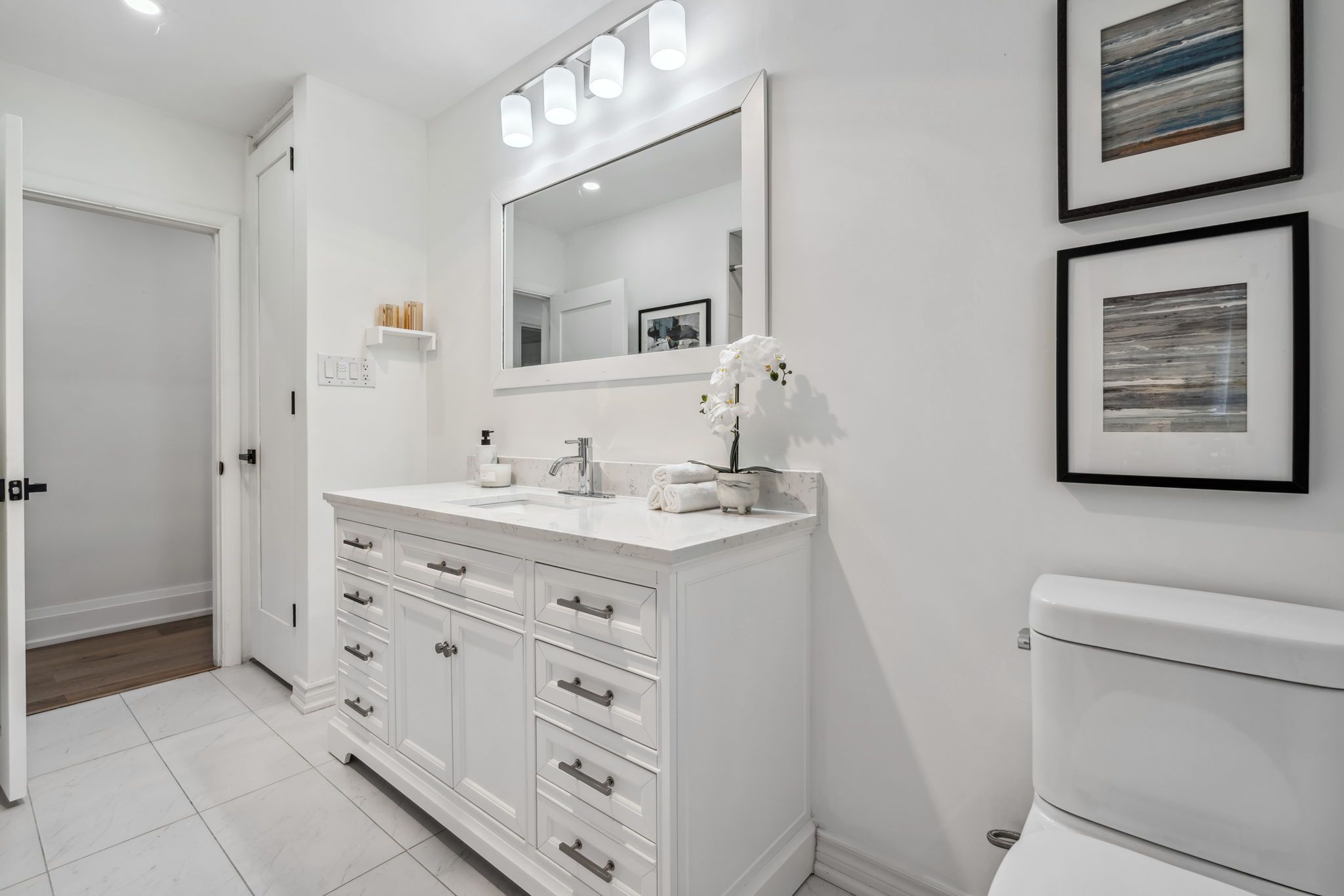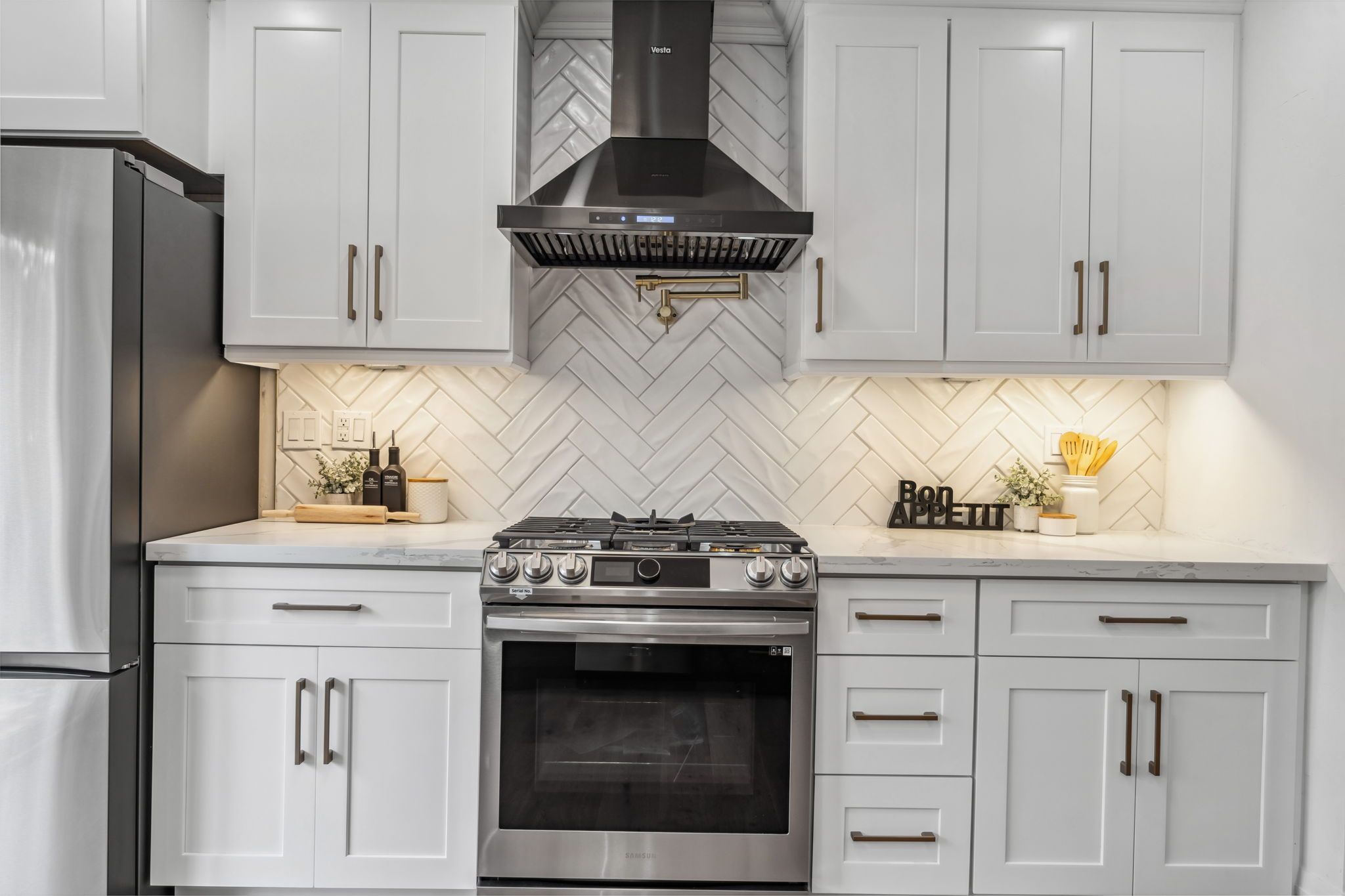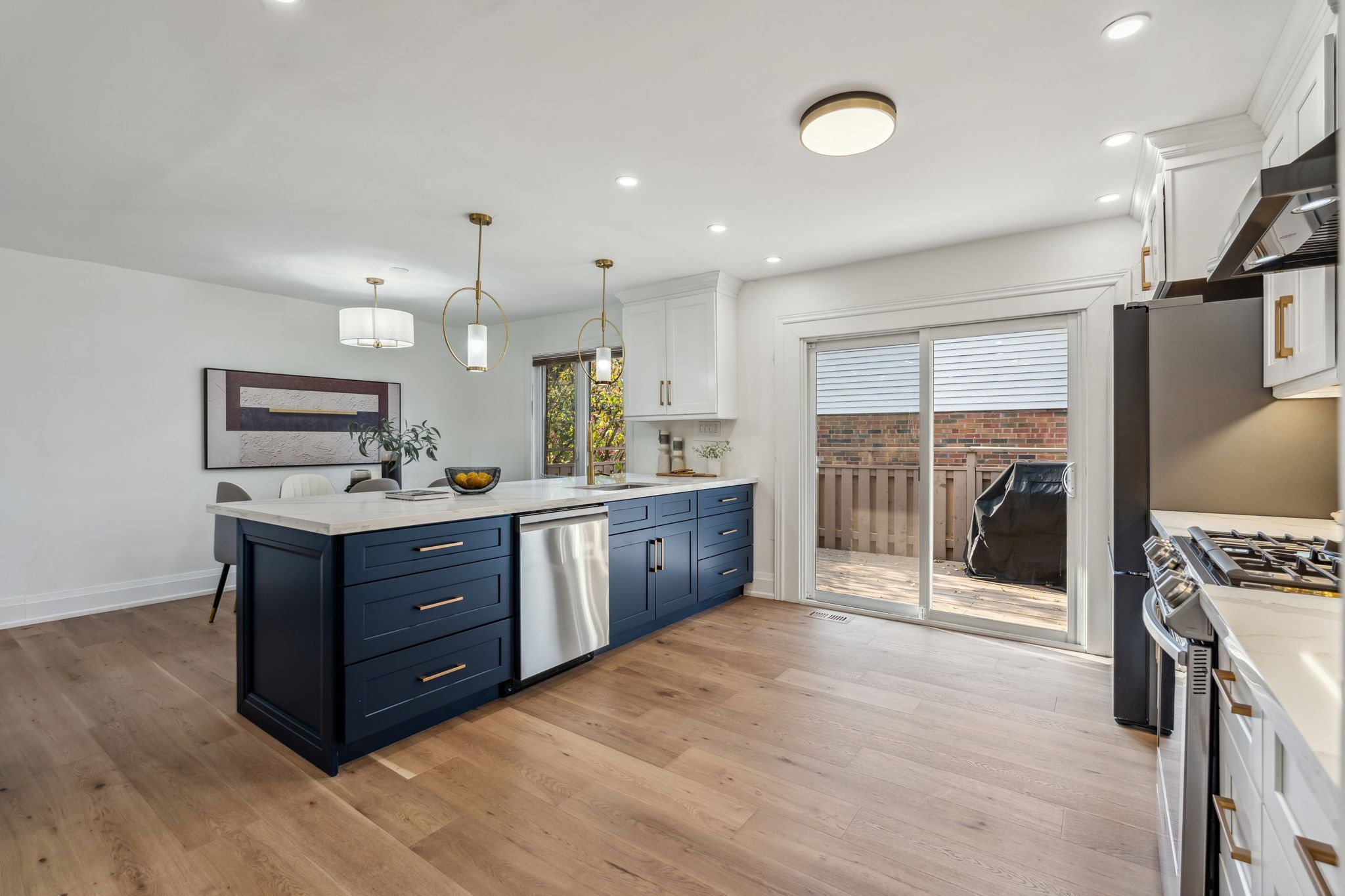 • Massive kitchen with new appliances, natural gas stove, and quartz counters.