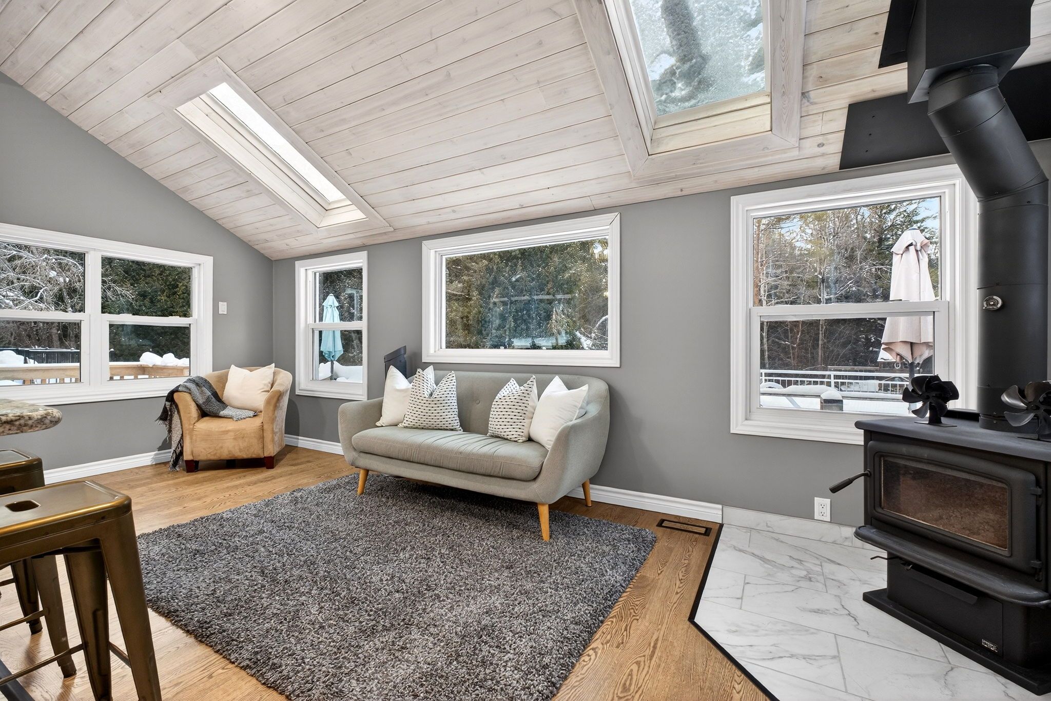 Spacious and bright bungalow offering over 4,000 sq. Ft. Of total living space, situated on over 5 acres with privacy and a walk-out basement. The main level features high ceilings, an open-concept layout, a large kitchen, and a sitting area with a woodstove. The primary bedroom includes a walk-out to a private deck, plus three additional good-sized bedrooms. The lower walk-out level offers a rec room, two bedrooms, a kitchen, and laundry, suitable for multi generational living. Exterior features include a heated workshop, above-ground pool, and spring-fed pond. Many recent upgrades throughout, including new roof (2025), sitting room and kitchen flooring (2025), new sump pump and waterproofing (2025), lower-level flooring (2025), woodstove (2026), septic system (2021) and generlink generator connection (2026). See attachment for a full list of additional improvements. Private setting with convenient access to the highway and a short drive to peterborough.