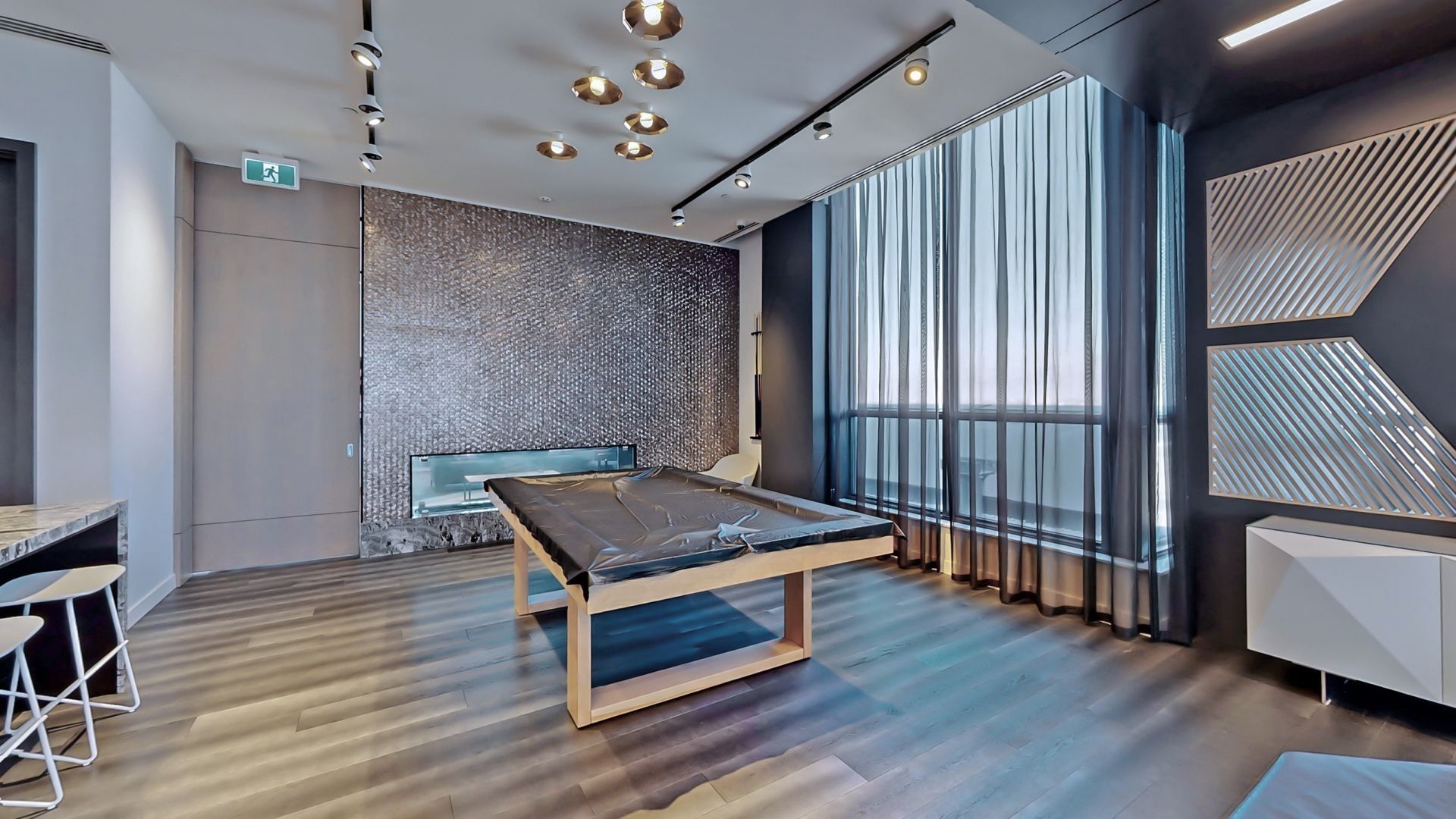• Great amenities like a sauna, fitness gym, and party room.
