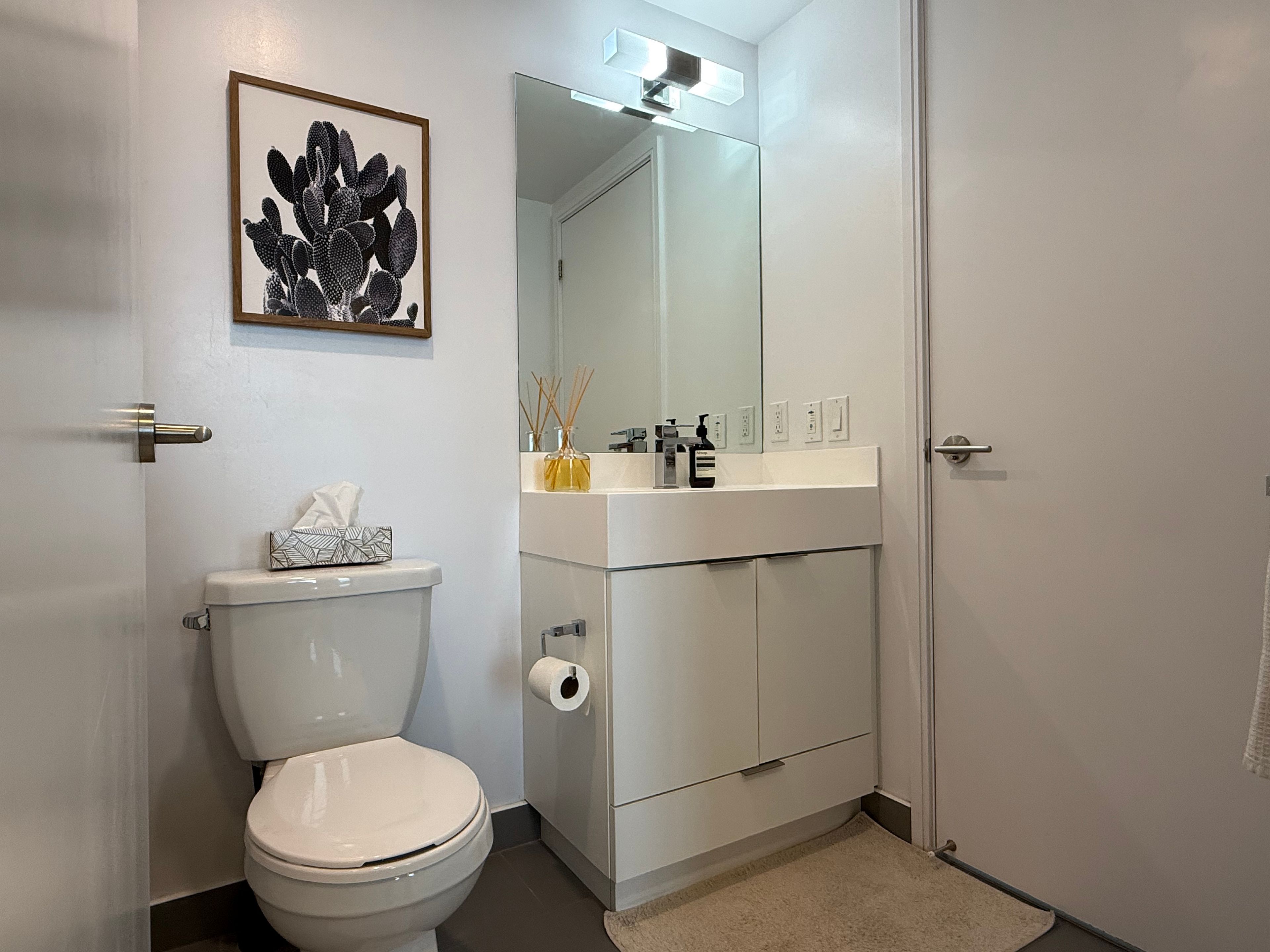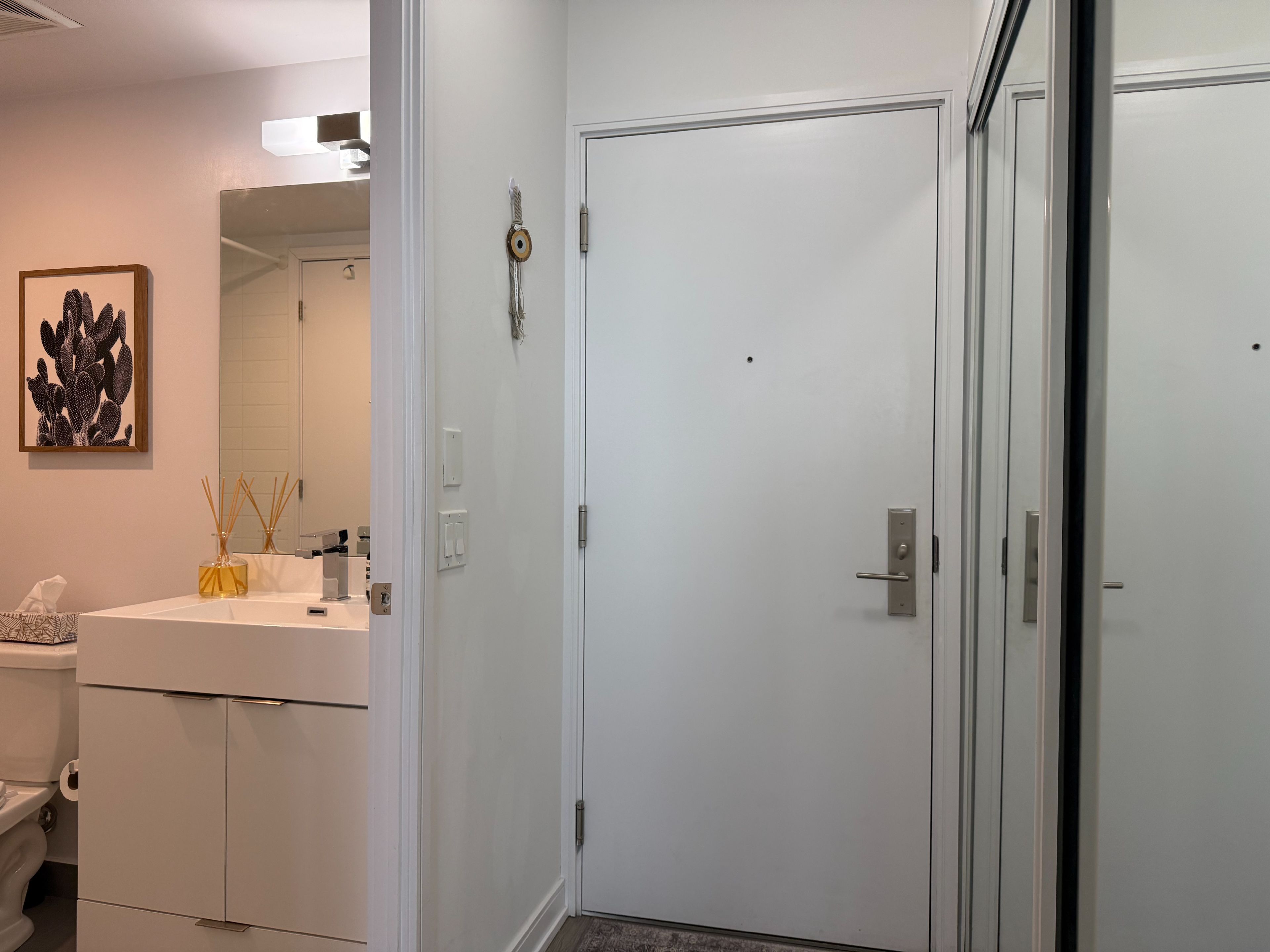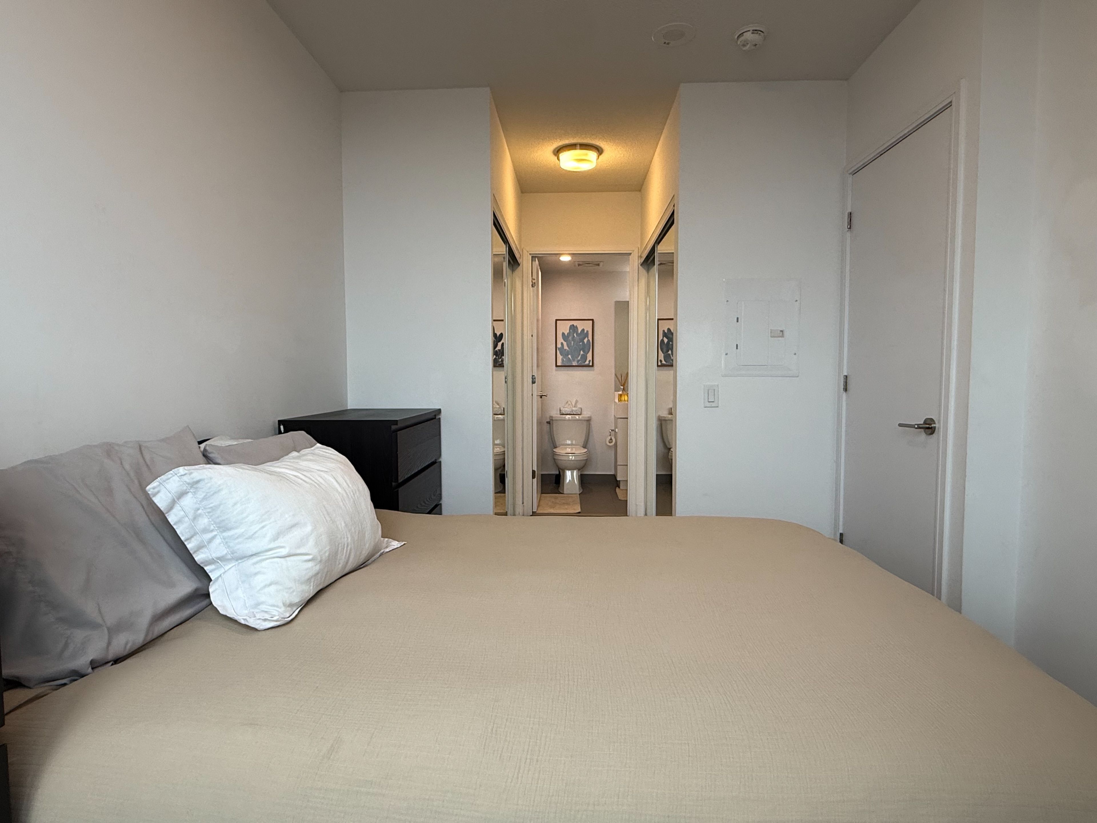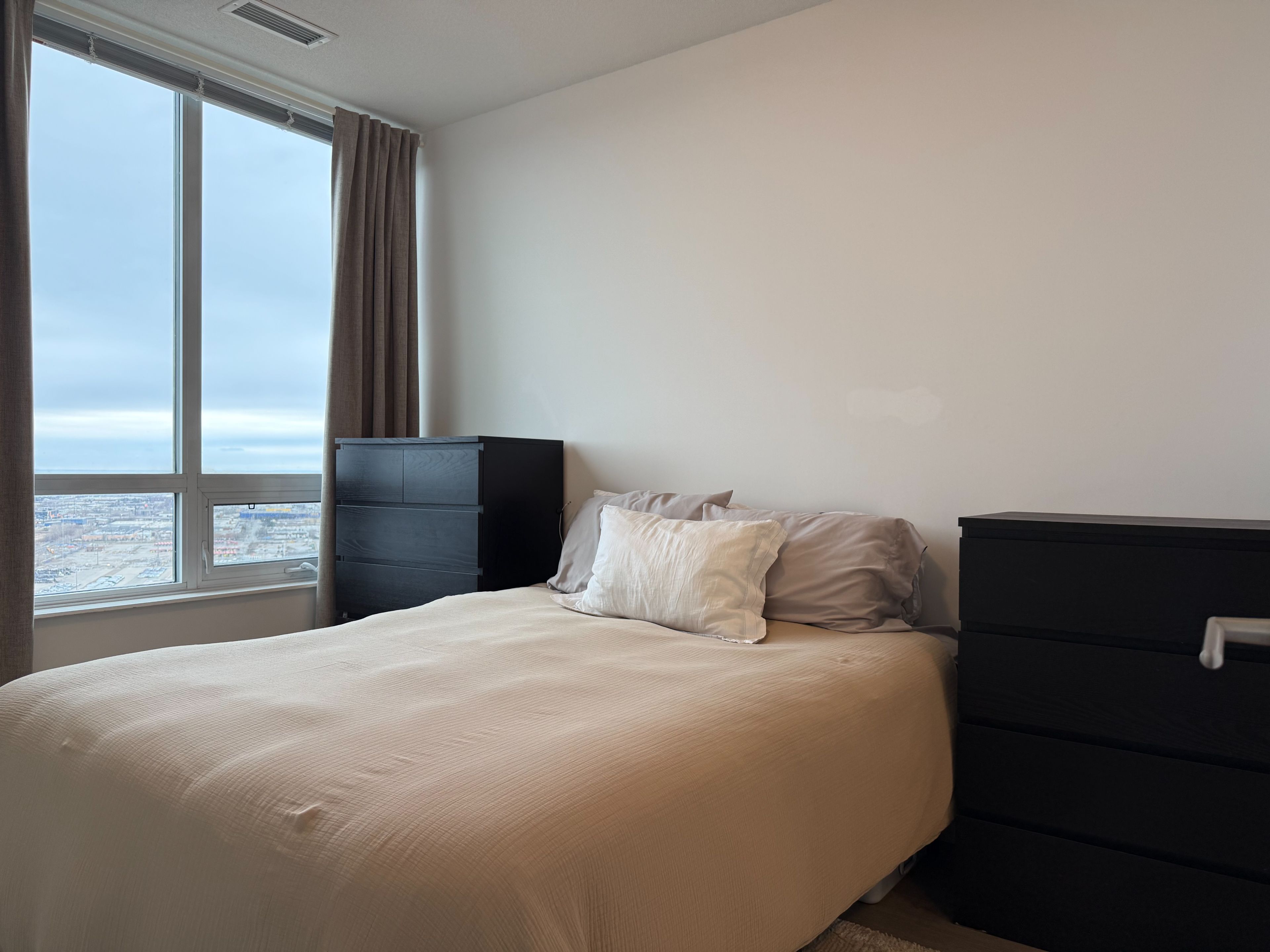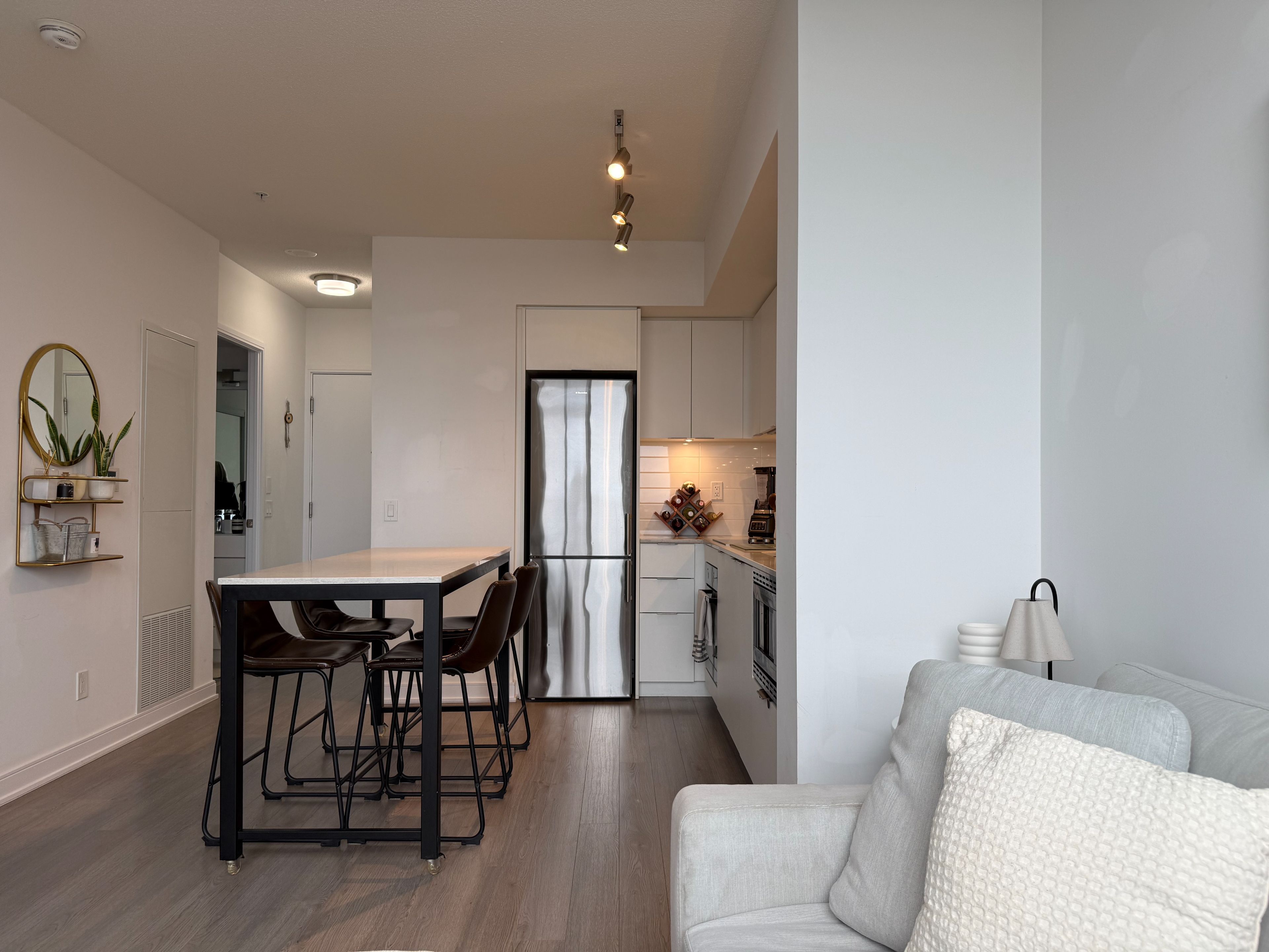 Looking for a unit that makes the most of its space and offers incredible views? Look no further than 2808. The thoughtfully designed floor plan maximizes everyday living, featuring a kitchen with a movable island that provides both extra counter space and a convenient place to eat. The well-defined bedroom is spacious and showcases unobstructed city views and tons of closet space throughout. Commuting is effortless with both the subway and go train station just steps away