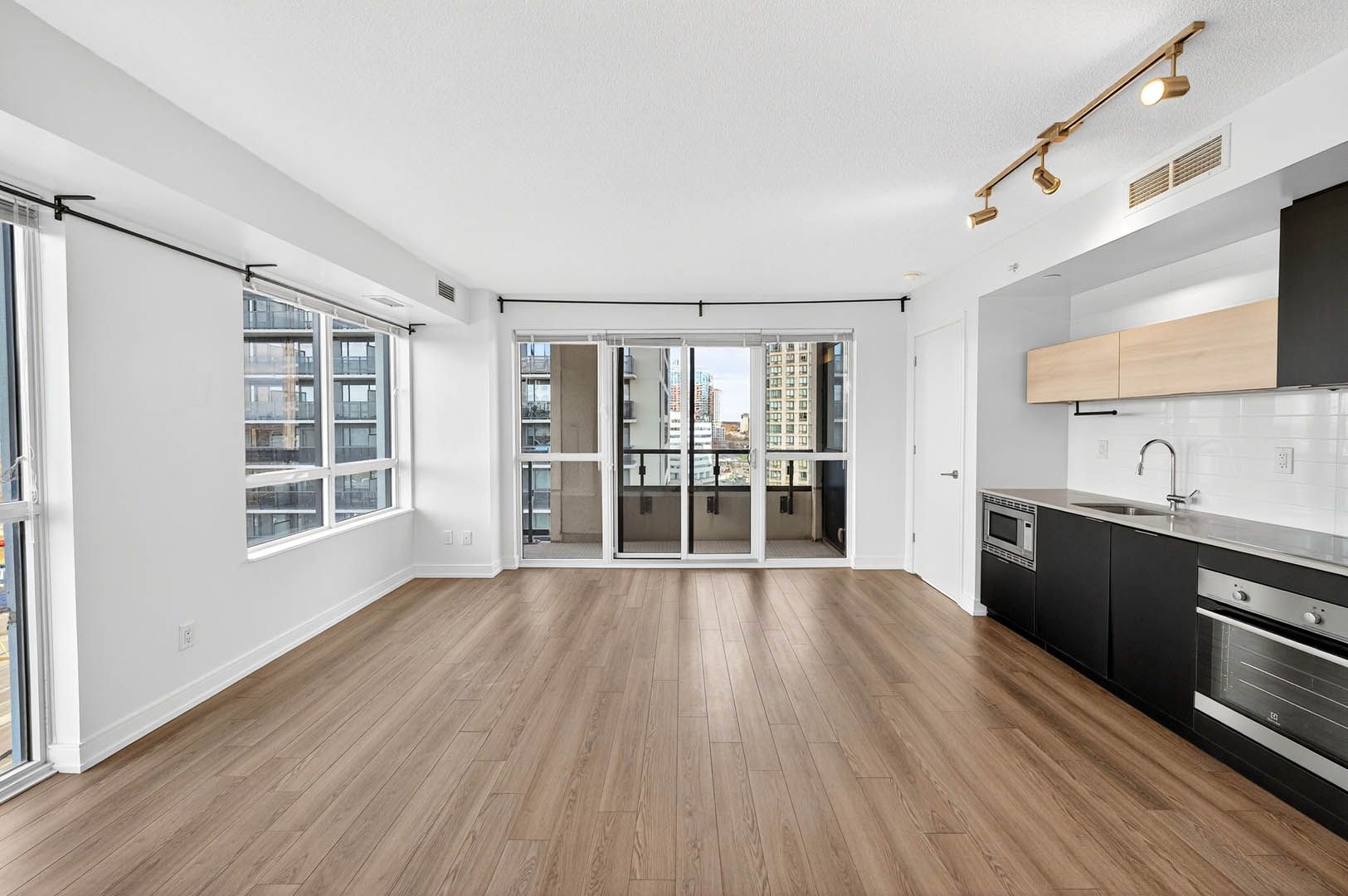 • Bright corner suite with wrap-around windows for a light-filled atmosphere.