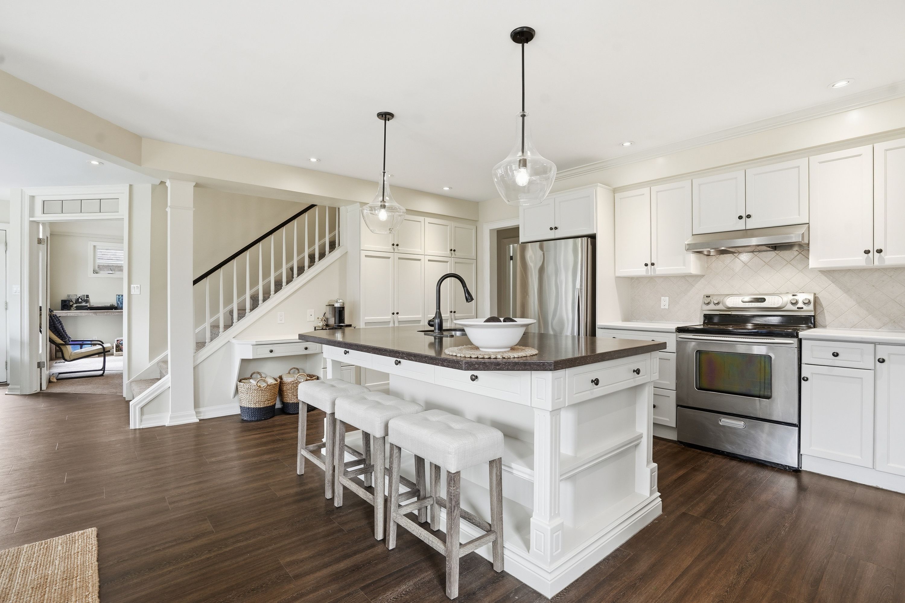 • Functional kitchen with a spacious island and open sightlines to family room.
