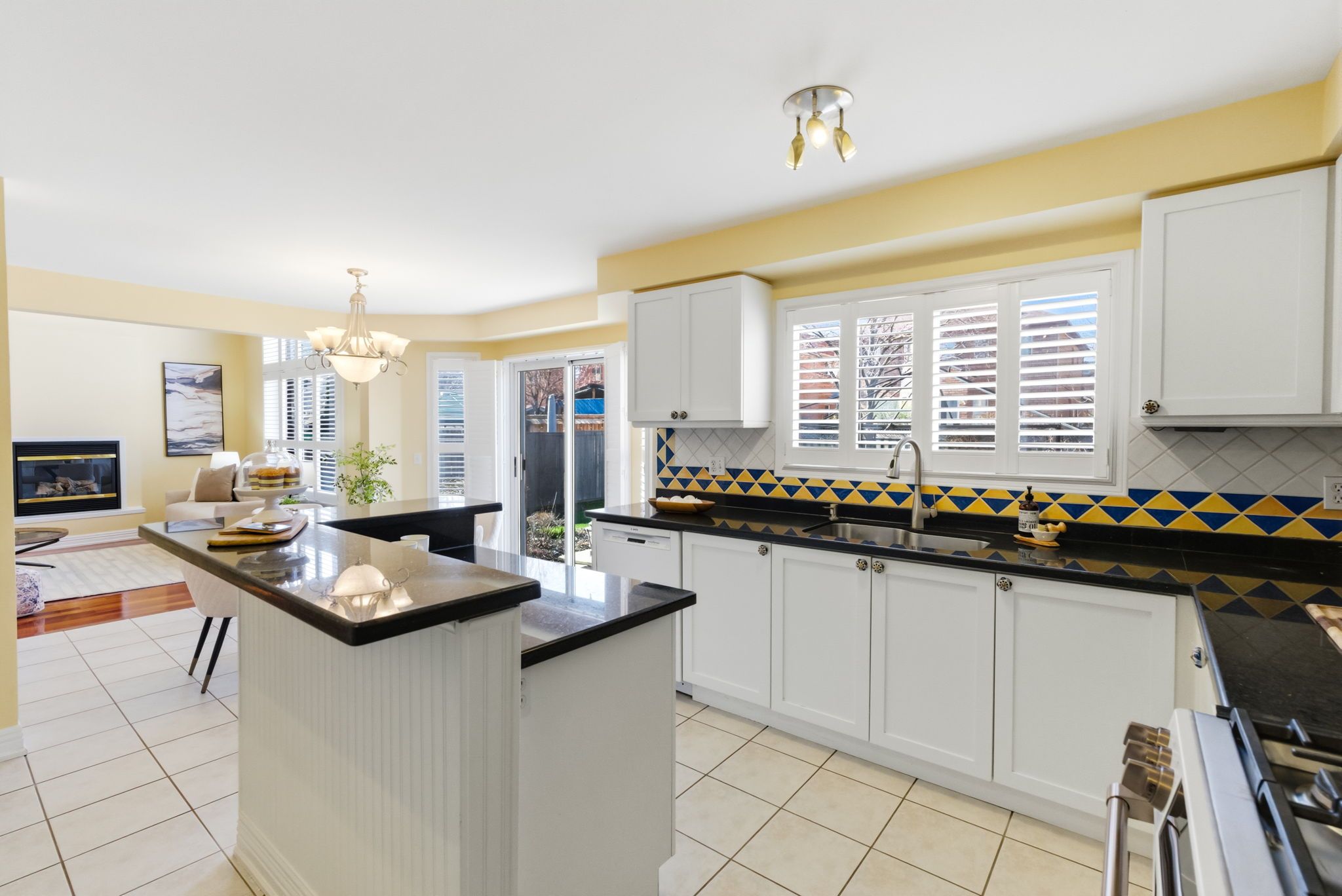 • Well-designed kitchen with a center island and easy patio access.