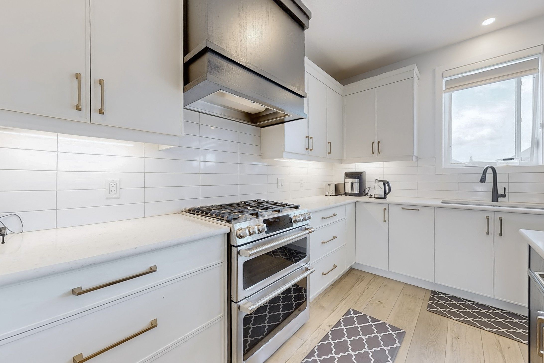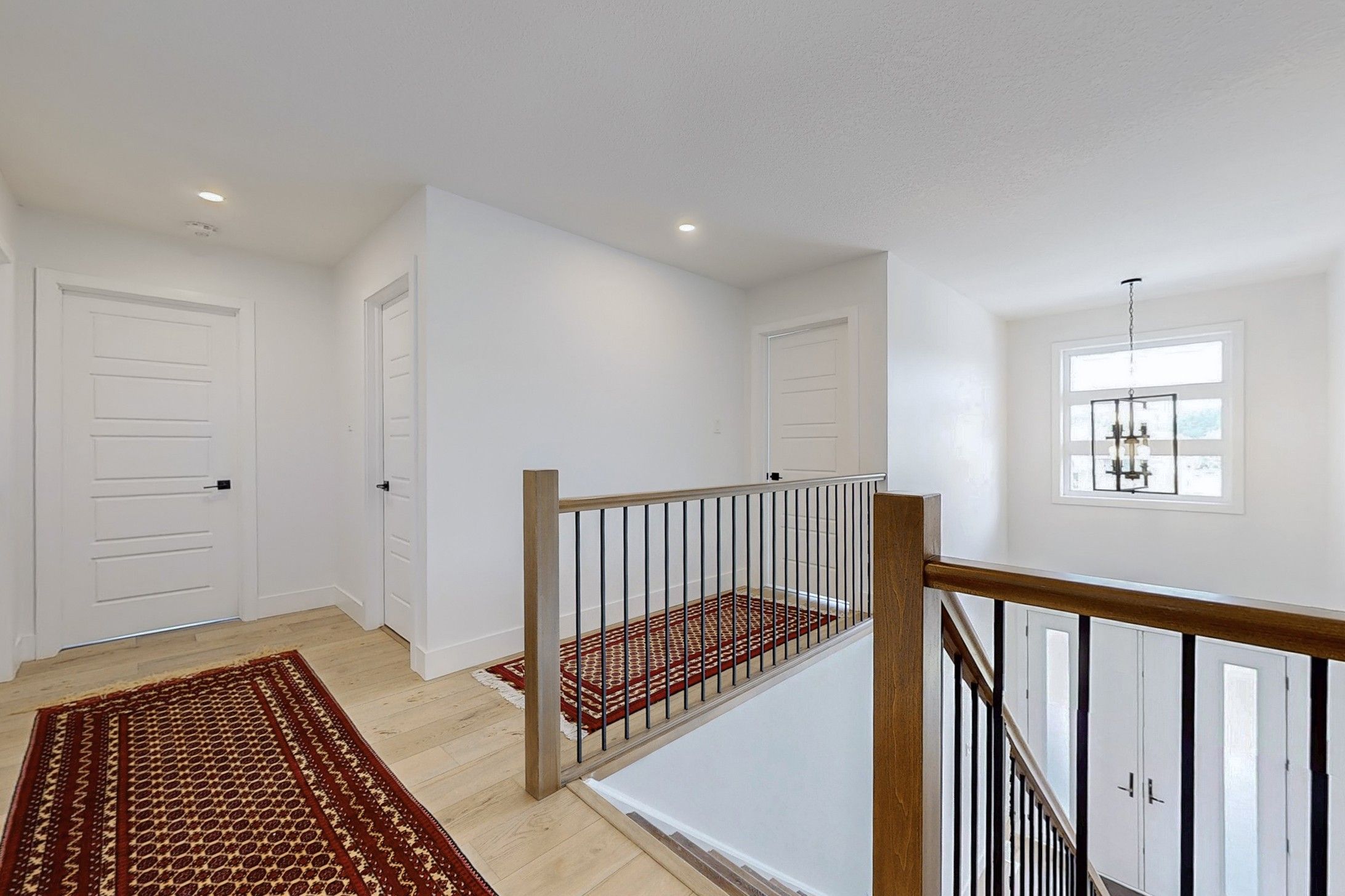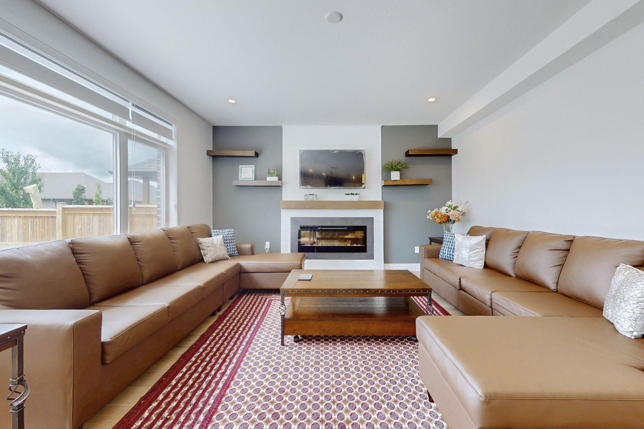 Welcome to your dream home in the sought-after shaw valley community, where luxury meets everyday comfort. This stunning 4+1 bedroom, 4-bathroom home boasts beautiful curb appeal with a blend of brick, wood-tone siding, and stone, along with a charming covered front porch. Inside, enjoy a bright open-concept layout with 9-ft ceilings, recessed lighting, and a stylish living room featuring a shiplap fireplace and floating shelves. The chef-inspired kitchen offers slim shaker cabinetry, a stacked tile backsplash, stainless steel appliances, gas range with custom hood, walk-in pantry, and a large island perfect for entertaining. The finished basement adds exceptional space with a large rec area, wet bar, fireplace, full bath, and 5th bedroom-ideal for guests or extended family. Upstairs features four spacious bedrooms with walk-in closets, including a luxurious primary suite with a spa-like ensuite and custom walk-through closet. A second-floor laundry room adds convenience. Enjoy a private backyard with a spacious lawn, dining area, and storage shed. Located in a family-friendly neighbourhood, this home offers the perfect blend of style, space, and functionality. Book your private showing today!