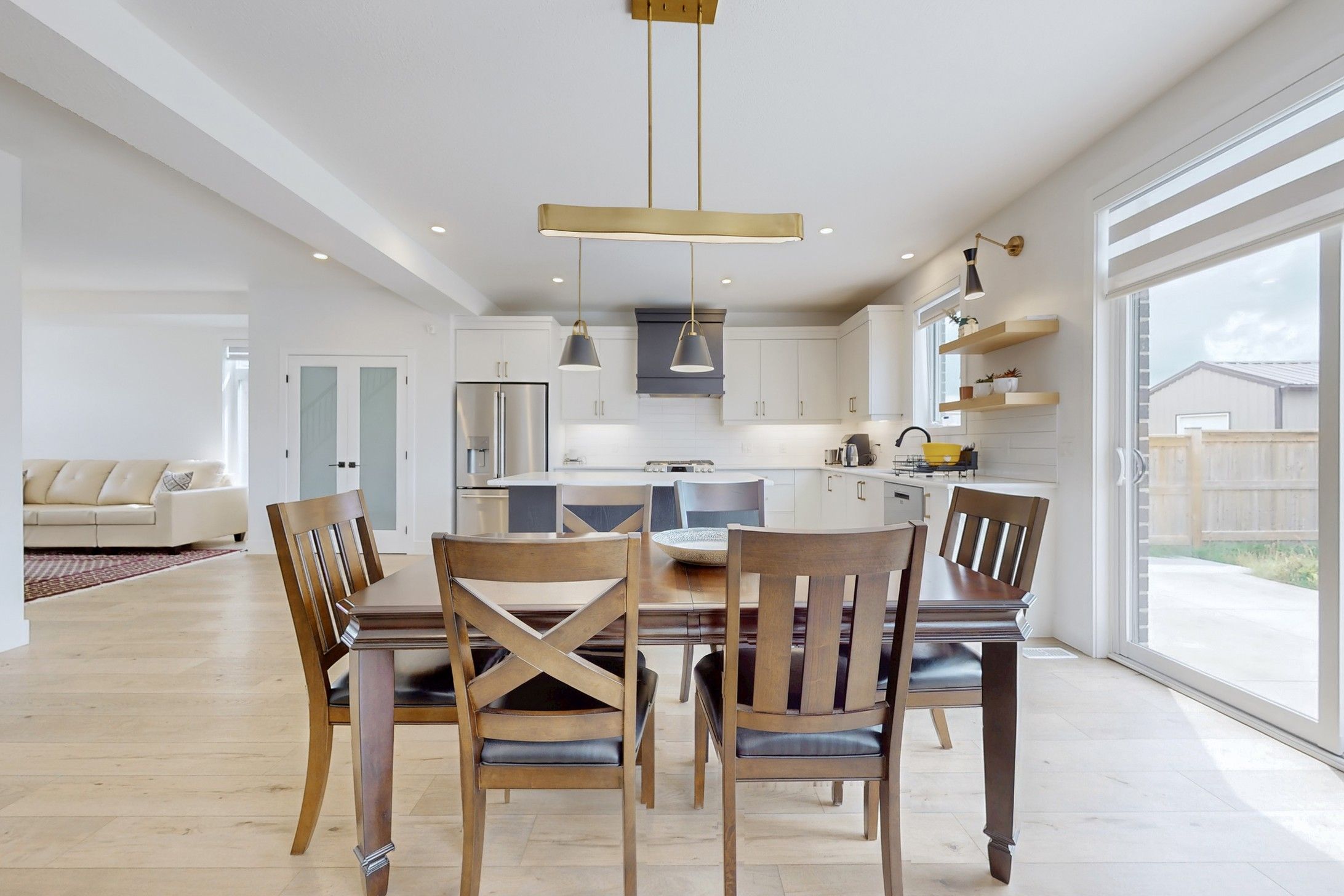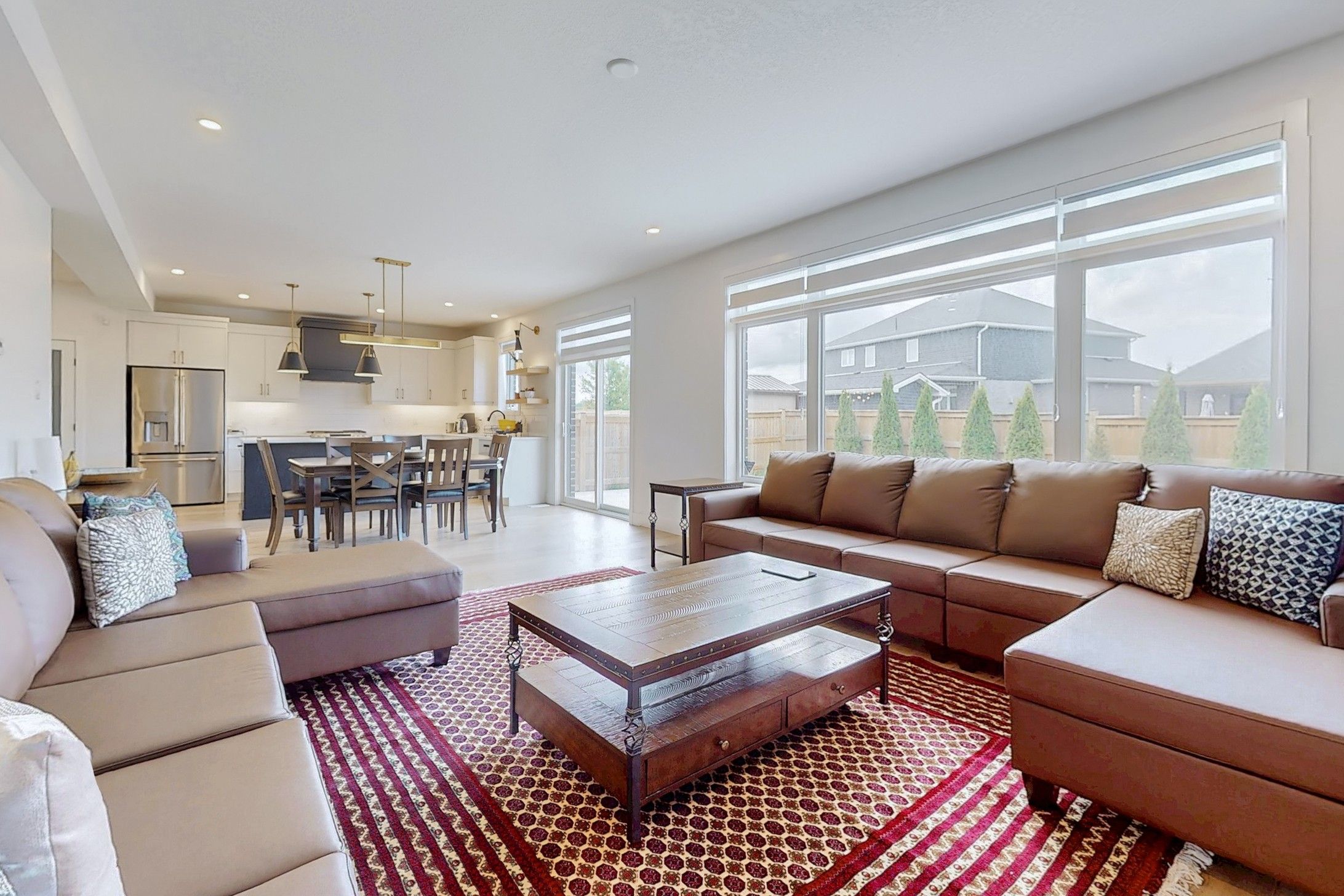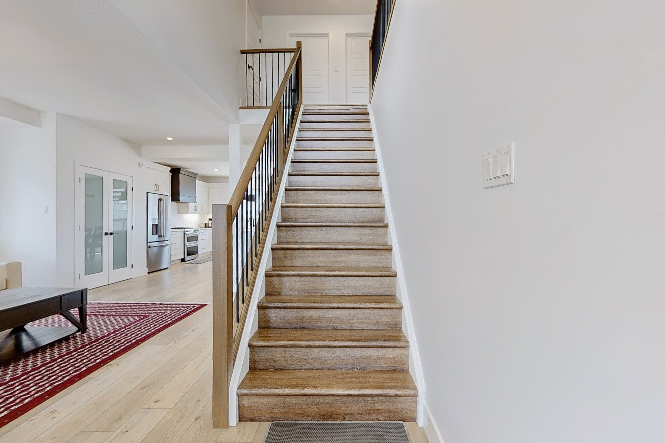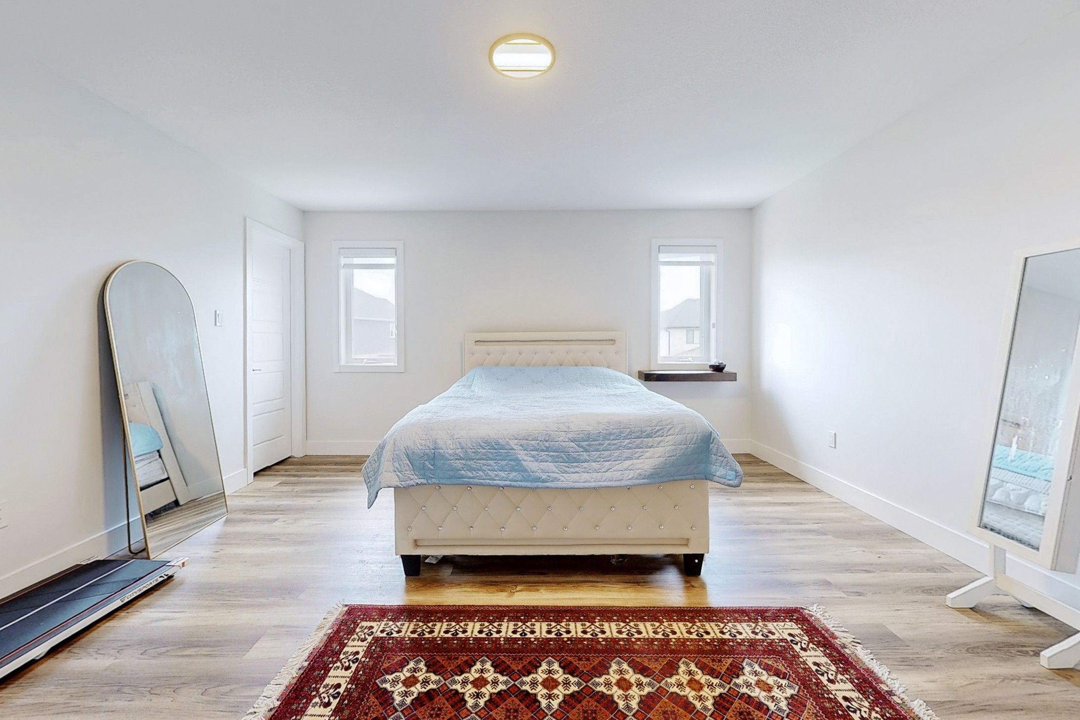 Welcome to your dream home in the sought-after shaw valley community, where luxury meets everyday comfort. This stunning 4+1 bedroom, 4-bathroom home boasts beautiful curb appeal with a blend of brick, wood-tone siding, and stone, along with a charming covered front porch. Inside, enjoy a bright open-concept layout with 9-ft ceilings, recessed lighting, and a stylish living room featuring a shiplap fireplace and floating shelves. The chef-inspired kitchen offers slim shaker cabinetry, a stacked tile backsplash, stainless steel appliances, gas range with custom hood, walk-in pantry, and a large island perfect for entertaining. The finished basement adds exceptional space with a large rec area, wet bar, fireplace, full bath, and 5th bedroom-ideal for guests or extended family. Upstairs features four spacious bedrooms with walk-in closets, including a luxurious primary suite with a spa-like ensuite and custom walk-through closet. A second-floor laundry room adds convenience. Enjoy a private backyard with a spacious lawn, dining area, and storage shed. Located in a family-friendly neighbourhood, this home offers the perfect blend of style, space, and functionality. Book your private showing today!