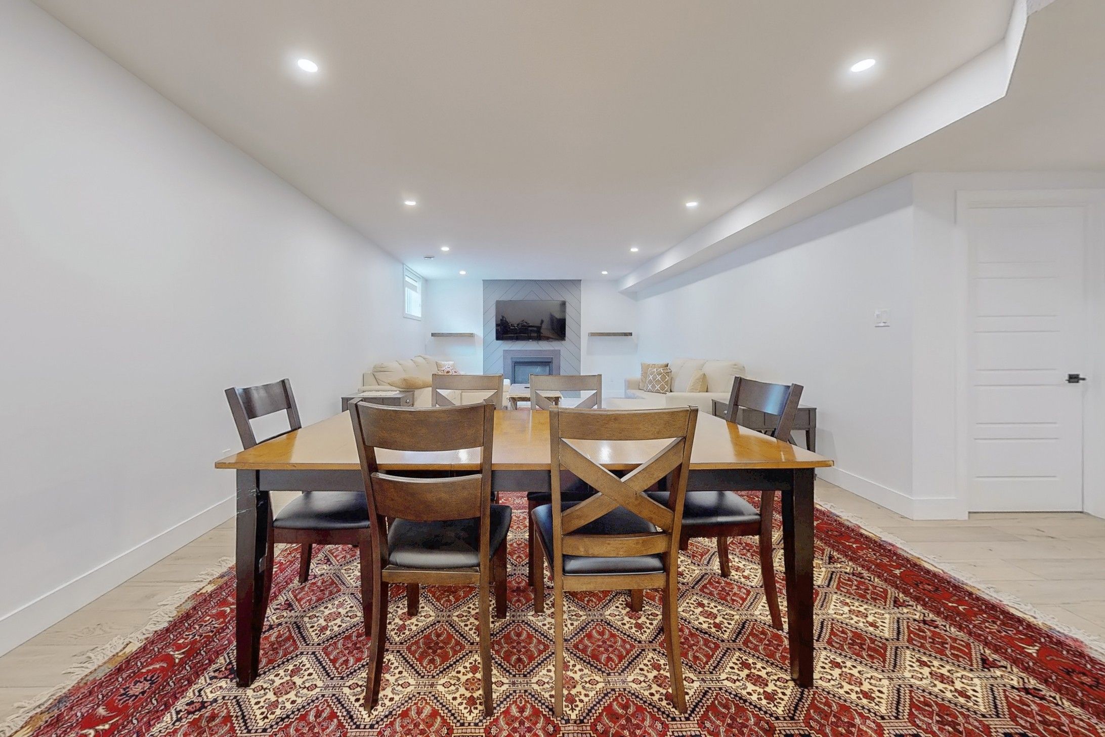 • Finished basement featuring a rec area, wet bar, and 5th bedroom.