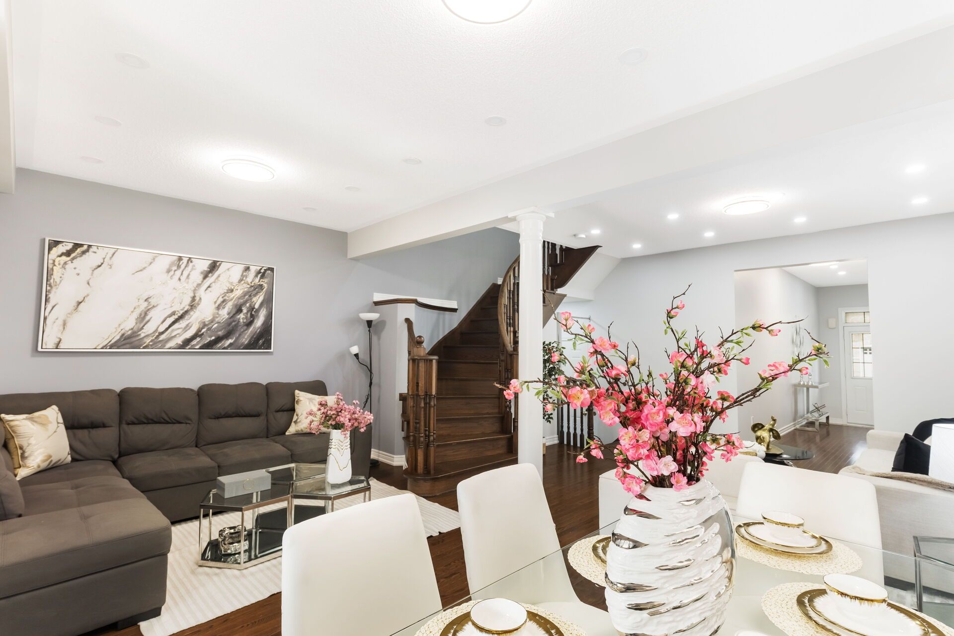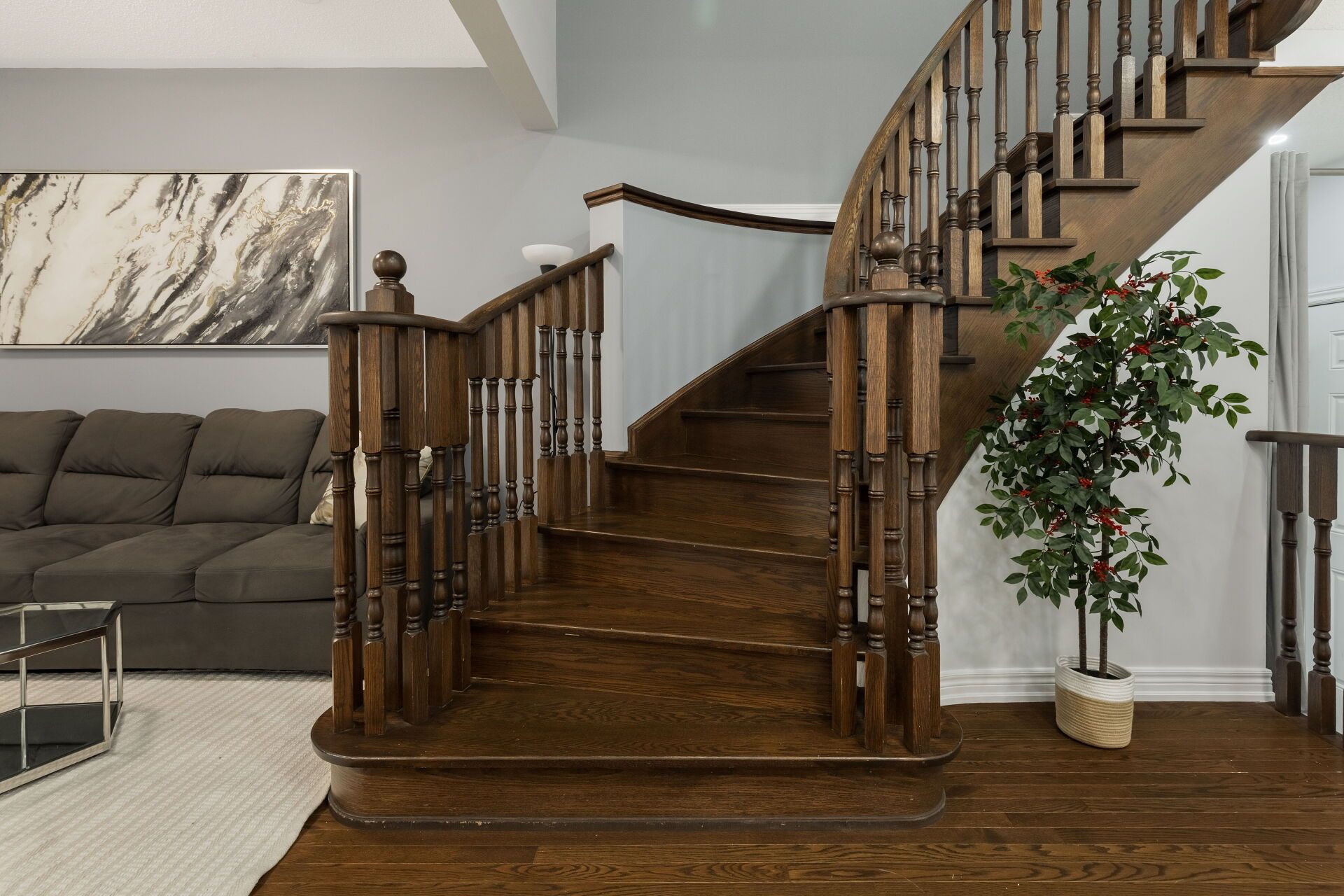 • Totally carpet-free main floor with hardwood floors and 9-foot ceilings.