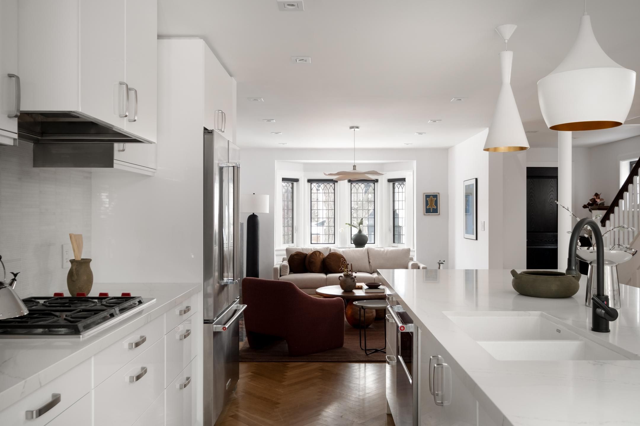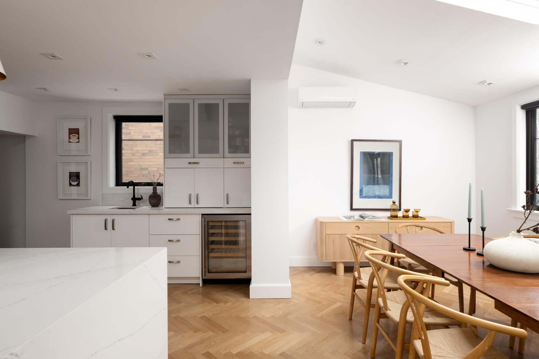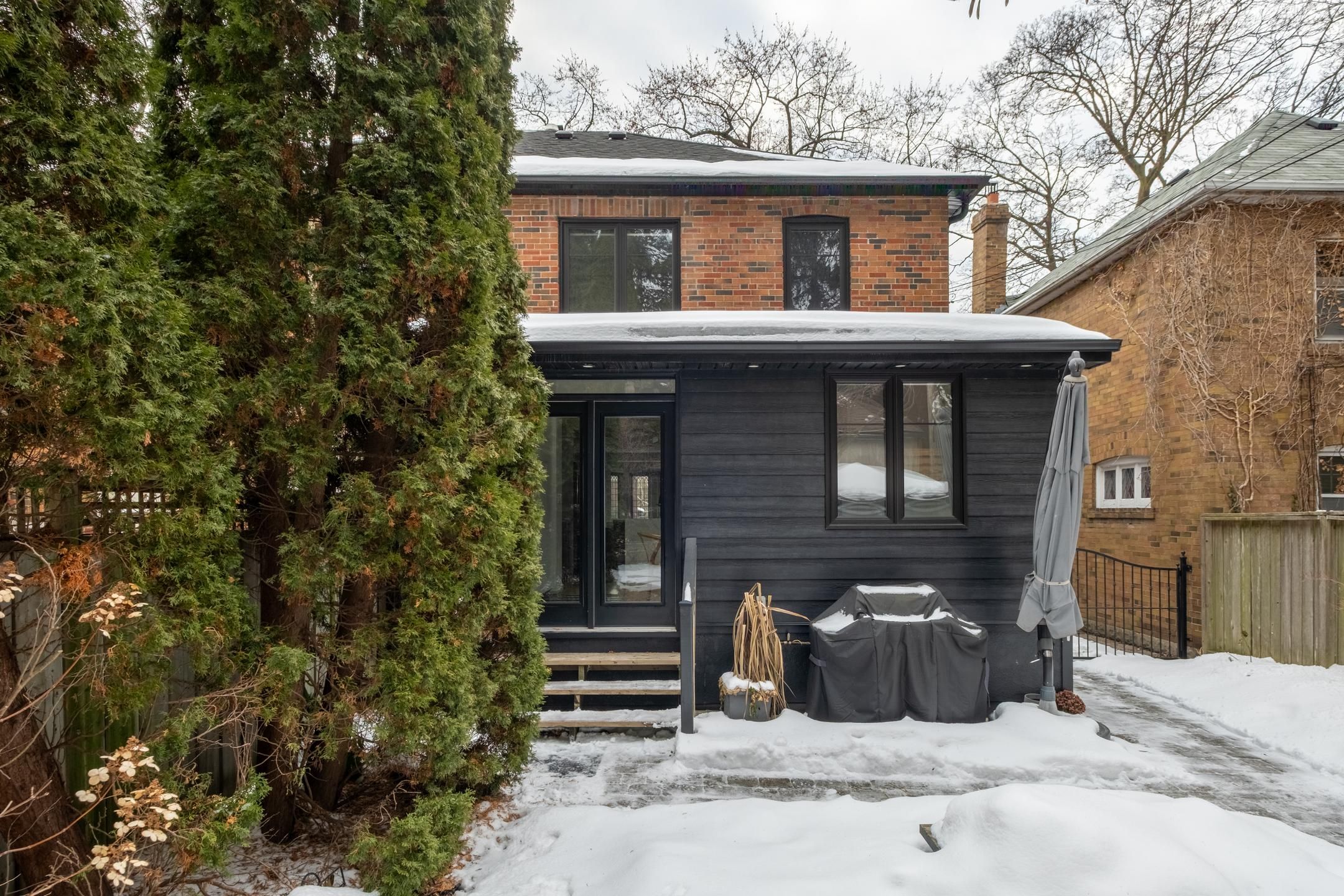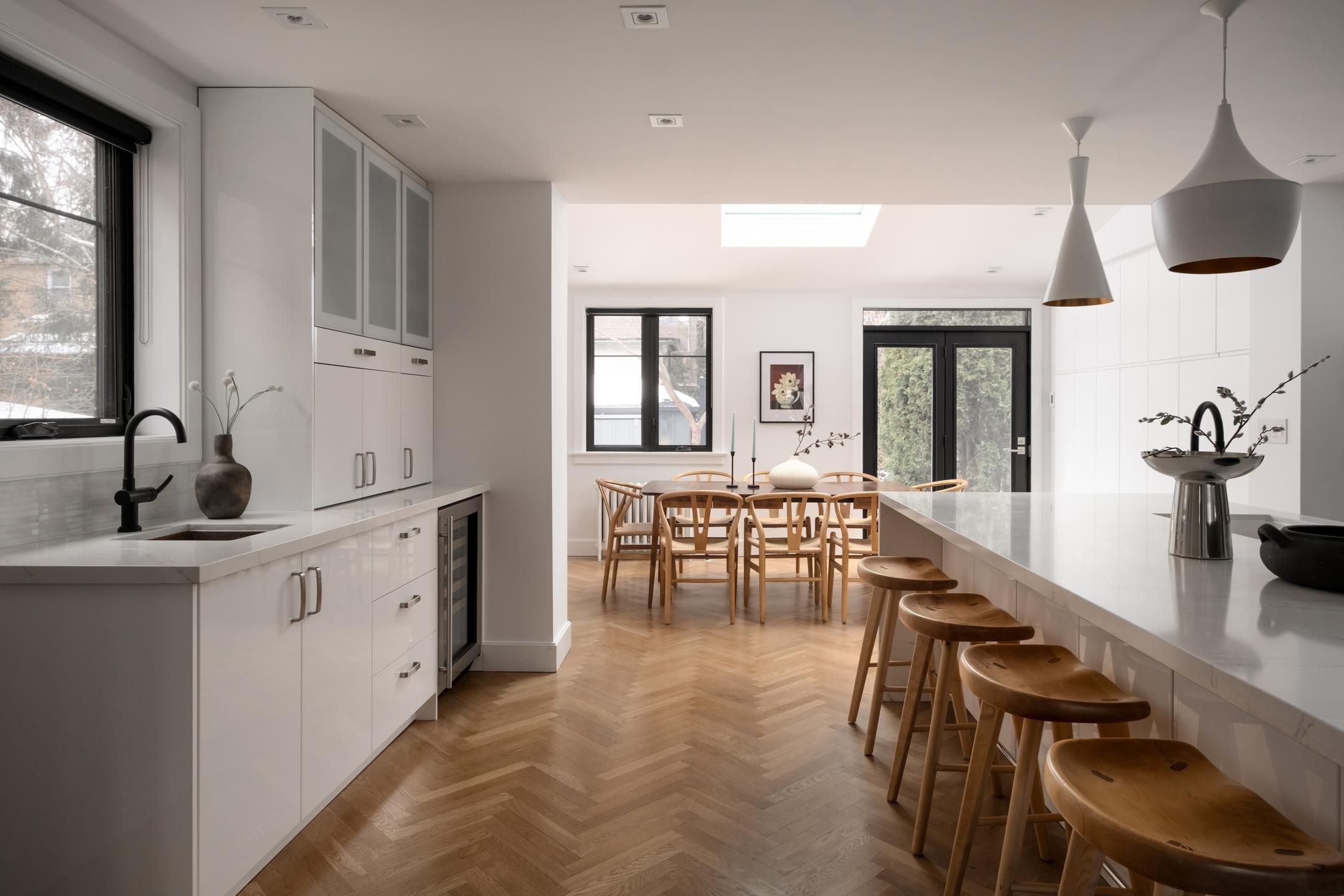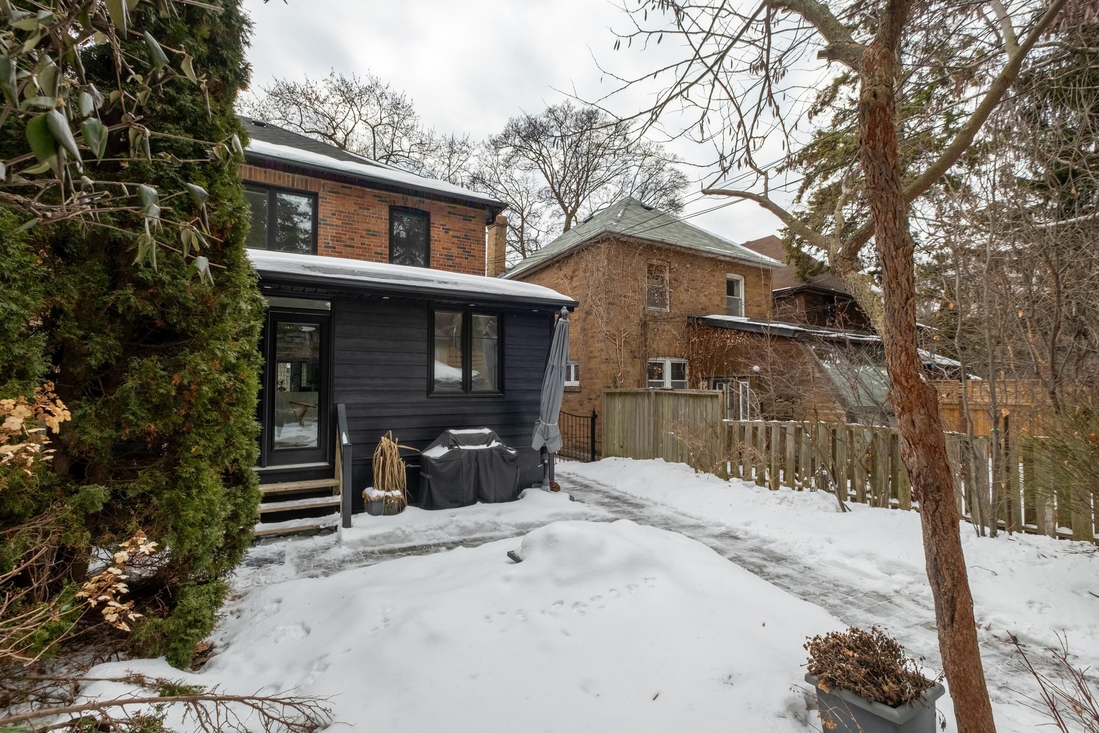 Vibey verbena! Fully rebuilt in 2017 and taken right down to the studs, this is the kind of home that quietly flexes. Exceptionally wide for a semi and fully soundproofed and insulated, it lives more like a detached - bright, composed, and beautifully considered from every angle. The main floor sets the tone: 9' ceilings, solid white oak herringbone flooring, and a custom grigio carnico marble fireplace anchoring the space with understated drama. Expansive windows and a 4' square skylight pull natural light deep into the home, creating that rare balance of gallery-modern and heritage warmth. A kitchen designed to perform, featuring a 10' quartz waterfall island, premium wolf cooktop, full kitchenaid appliance suite, u-line wine fridge, and a bespoke entertainment bar with imported copper sink make hosting effortless - whether it's espresso at sunrise or wine after dark. The second floor continues the elevated feel with plank white oak floors, heated italian porcelain bathroom floors, heated towel racks, and curated lighting moments - including a george nelson saucer lamp that feels like functional art. Every detail was considered, including the unsexy upgrades that make everyday living exceptional: new plumbing, widened city water line, new wiring, insulation between walls and floors for sound separation, and an owned furnace and water heater. Outside, the extra-wide lot delivers a lush, professionally landscaped backyard oasis with fieldstone patio, natural gas bbq hookup, led eaves lighting, locking iron gate, and a south-facing 3-car private drive pre-wired for ev charging. Set within coveted swansea and steps to bloor west village, jane subway, old mill ravine and top-rated schools, this is turnkey living with architectural integrity and modern ease. Stripped back. Built bold. Move-in ready. 20 verbena isn't just renovated - it's reimagined.