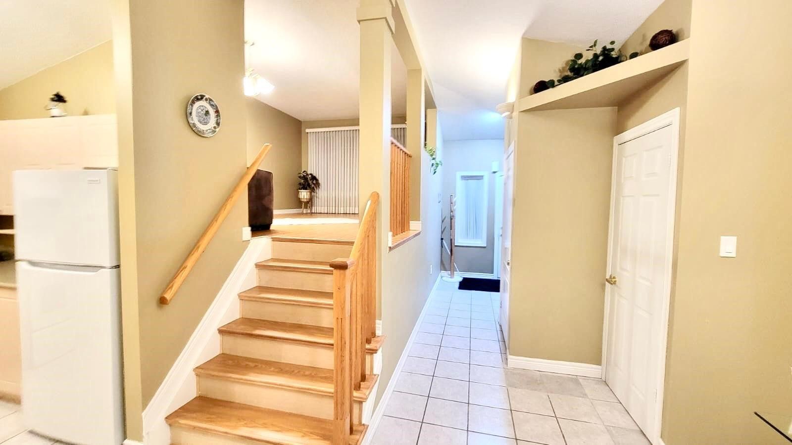 Beautifully maintained and spotless 3rd bdrs 2 washrooms house located in safe family oriented area on the private court. Large master bedroom with 2pc ensuite and w/i closet. Spacious kitchen, open concept, huge living room, fenced backyard. Spacious drive way and build in 1. 5 garage. Upper level lease includes 2 parking spots: one in the garage and one on the drive way.