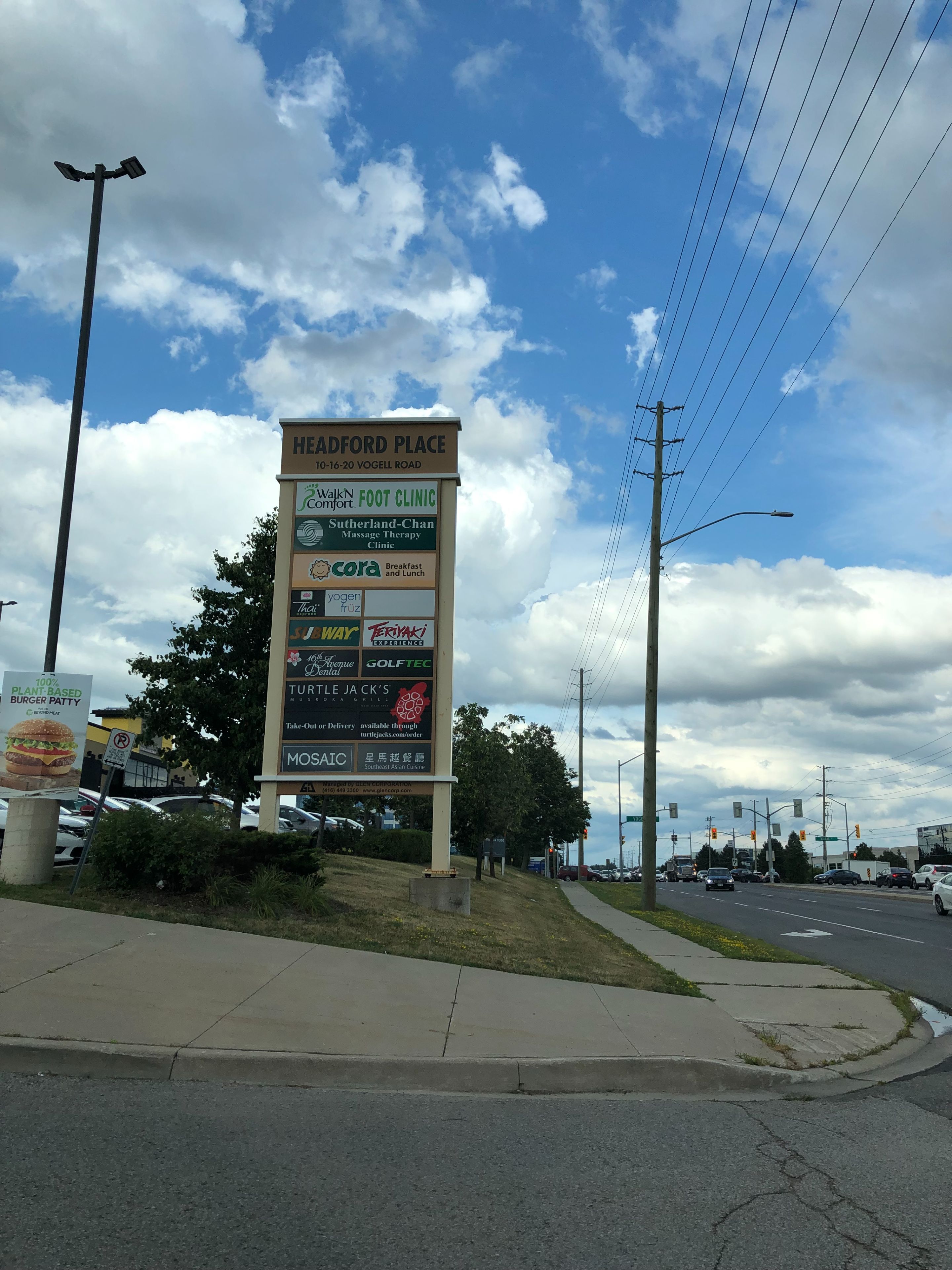 Unit with attractive shell ready for buildout, leaseholds & finishes in a busy plaza facing 16th avenue steps hwy to hwy 404. Other tenants: restaurants tim hortons, orient bistro, medical. Good natural light, parking and visibility. May suit medical, professional services, learning schools, professional offices (law firm, real estate brokerage, insurance/ tax/travel agency).