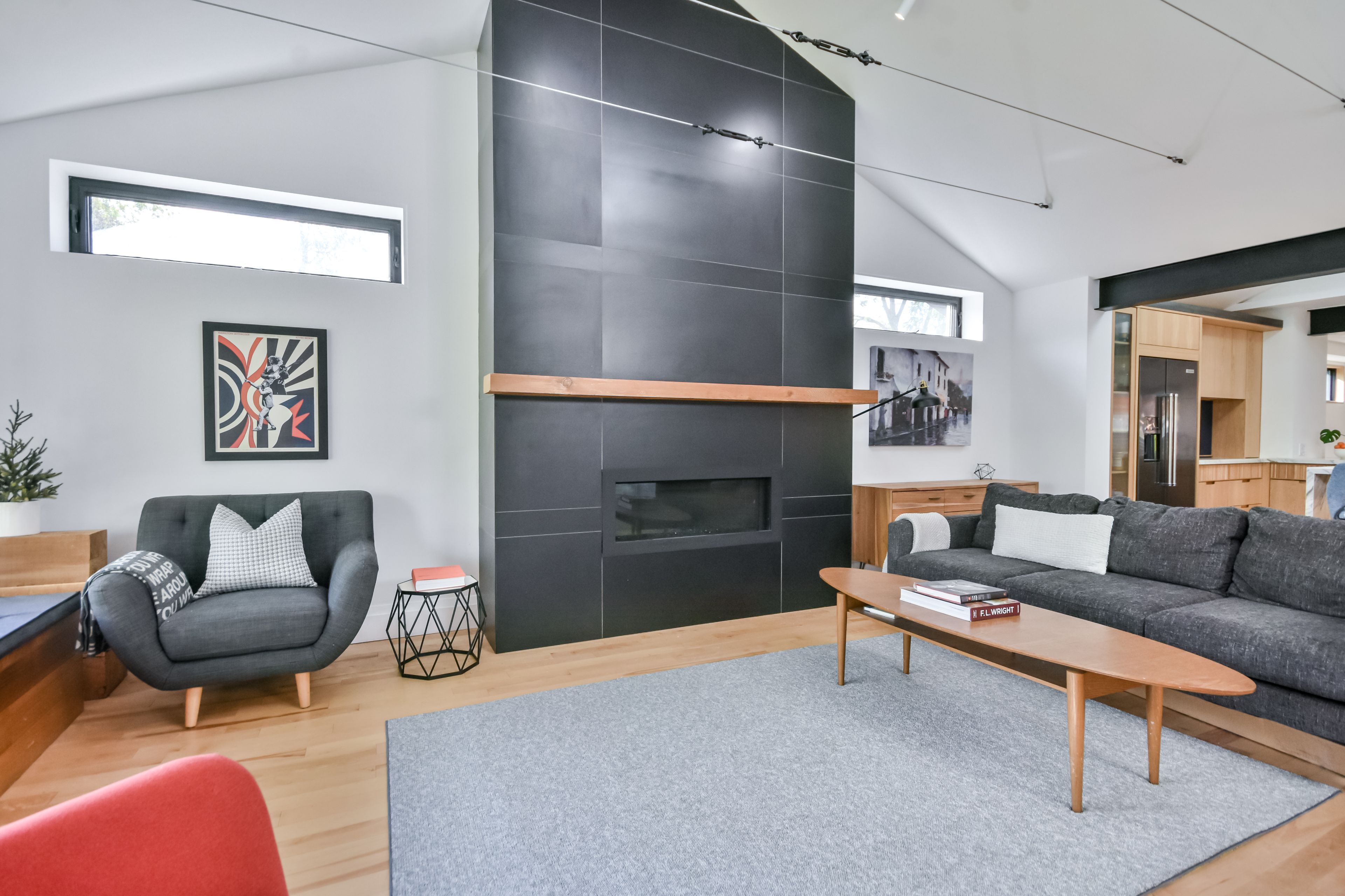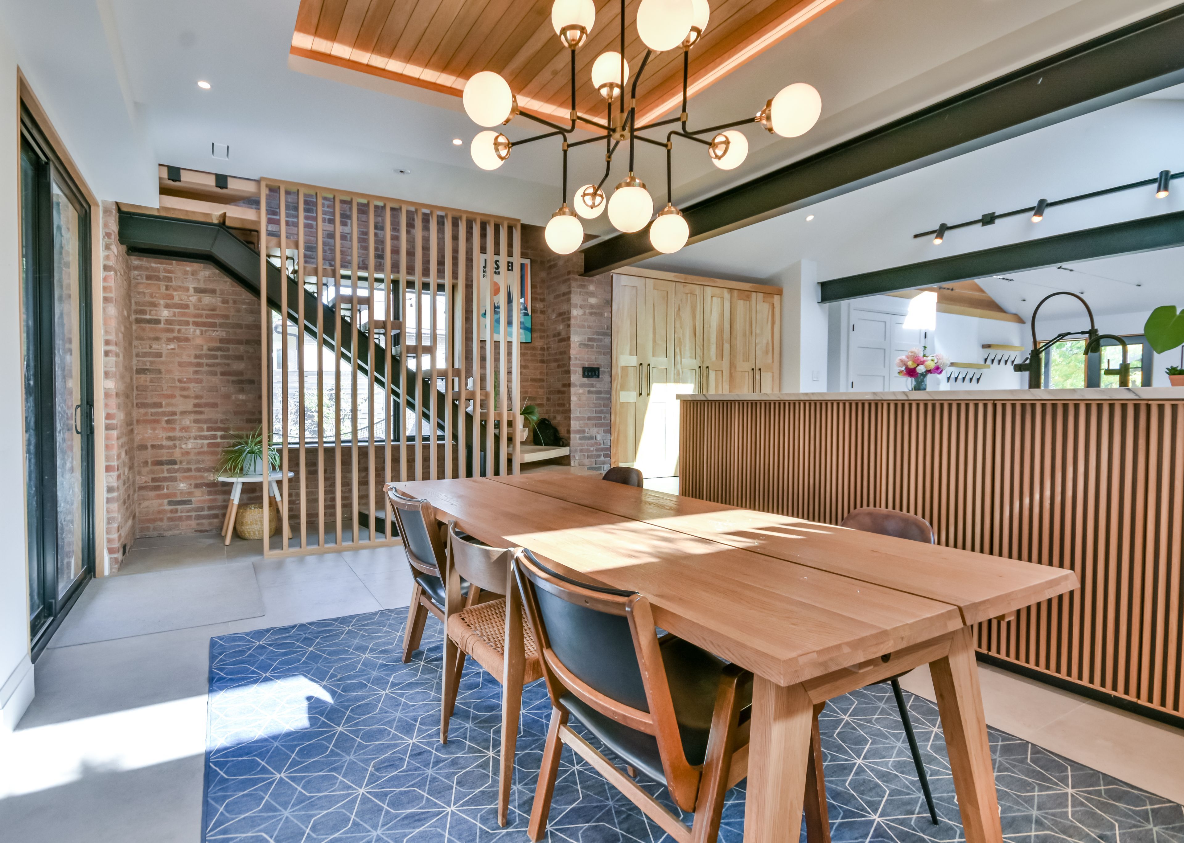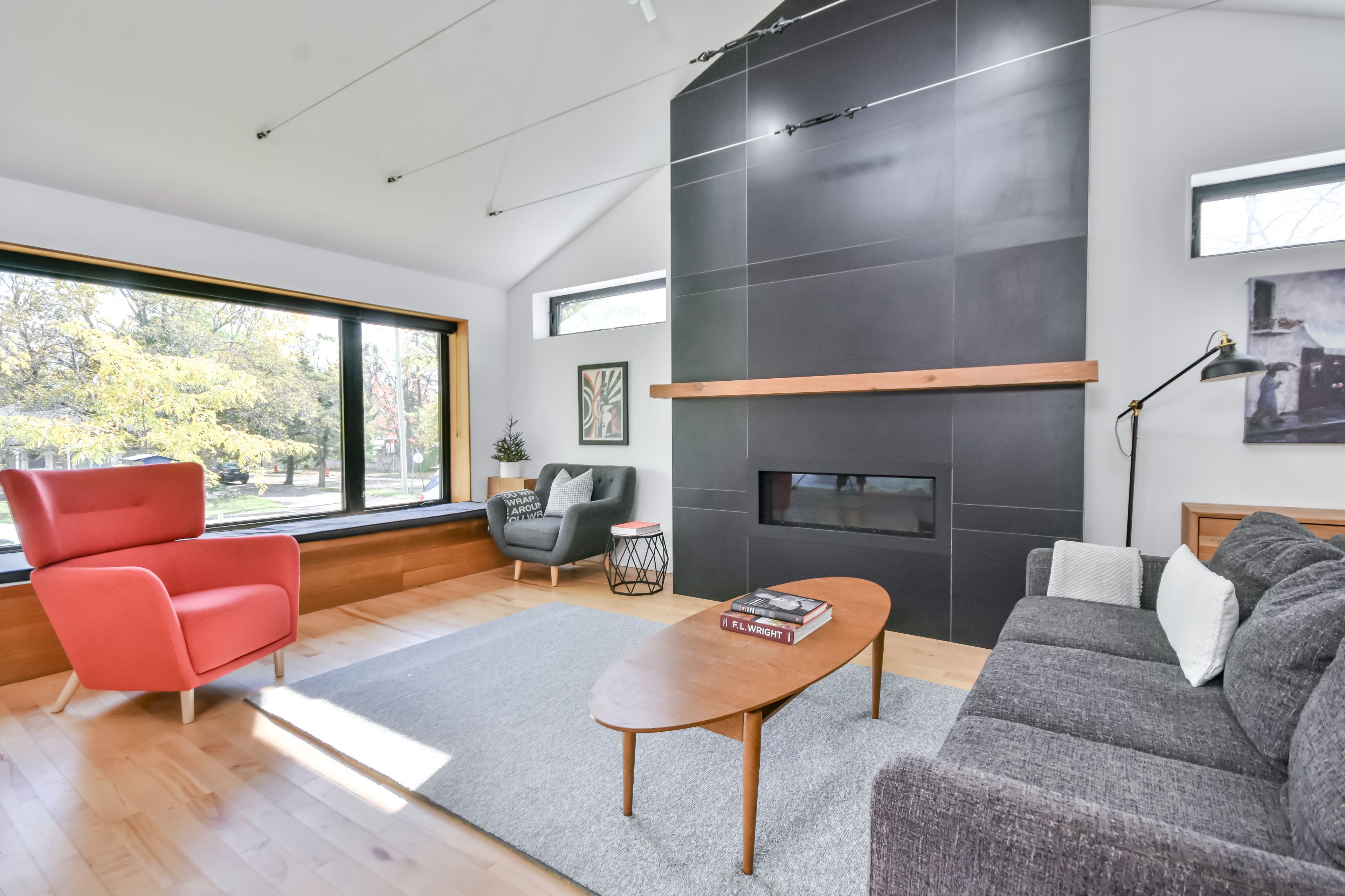 Stunning mid-century modern masterpiece, fully renovated in prestigious east end. Prepare to be impressed by the flawless execution of high end building. This home has been reimagined with a dramatic 3-storey addition creating a one-of-kind living experience that blends sophisticated, midcentury modern flair with state-of-the art comfort. From the soaring ceilings to the spa-inspired ensuite, every detail has been meticulously curated. Discover unique touches like statement brick wall and sophisticated covered low-slope front entry that enhances the homes curb appeal. Featuring dramatic, sun-drenched, open concept, great room with awe inspired aircraft cables and vaulted ceiling gives a sense of volume. The cupola and skylight bathe the area in natural light, highlighting the custom fluted cabinetry of the new designer kitchen and stylish slat wall feature. A true centerpiece, with gorgeous waterfall countertops and ample storage perfect for daily life and grand-scale entertaining. Ascend to your private oasis the master suite features a custom-built king size bed frame and is flooded with light from oversized windows. The lower level spa-like bathroom is a revelation, complete with luxurious stone finishes, soaker tub, custom vanity, steam shower and heated flooring. Enjoy beautiful warm days and cozy evenings on the heated, covered porch, overlooking a spacious backyard adorned with mature trees- a perfect setting for entertaining. Rest easy with a complete suite of new mechanicals, incl: new furnace, a/c, a ducted mini split for optimal climate control. The envelope is fortified with rigid interior insulation, delta wrap water proofing, insulated foundation, new sump pump, and new municipal sewer line, ensuring efficiency and peace of mind for years to come. A rare opportunity to own a bespoke architectural gem. Book your private viewing today. Owner is licensed realtor.