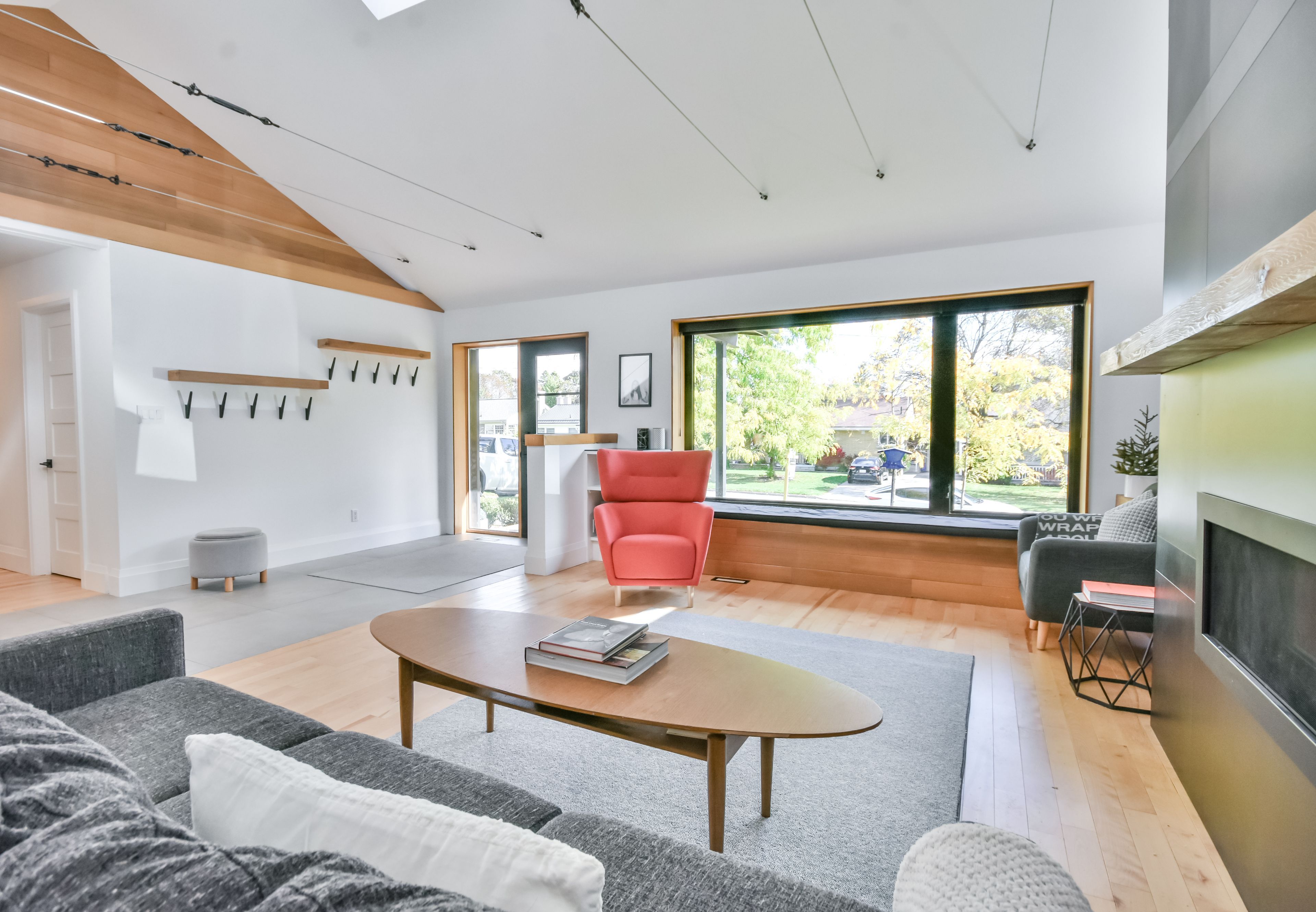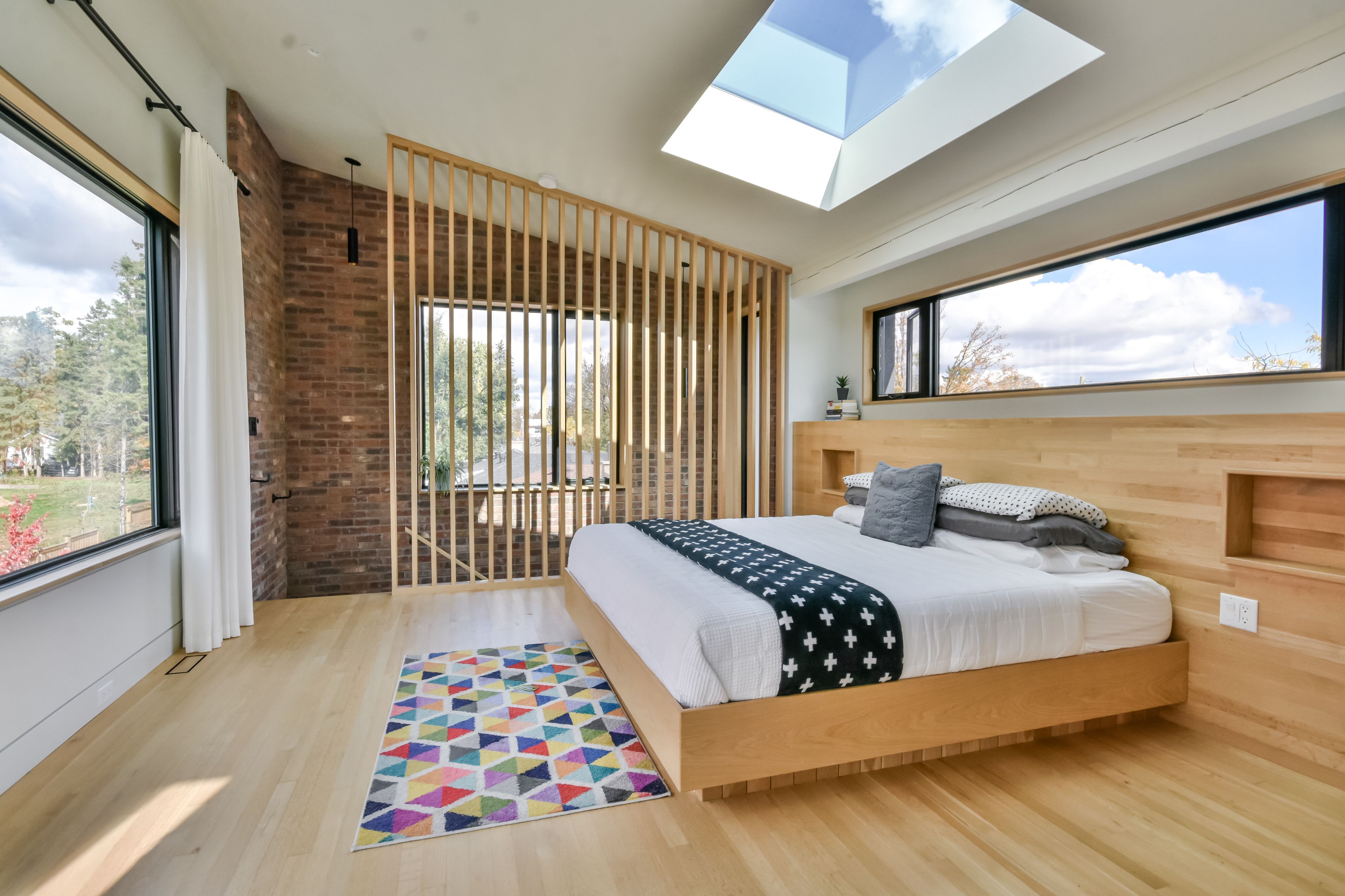 Stunning mid-century modern masterpiece, fully renovated in prestigious east end. Prepare to be impressed by the flawless execution of high end building. This home has been reimagined with a dramatic 3-storey addition creating a one-of-kind living experience that blends sophisticated, midcentury modern flair with state-of-the art comfort. From the soaring ceilings to the spa-inspired ensuite, every detail has been meticulously curated. Discover unique touches like statement brick wall and sophisticated covered low-slope front entry that enhances the homes curb appeal. Featuring dramatic, sun-drenched, open concept, great room with awe inspired aircraft cables and vaulted ceiling gives a sense of volume. The cupola and skylight bathe the area in natural light, highlighting the custom fluted cabinetry of the new designer kitchen and stylish slat wall feature. A true centerpiece, with gorgeous waterfall countertops and ample storage perfect for daily life and grand-scale entertaining. Ascend to your private oasis the master suite features a custom-built king size bed frame and is flooded with light from oversized windows. The lower level spa-like bathroom is a revelation, complete with luxurious stone finishes, soaker tub, custom vanity, steam shower and heated flooring. Enjoy beautiful warm days and cozy evenings on the heated, covered porch, overlooking a spacious backyard adorned with mature trees- a perfect setting for entertaining. Rest easy with a complete suite of new mechanicals, incl: new furnace, a/c, a ducted mini split for optimal climate control. The envelope is fortified with rigid interior insulation, delta wrap water proofing, insulated foundation, new sump pump, and new municipal sewer line, ensuring efficiency and peace of mind for years to come. A rare opportunity to own a bespoke architectural gem. Book your private viewing today. Owner is licensed realtor.