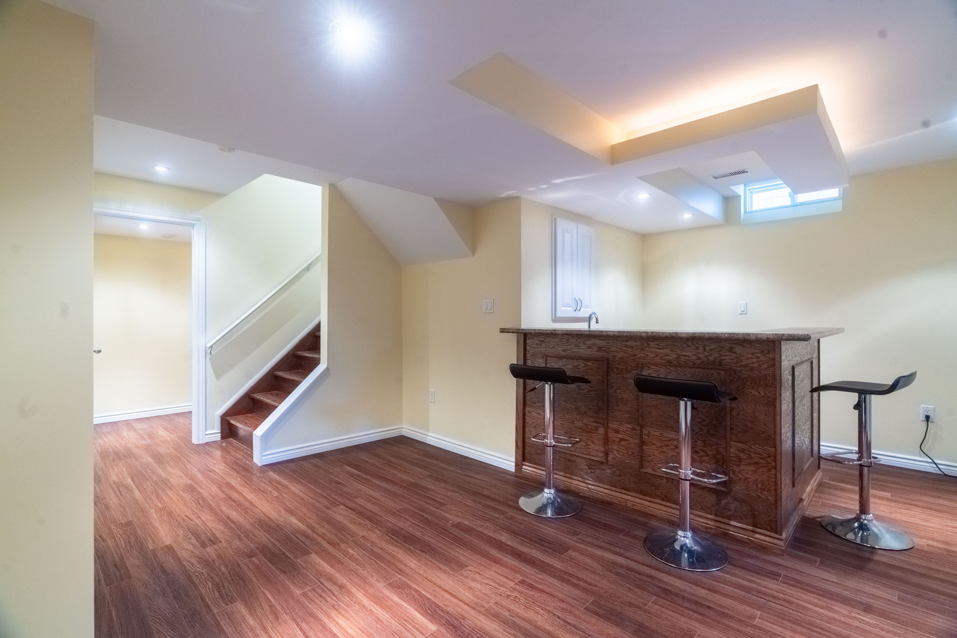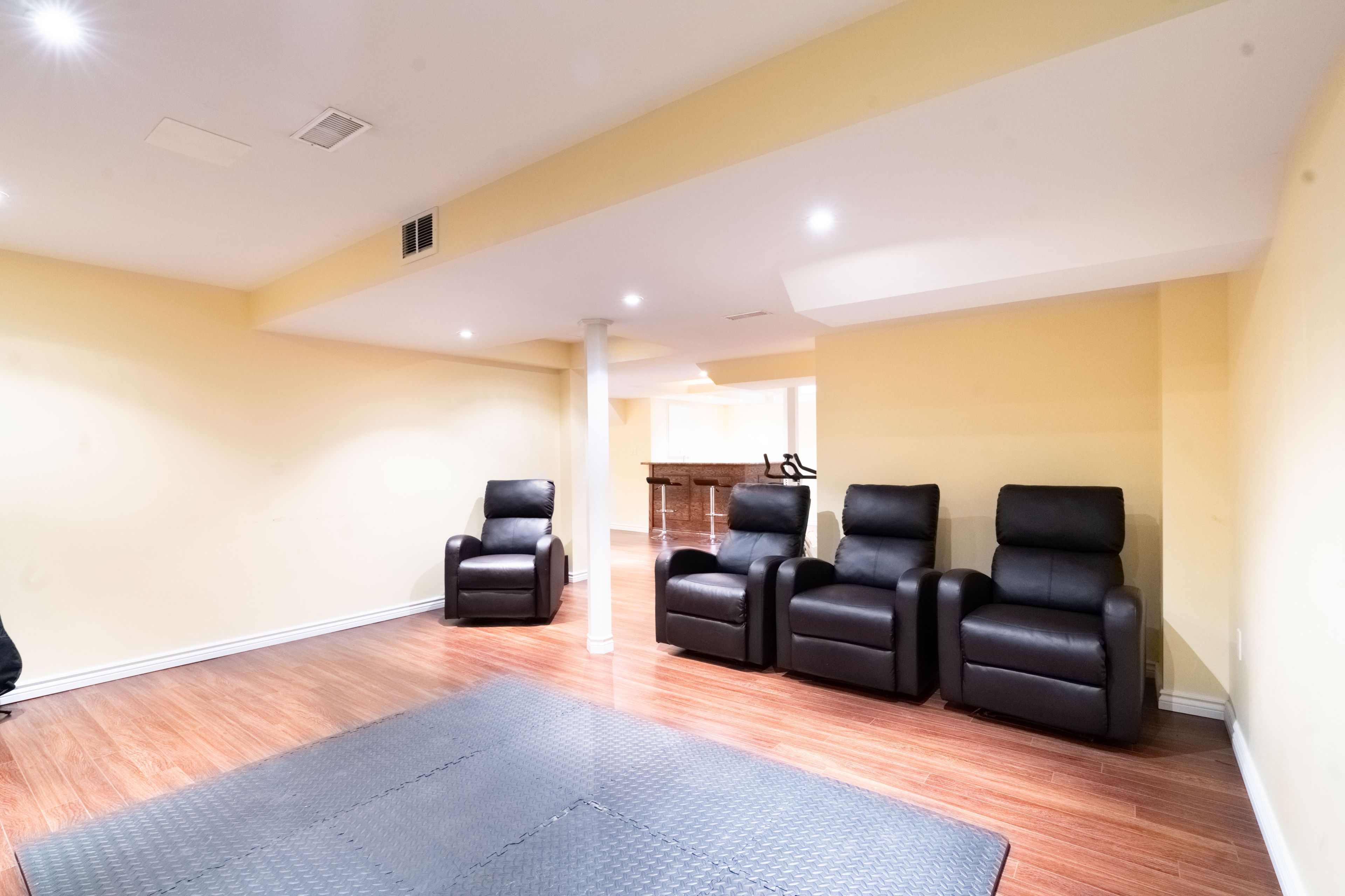 • Finished basement with bar, theatre room, and additional bedroom.
