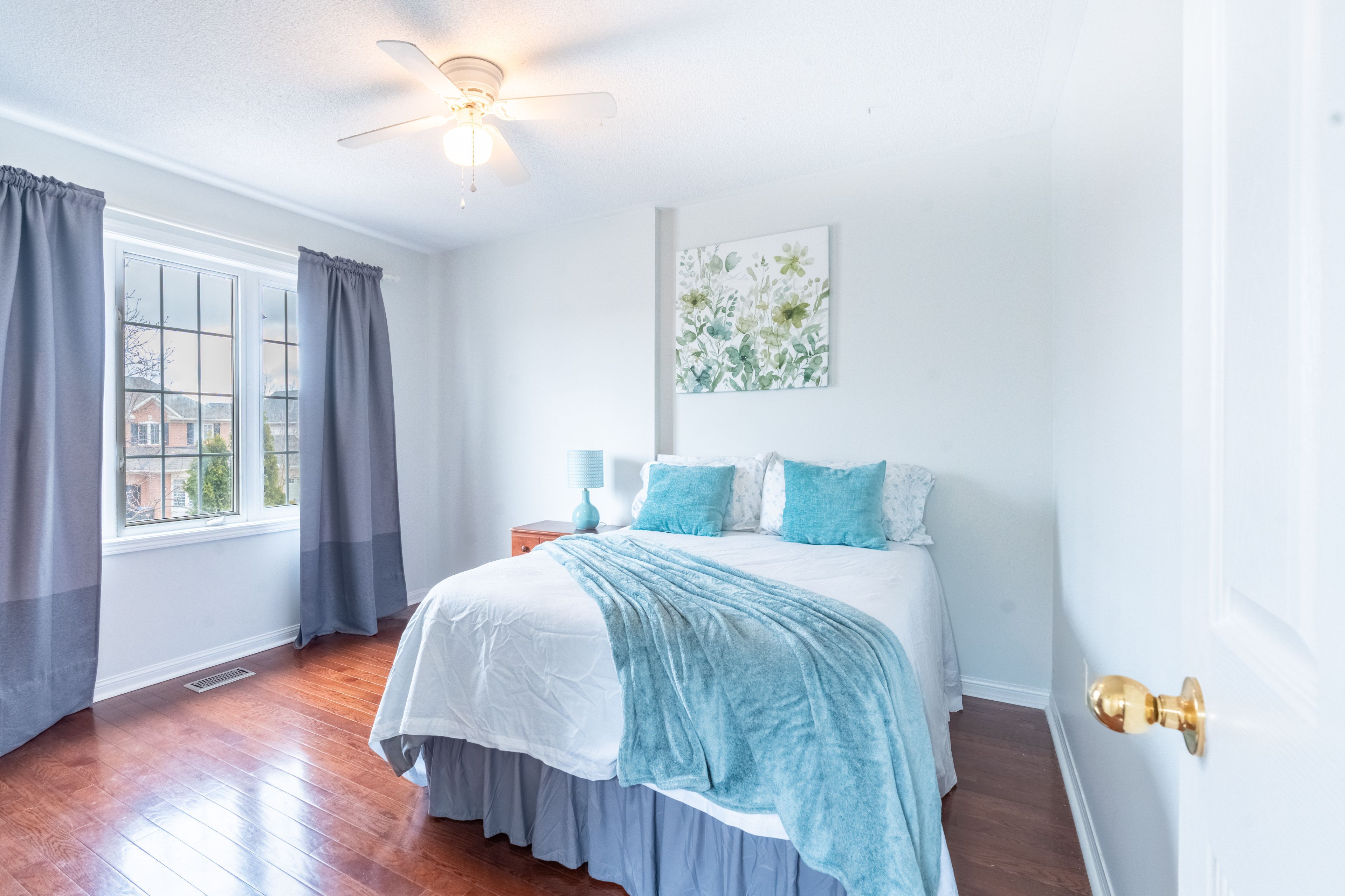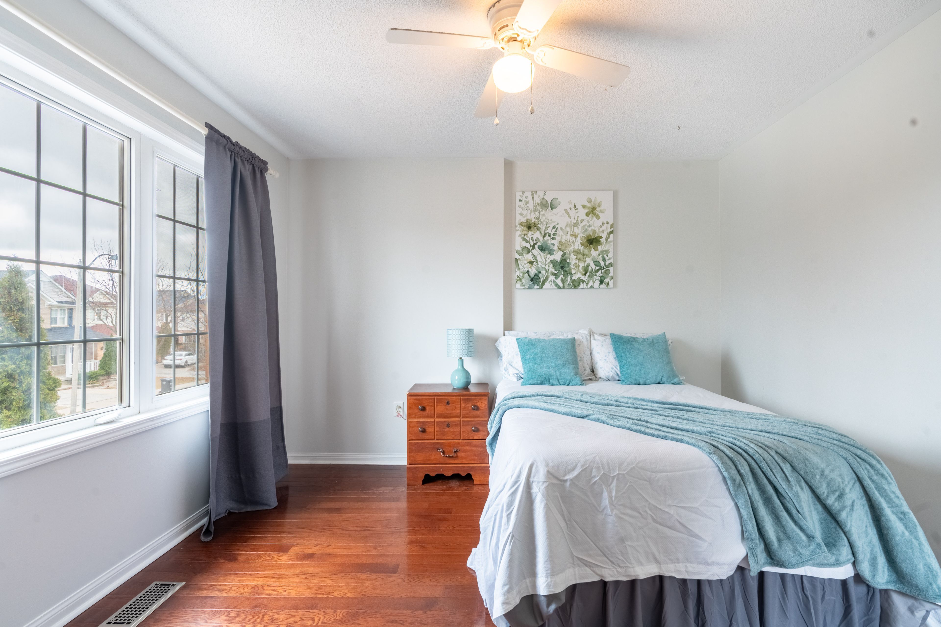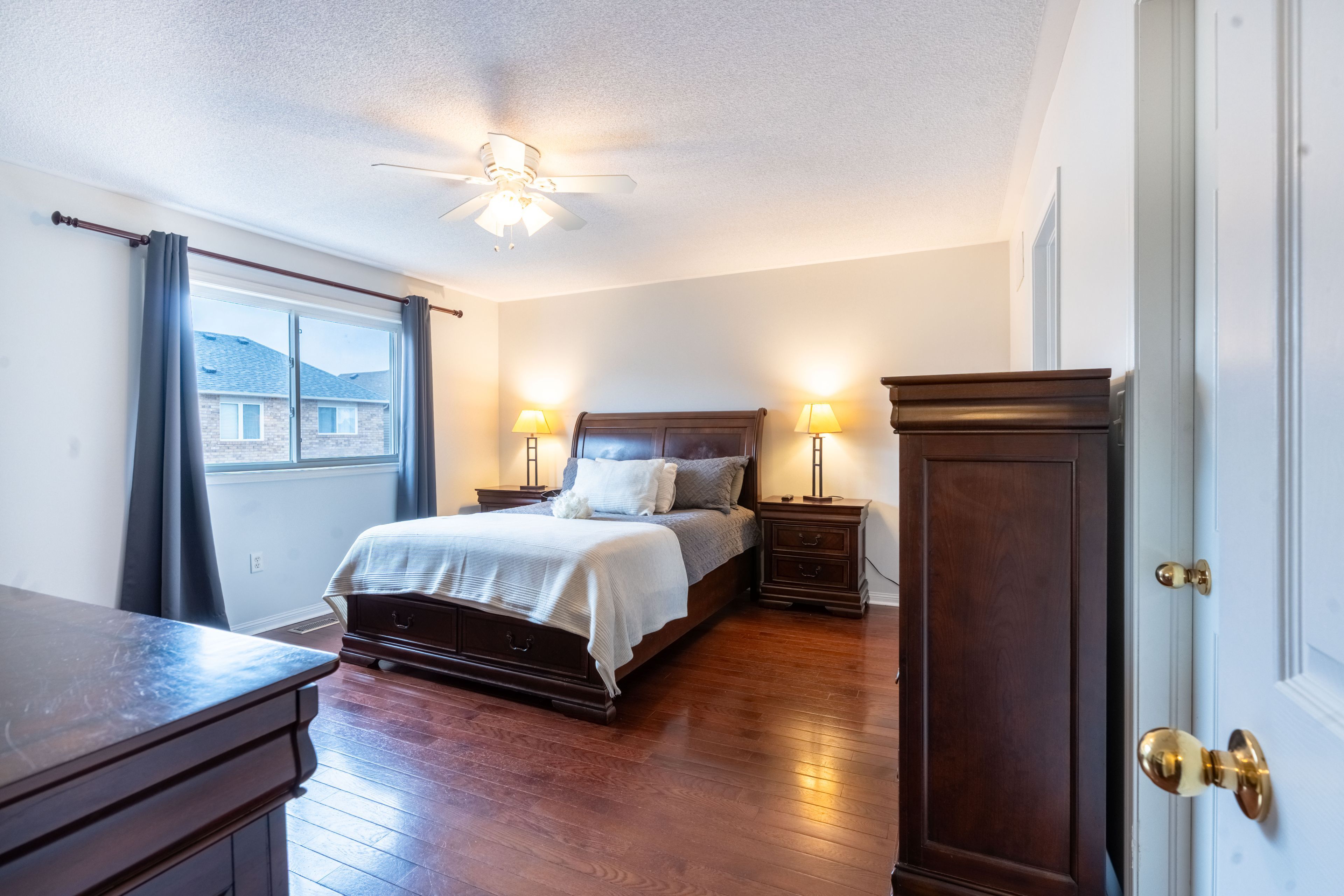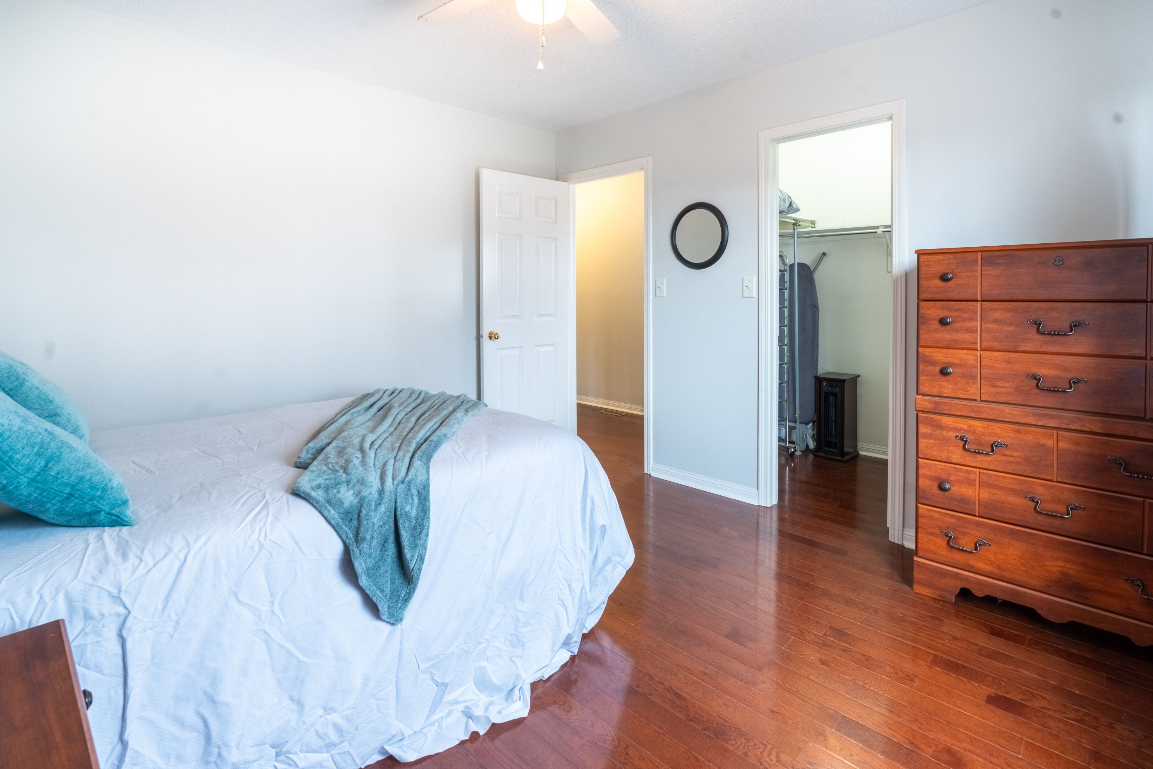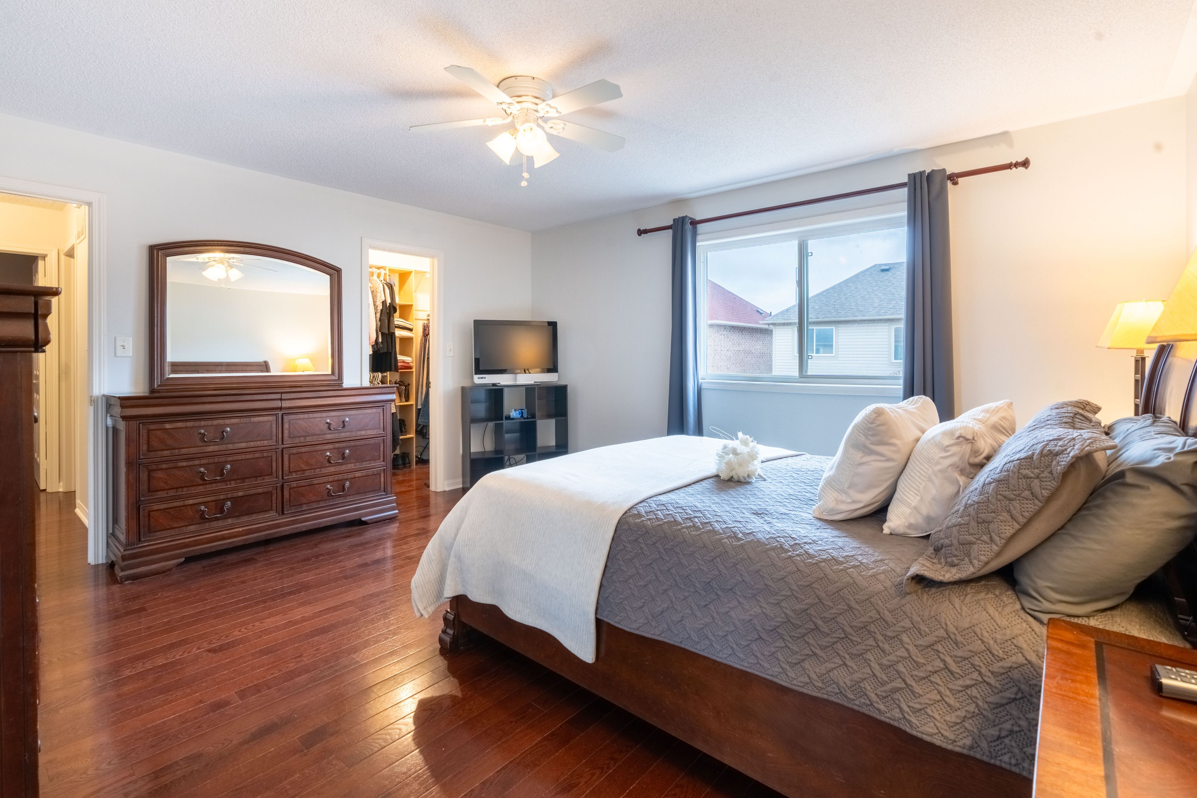 • Spacious primary bedroom with ensuite and four walk-in closets for storage.
