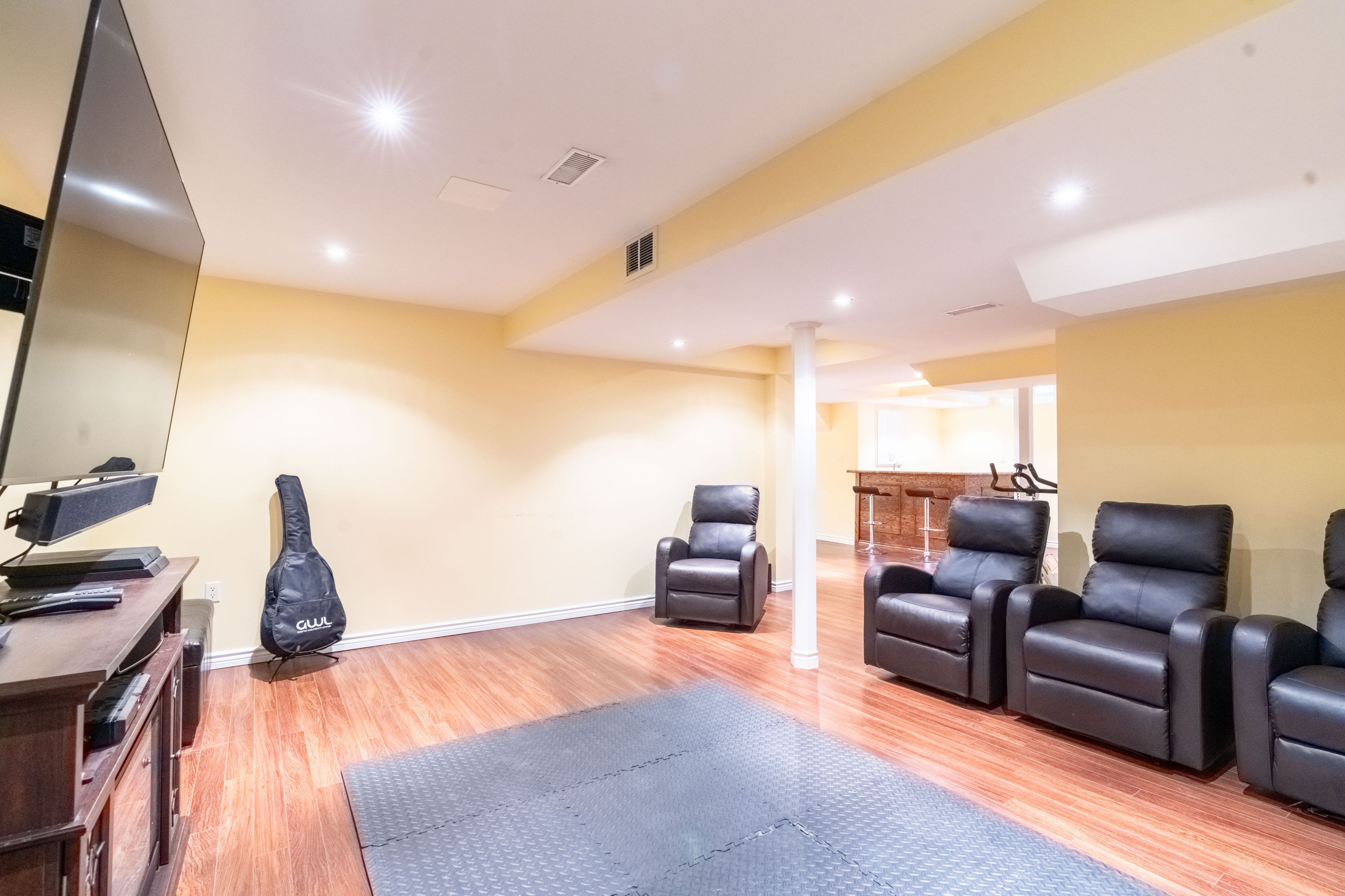 Immaculate and beautifully maintained detached 4-bedroom family home featuring hardwood and ceramic flooring throughout, an elegant oak staircase, and a welcoming front porch. Functional main floor layout with separate living, dining, and family rooms, ideal for both everyday living and entertaining. Upgraded kitchen with modern countertops, spacious eat-in area, and walk-out to a custom sundeck overlooking the backyard. Bright family room with cozy gas fireplace. Finished basement offers additional living space with a bar area, theatre room, one bedroom, and a full washroom-perfect for extended family or entertaining. Spacious primary bedroom with a 4-piece ensuite. Home features four walk-in closets providing ample storage. A stunning property offering space, comfort, and upgrades-truly a must see!