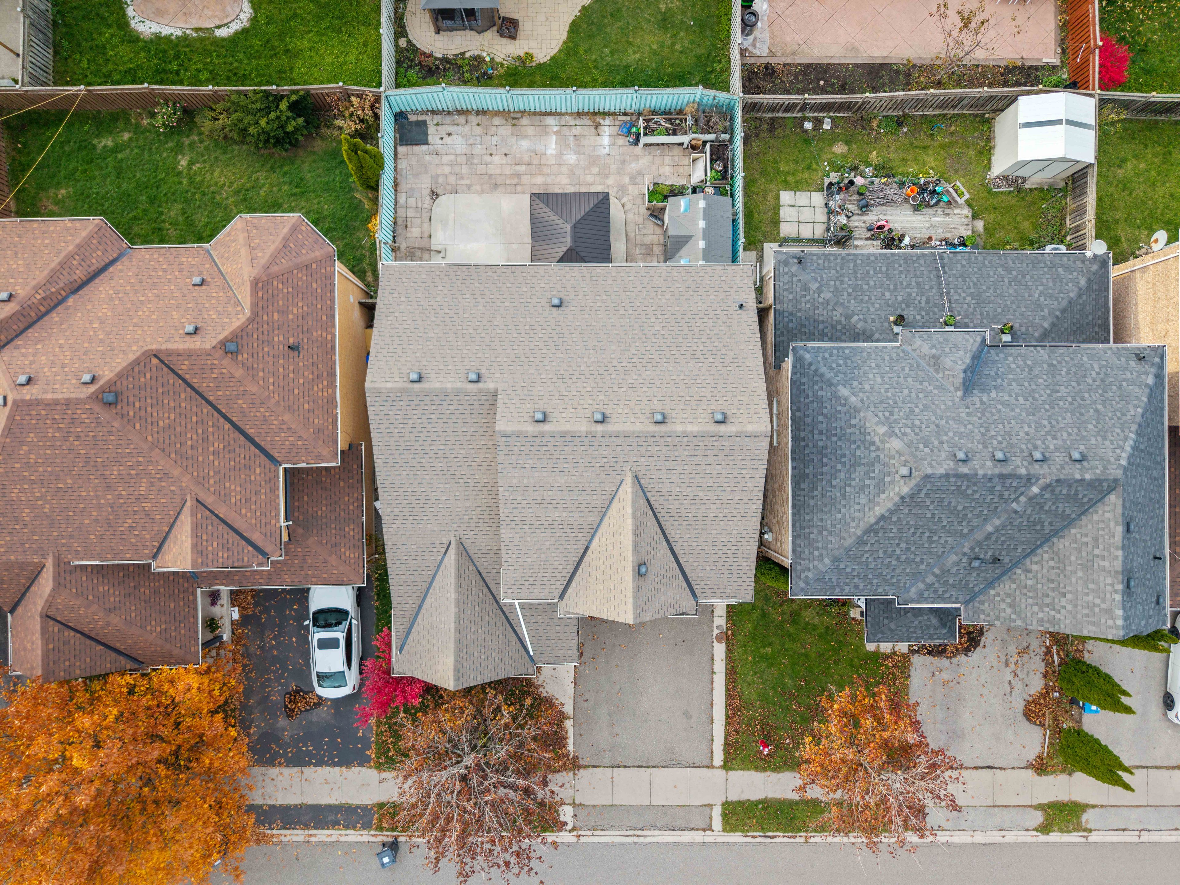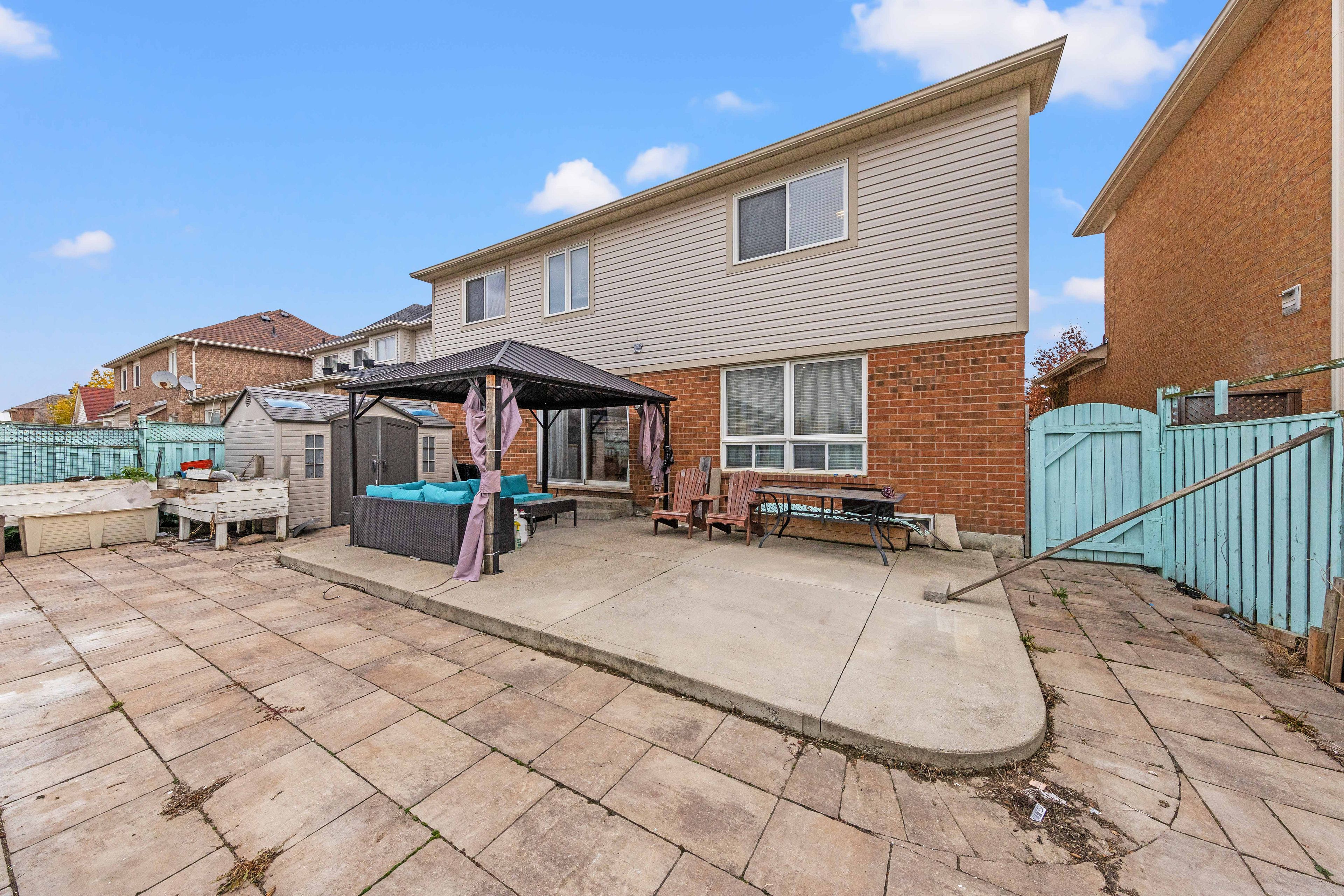 • Maintenance-free backyard with storage shed and garden planters.