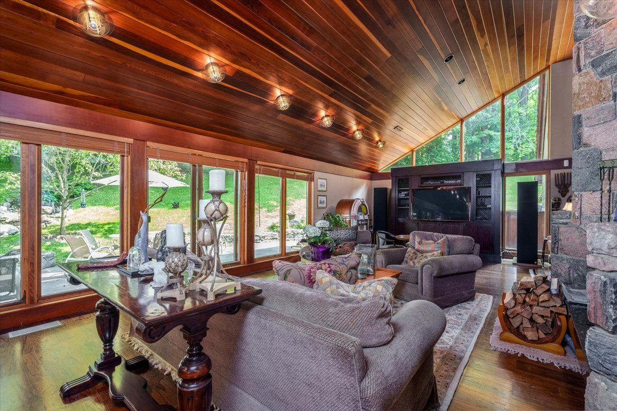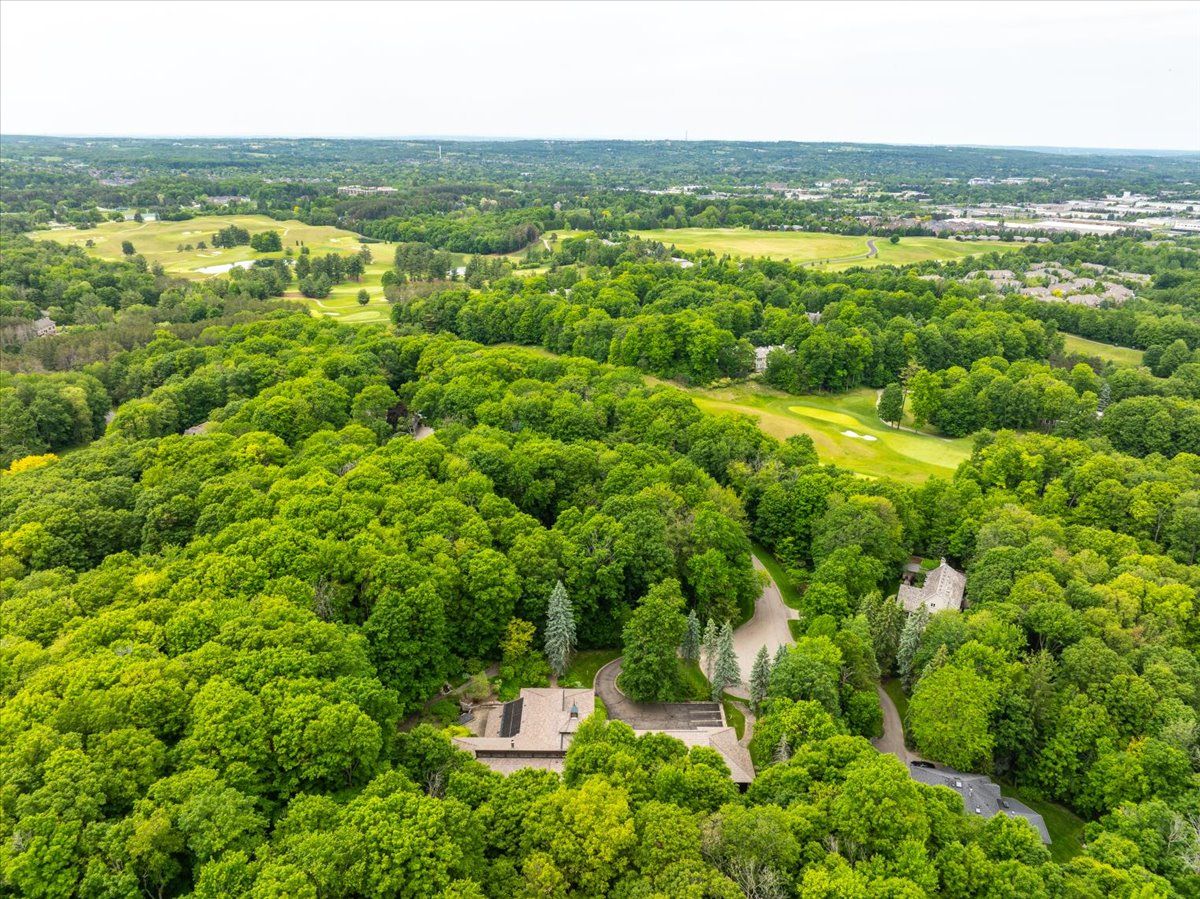 A rarely offered 15,000sqft prestigious estate on an exclusive cul-de-sac bordering aurora's exclusive beacon hall golf club. Nestled amid a premium 4-acre lot! The property's severance potential provides an added investment opportunity. The existing estate is an architectural marvel in itself designed by famed architectural firm laszlo nemeth associates and features outstanding indoor and outdoor entertaining spaces including covered outdoor kitchen with multiple terraces, majestic lawns and forests, plus a bridge leading to the tennis court and tennis pavillion. The great room centres around a striking 20ft+ 4-sided floor-to-ceiling stone fireplace crowned by vaulted ceilings and surrounded by wall-to-wall windows with multiple walkouts for seamless indoor/outdoor entertaining. A large bar, sunken billiard room, family room, grand dining room and gourmet kitchen complete the main floor entertaining spaces. The main floor primary suite boasts his and hers dressing rooms, spacious 9-piece ensuite and private stair to the indoor pool complex complete with grotto hot tub with waterfall, walkout to rear gardens, full service bar and spa zone featuring steam room, sauna, shower room and exercise room. The main floor bedroom wing features 2 additional bedrooms with ensuites, spacious office with wet bar and powder room, games room, laundry, guest wing with 2 bedrooms plus ensuites. Also included is a 1-bedroom self-contained apartment with separate entrance for in-laws or staff including kitchen, bathroom and living room. A rare offering of prestigious architecture combined with unmatched entertainment amenities, luxurious privacy, investment and development potential, all conveniently located close to st. Andrew's college, st anne's school, the country day school, and villanova. Steps to beacon hall golf course, close to magna golf club and several club link courses.