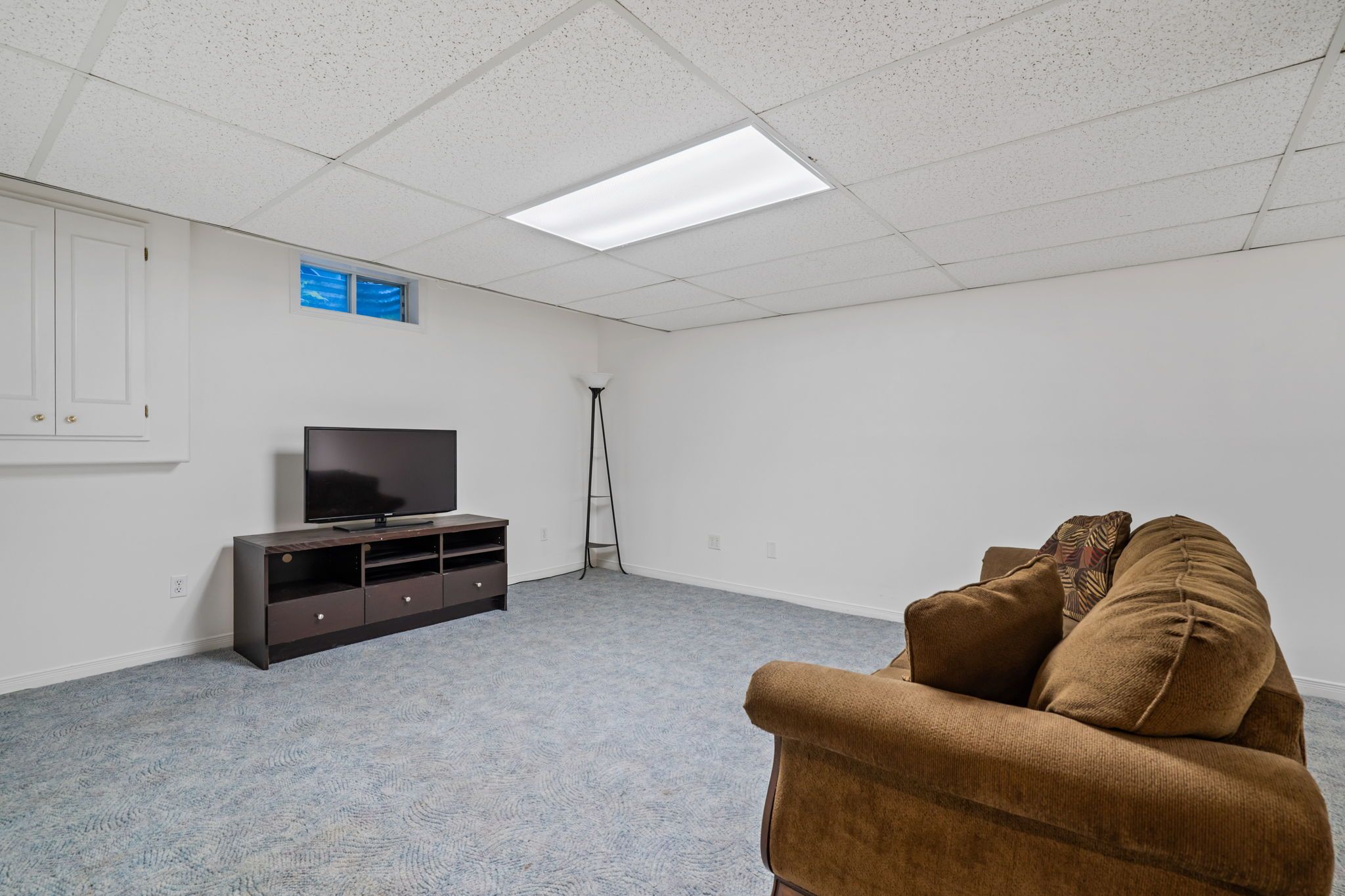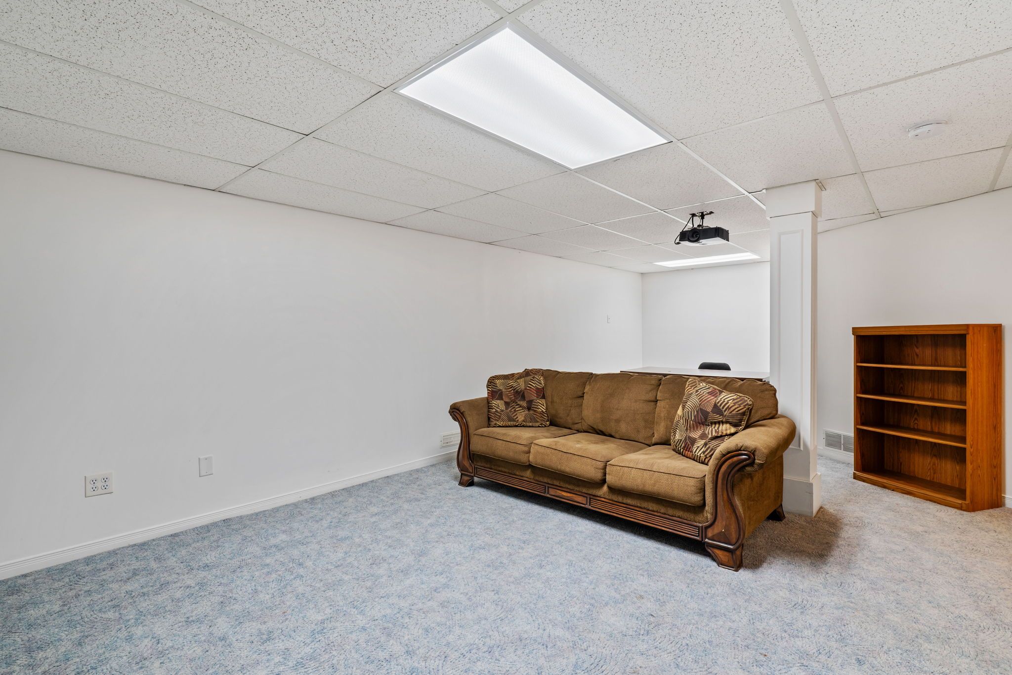 • Finished basement ideal for family movie nights with a projector screen.
