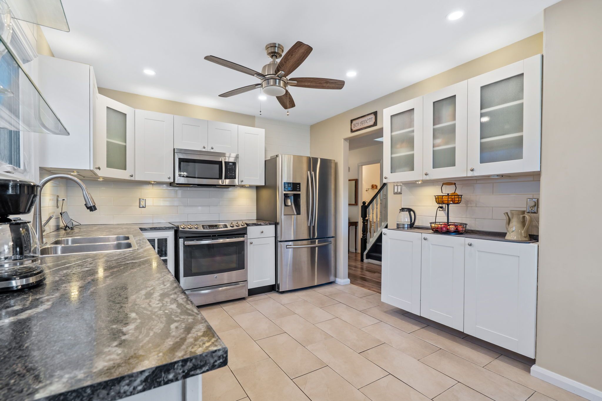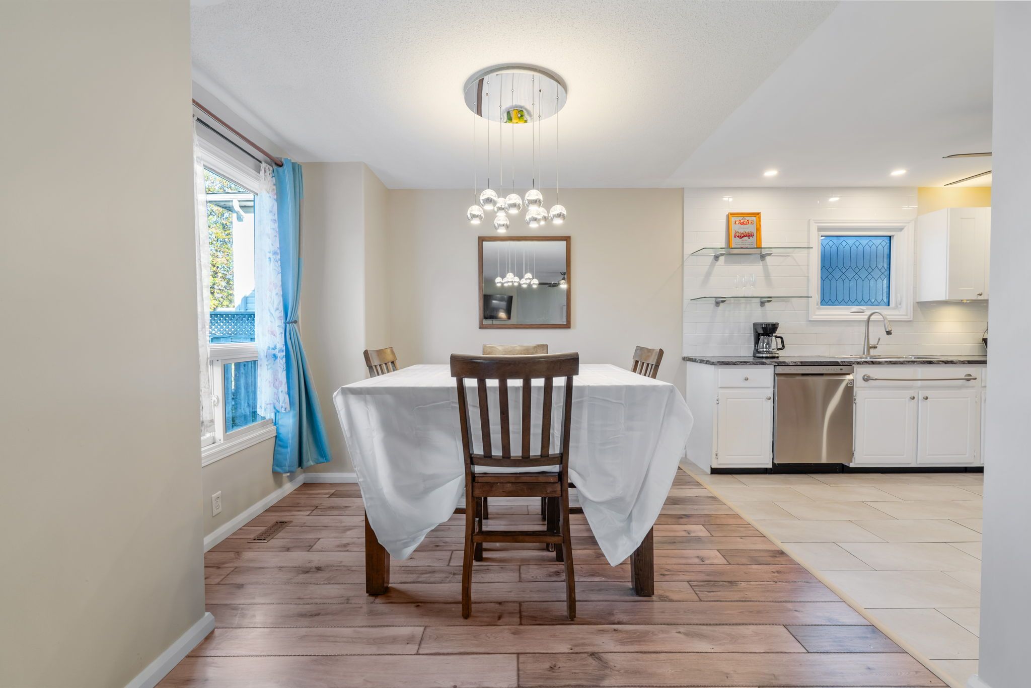 • Updated kitchen that opens to dining and living areas.