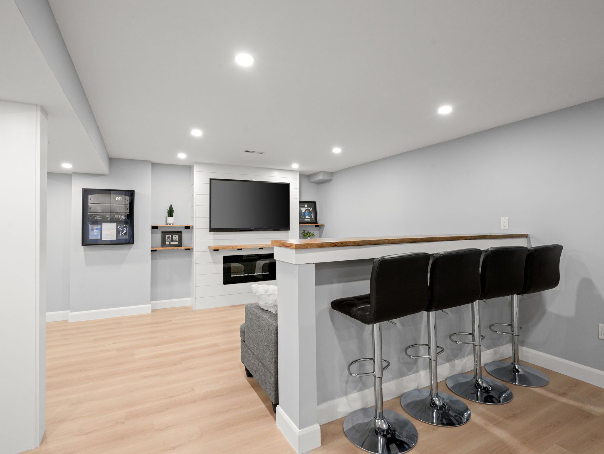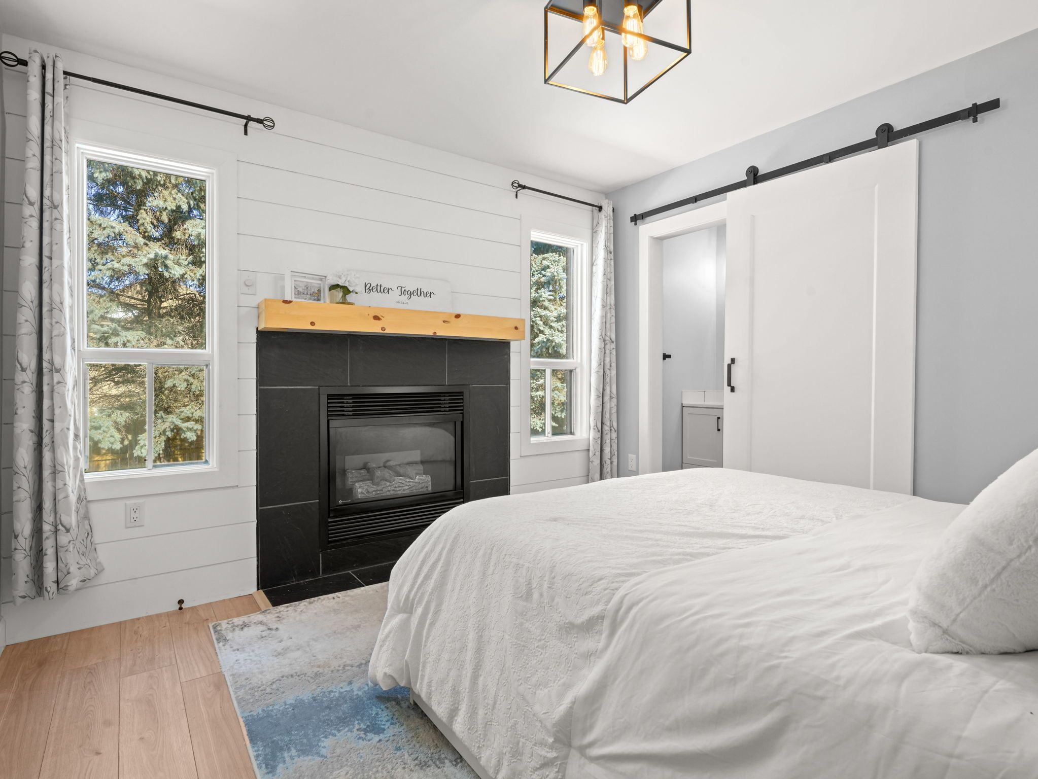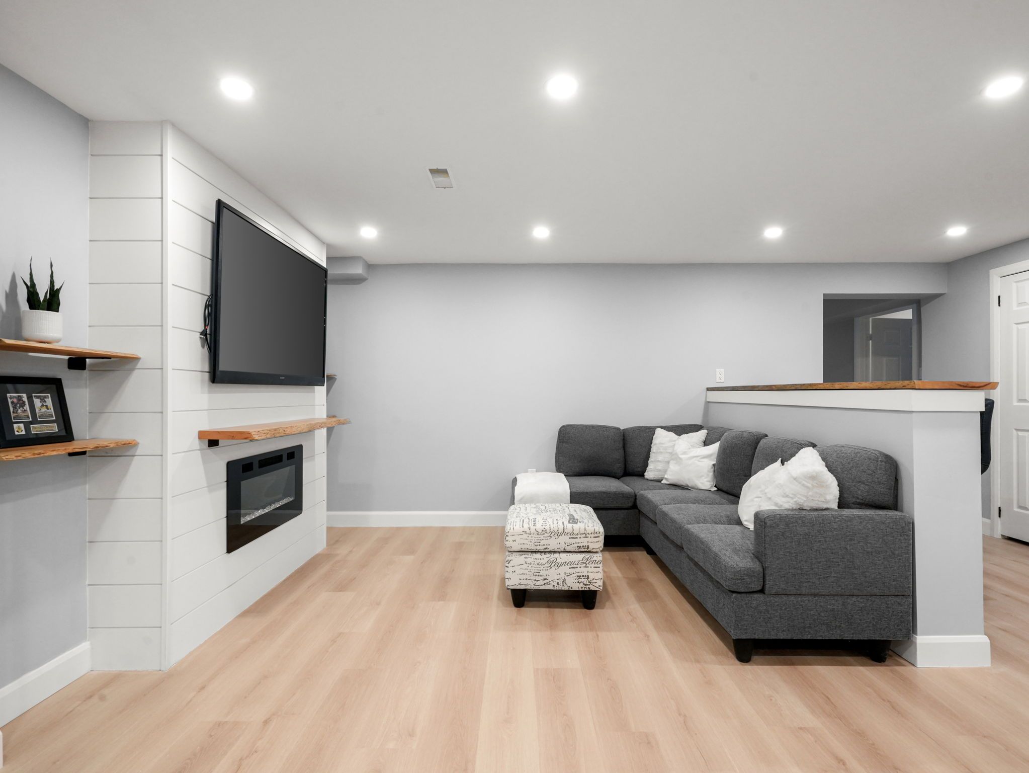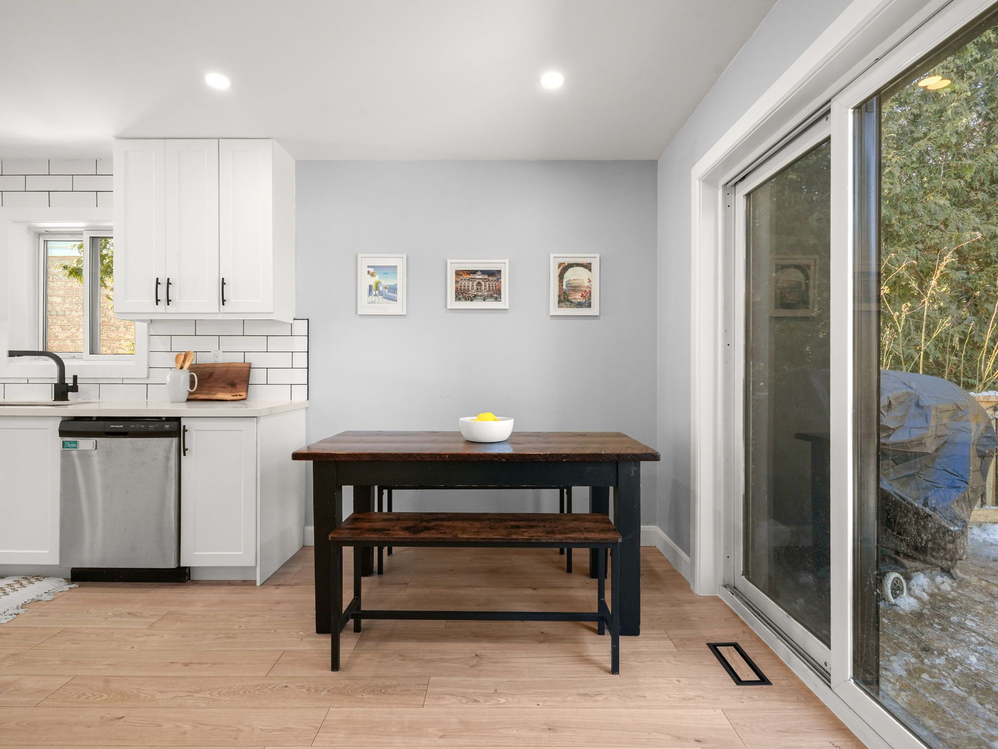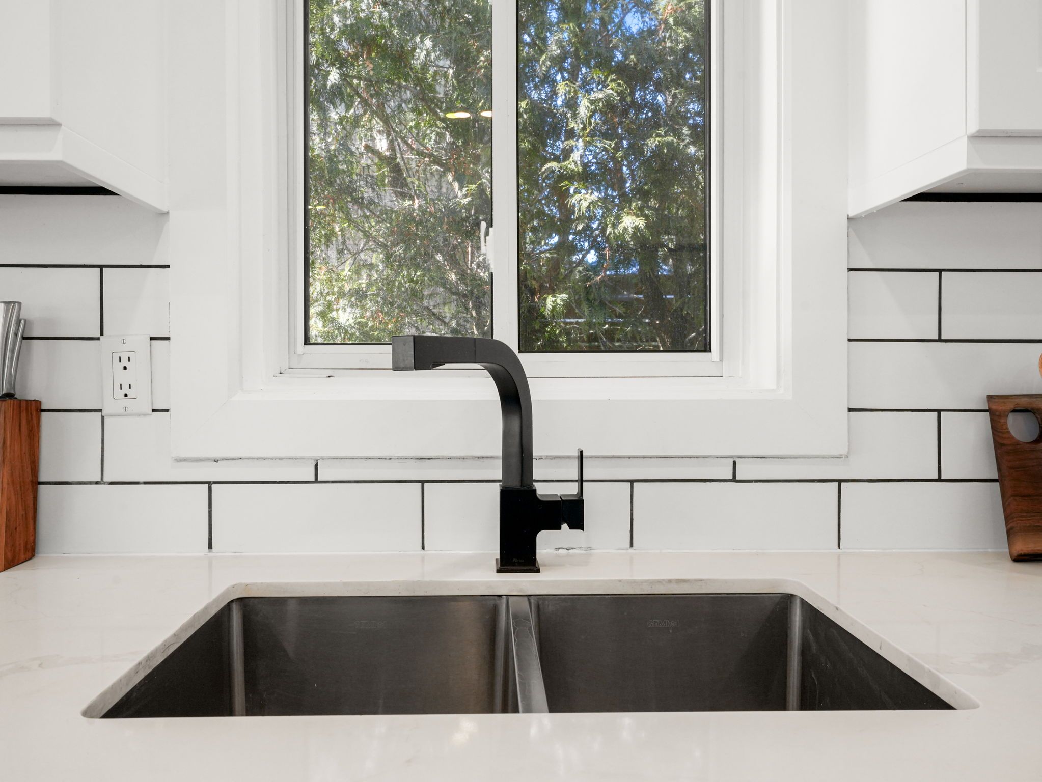 • Modern open concept kitchen overlooking the cozy living room.