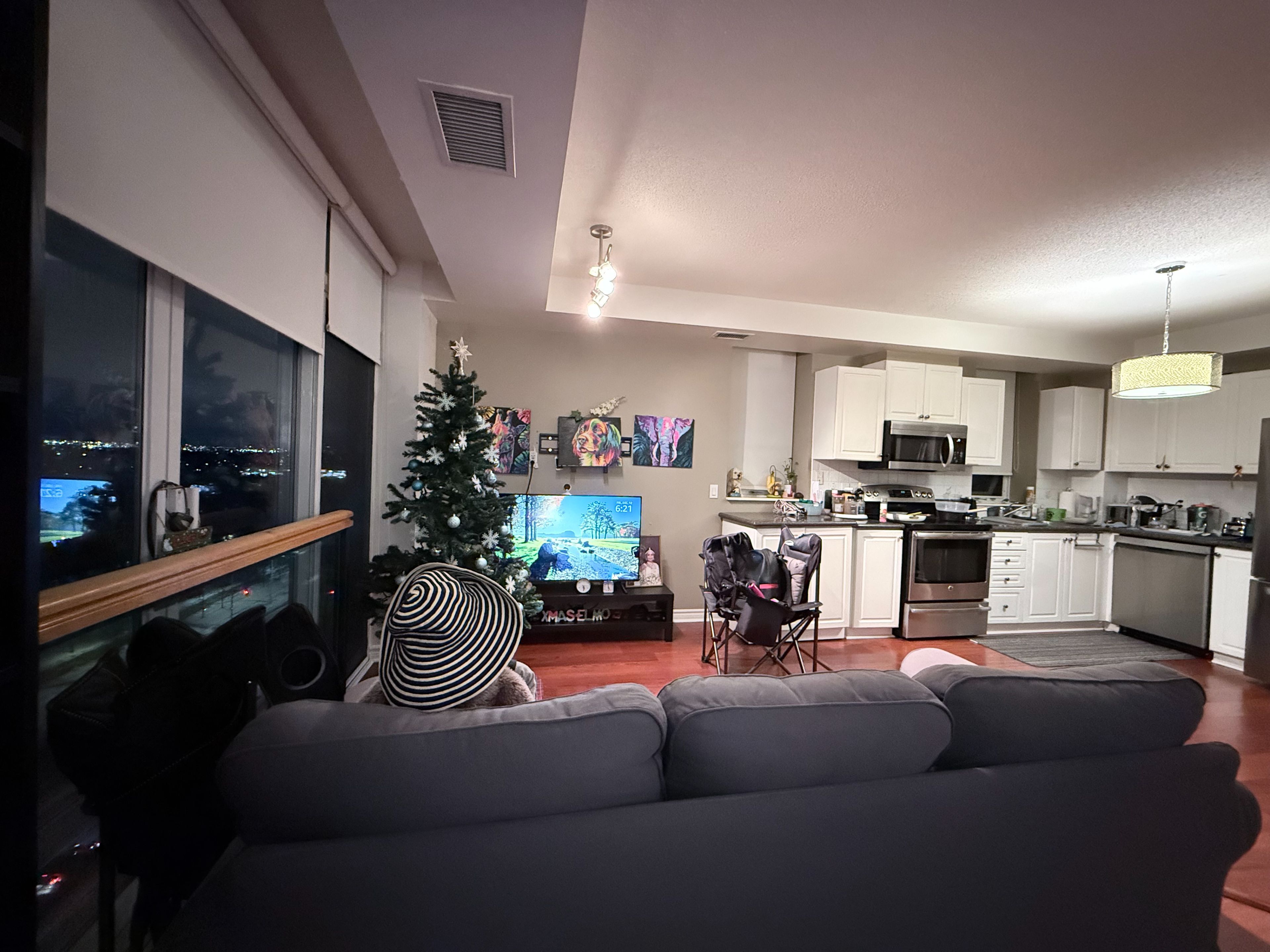 • Bright living and dining area with floor-to-ceiling windows.
