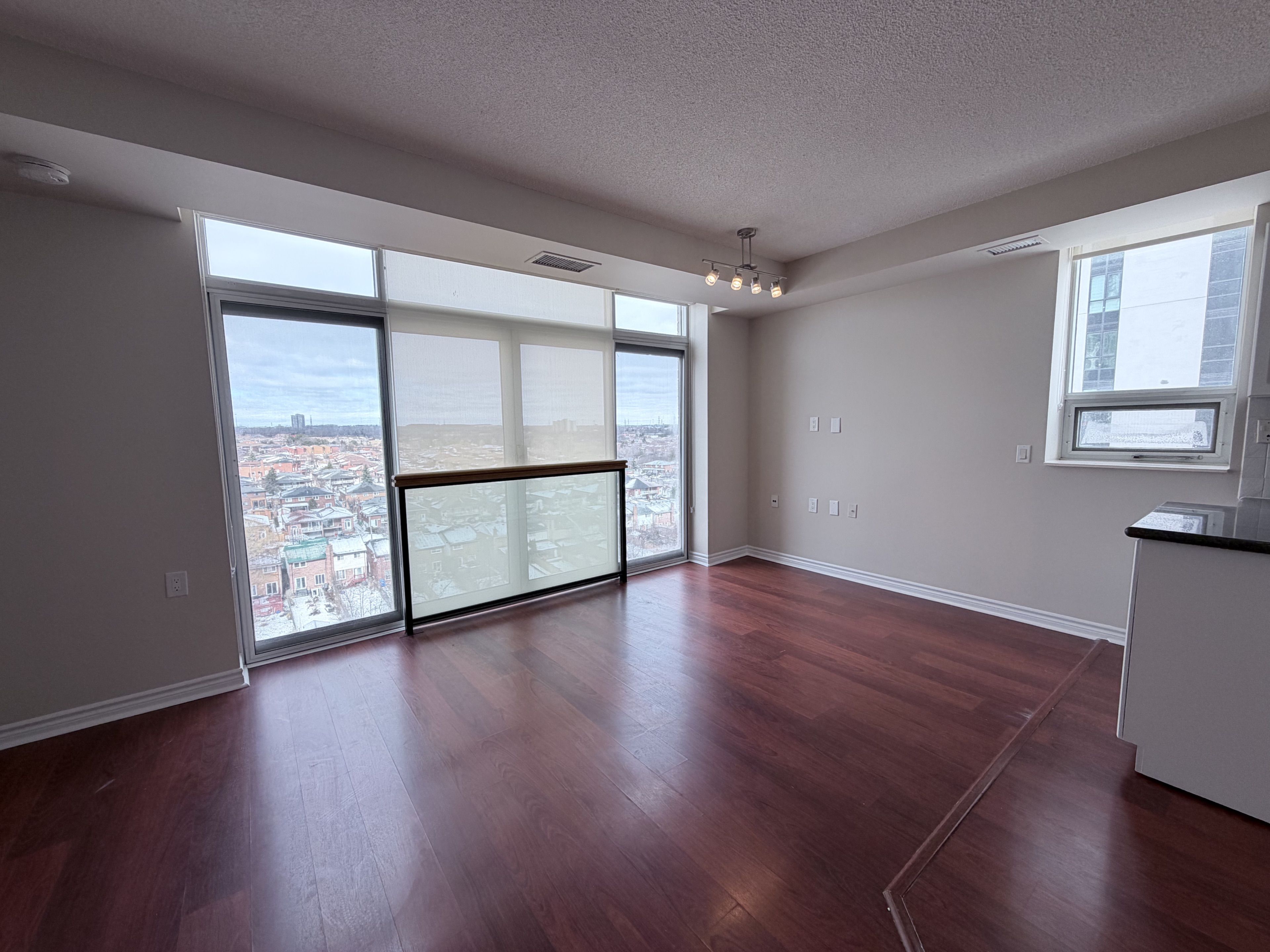 • Spacious open-concept design with panoramic city views from a corner unit.